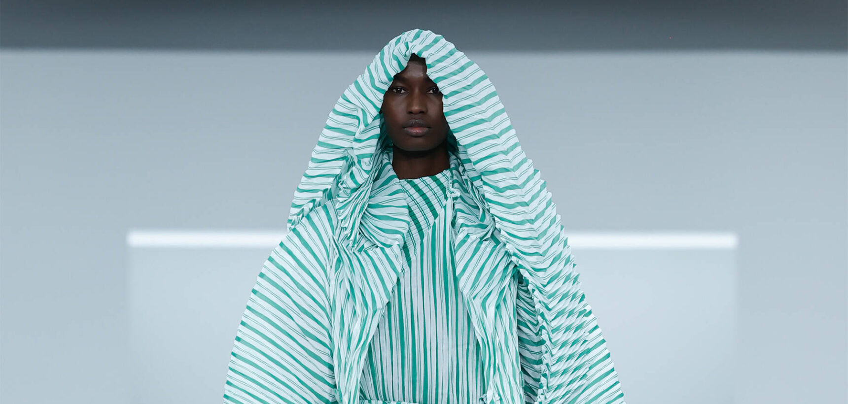 Steel emptiness, flickering lights and the silent swell of moving material. Issey Miyake’s AW25 show, [N]either [N]or, was fashion in its purest, most contemporary form. Staged at the Carrousel du Louvre in the centre of Paris, the collection unfolded like a living sculpture inspired by Erwin Wurm’s One Minute Sculptures.