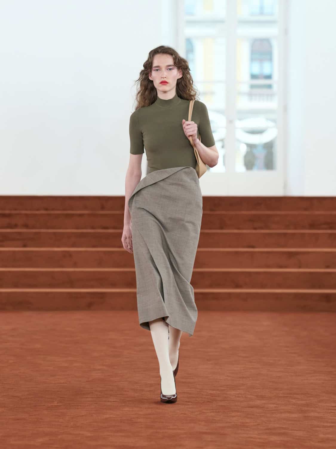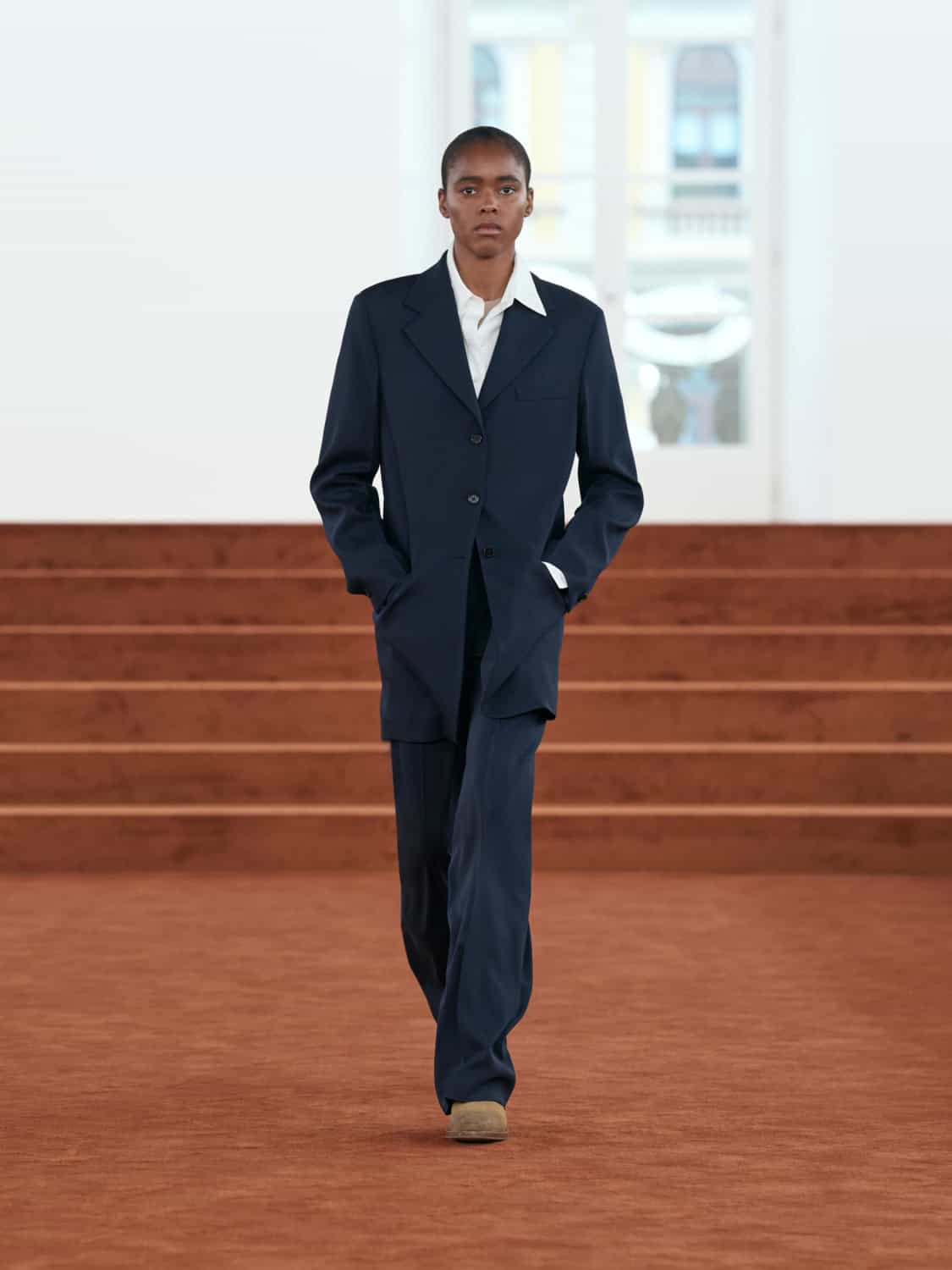 Simone Bellotti’s AW26 collection for Jil Sander was all about home – as one’s safe space, or not, where one might seek refuge or wish to flee from. Bellotti was thinking of his father, an upholsterer, and of the furniture and decor that fills a space. Because Jil Sander is a house, and a house contains codes, signs and tropes, something Bellotti is familiar with, he played with these in this outing, at once respecting, upturning or forgetting them.