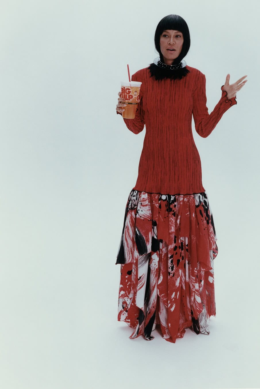 from left: GIORGIO ARMANI, top and skirt by FENDI, shoes by JIMMY CHOO