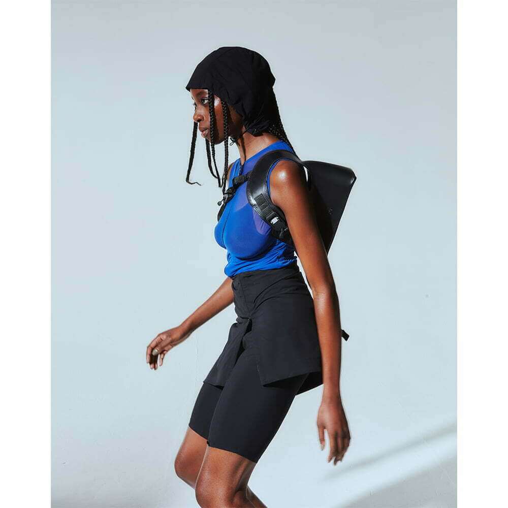 For her MA graduation collection at Central Saint Martins, Parv, who is from Tallinn in Estonia, came up with some startlingly game-changing solutions to liberate women from the standard Lycra designed for male racers: elegance allied with activewear, and a genius hands-free system for harnessing classic handbags to the shoulders of women – “action bags”, as she calls them. “I thought, what if I can fuse haute couture drape with something that functions and performs – and has a sense of movement and protection in it?”