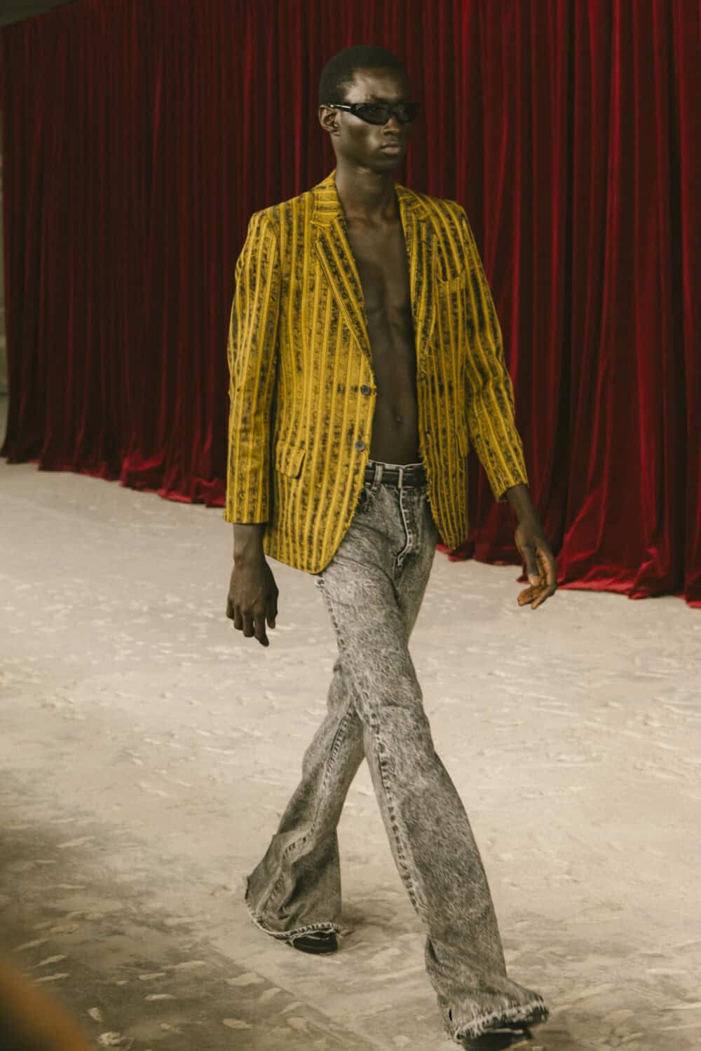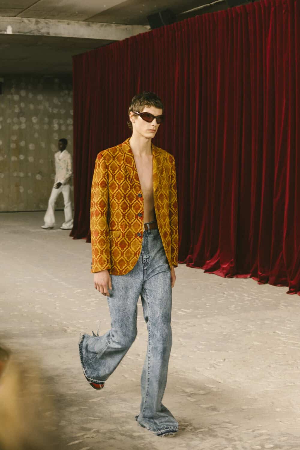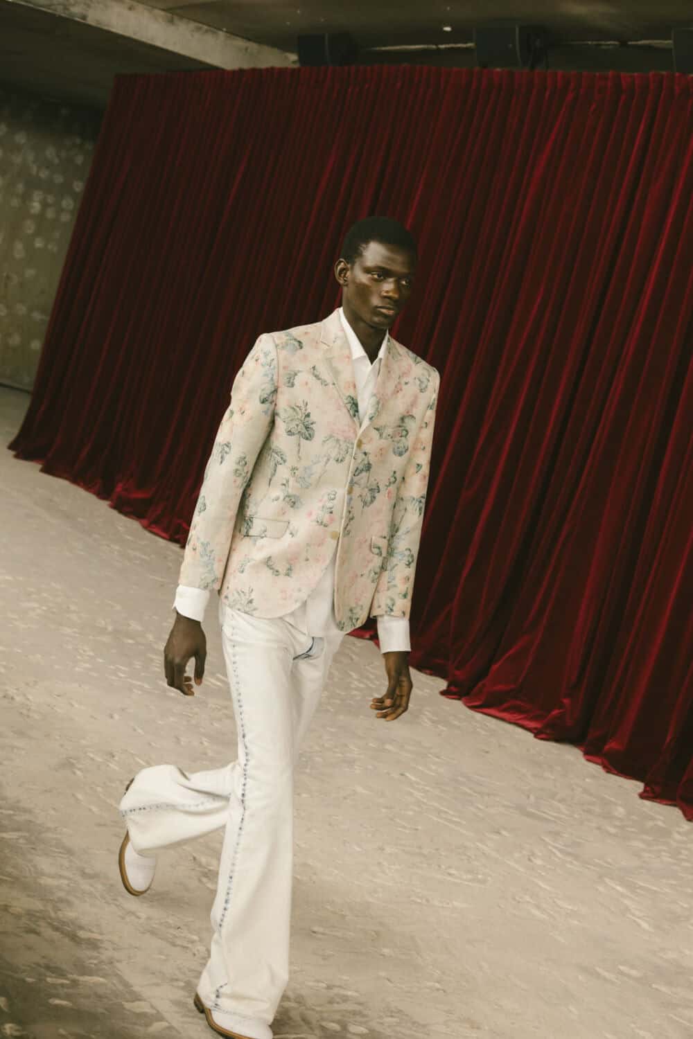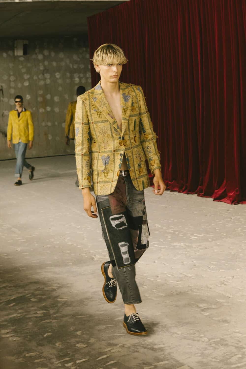 What does the thinking man wear when he’s running late to class but still wants to turn a look? Junya Watanabe has answers. For SS26, the Japanese designer delivered a masterclass in chaotic academia and true to his ethos, straddled the line between antiquity and invention, dressing his models in rococo-inspired jacquards and vintage brocades, only to twist them into something entirely new: blazers askew, ties stacked and undone just so, and trousers that looked like they’d survived a very stylish fall down a library staircase. There were frayed hems, asymmetrical cuts and denim patches where you’d least expect them. Think prep school meets punk squat – tailored blazers, crisp shirts and ties, all roughed up just enough to feel cool rather than precious.