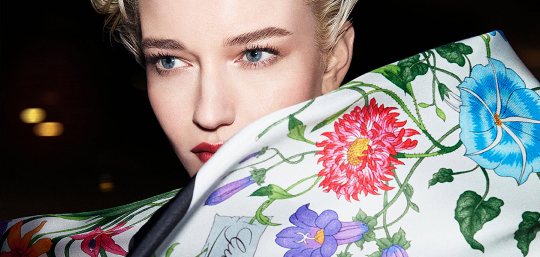 At the centre of the campaign is the Flora motif, first designed in 1966 by Italian illustrator Vittorio Accornero de Testa. The intricate bouquet of seasonal blooms remains a signature of the house, appearing in new interpretations throughout the collection. Whether tied around the neck, worn as a headscarf or caught mid-motion, Gucci’s silk scarves continue to define effortless sophistication.