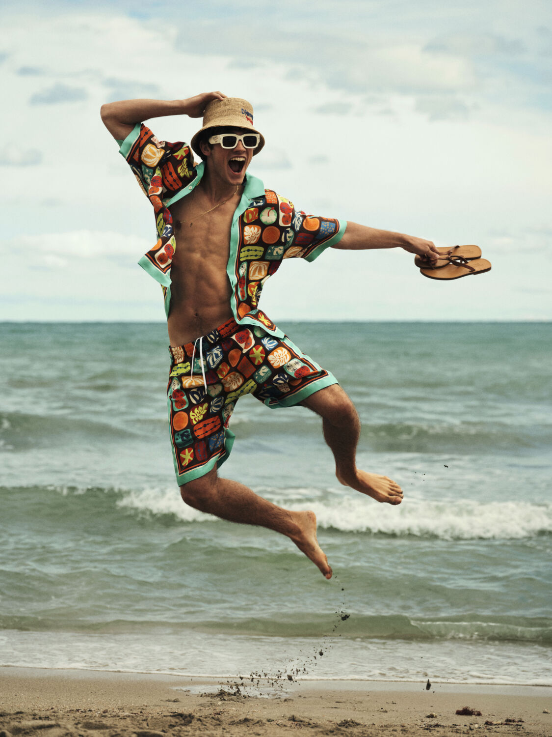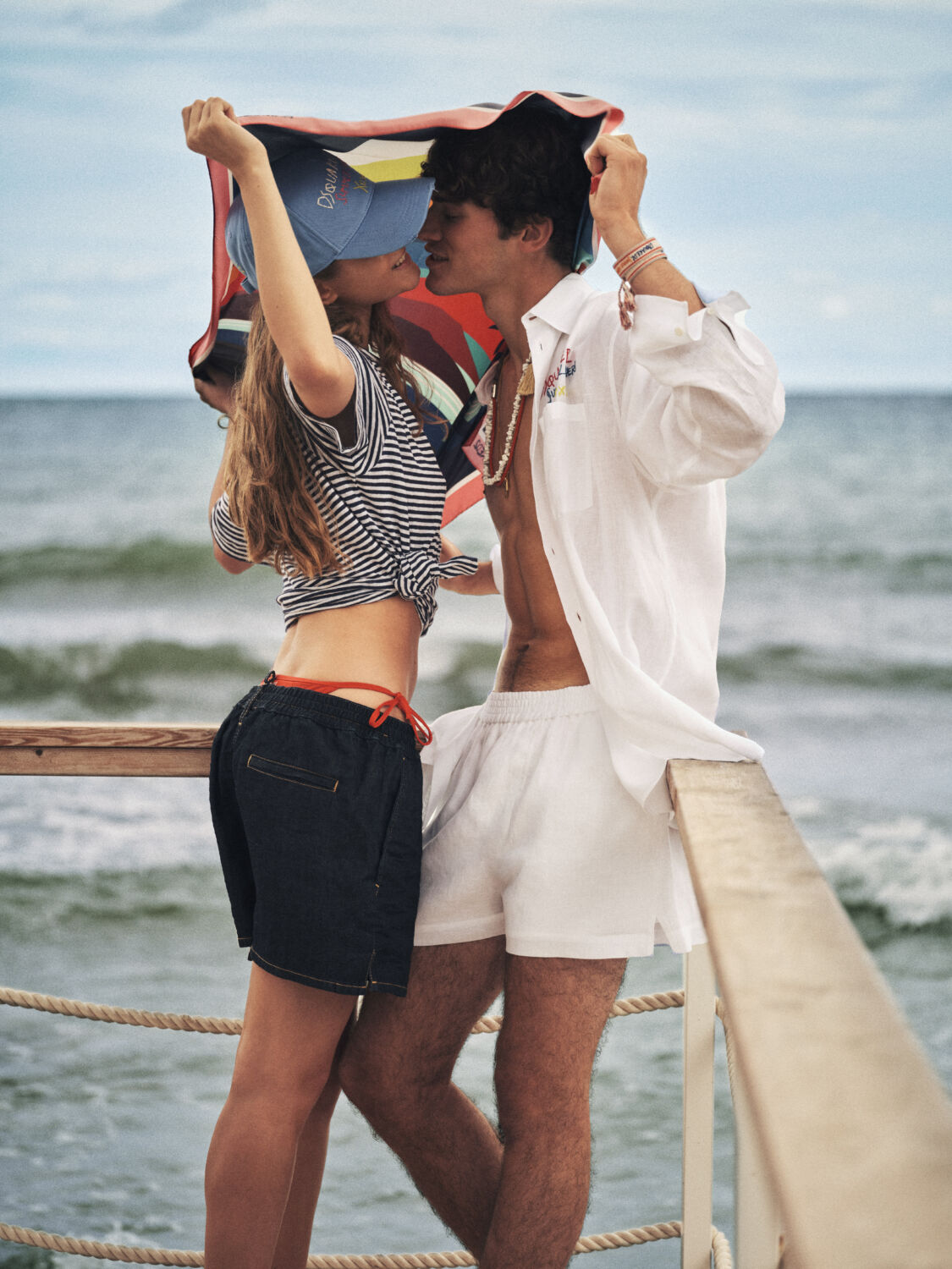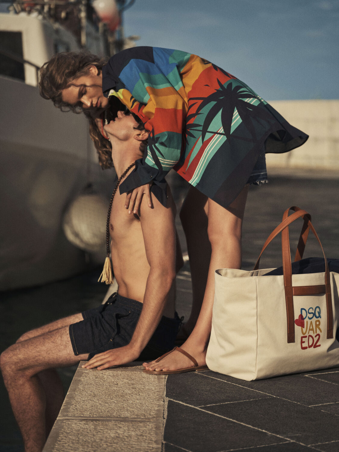 Dsquared2 slips into something sultrier for summer with Summer Lovers, a capsule collection made for glistening skin, salty kisses and days that blur into balmy nights. Inspired by the sun-drenched 1982 film of the same name, the brand reimagines resort classics through an ‘80s Hollywood lens. Picture faded denim cut-offs, clingy crochet maxis, embroidered terry polos, postcard prints and tan-line-baring swimwear. Breezy shirting and bucket hats round out a wardrobe built for boat rides, beachside flings and everything in between.