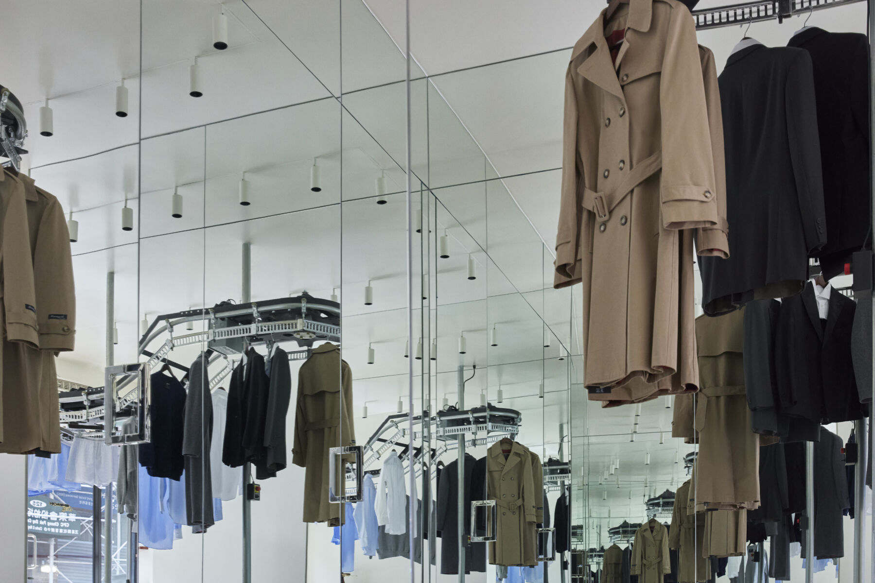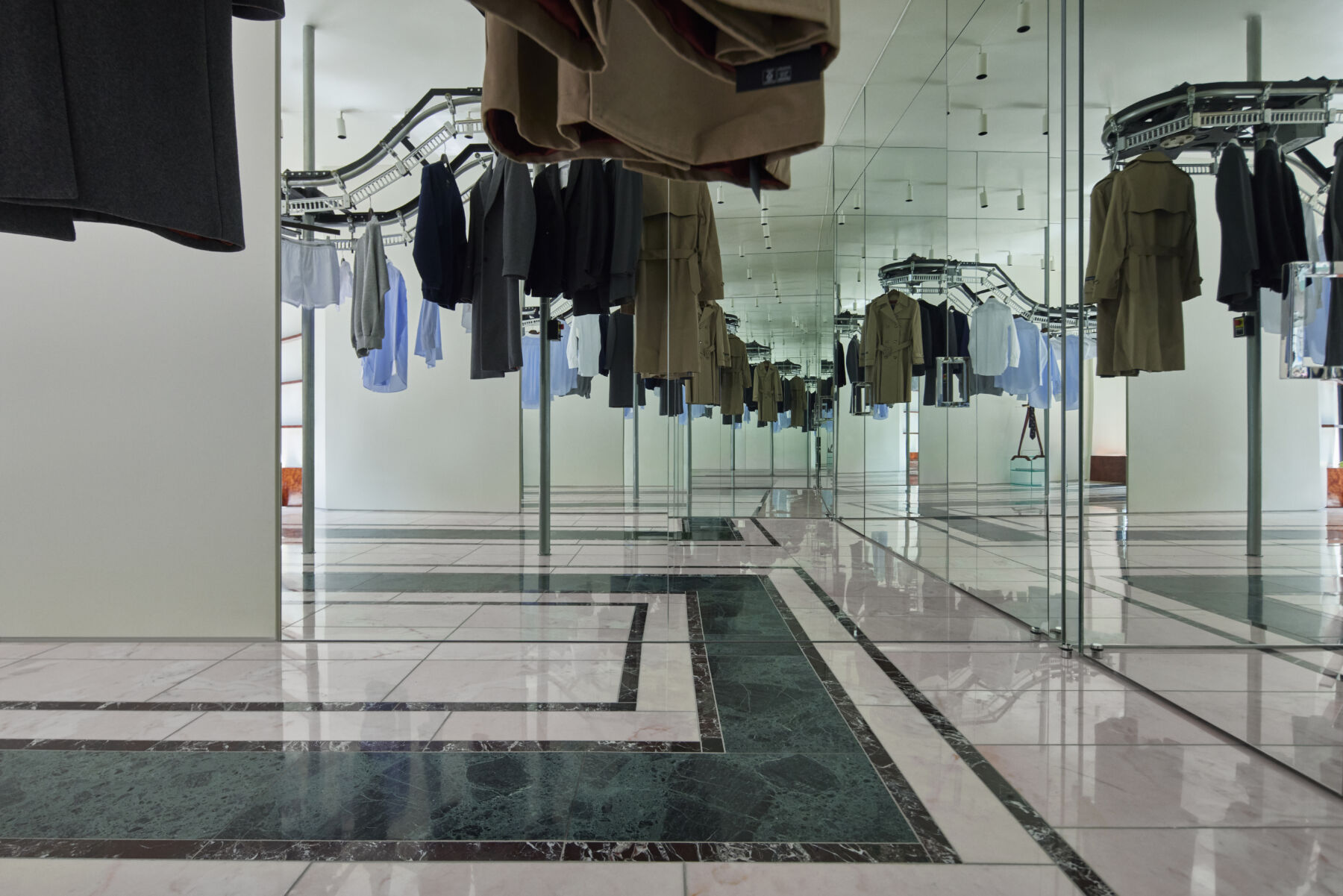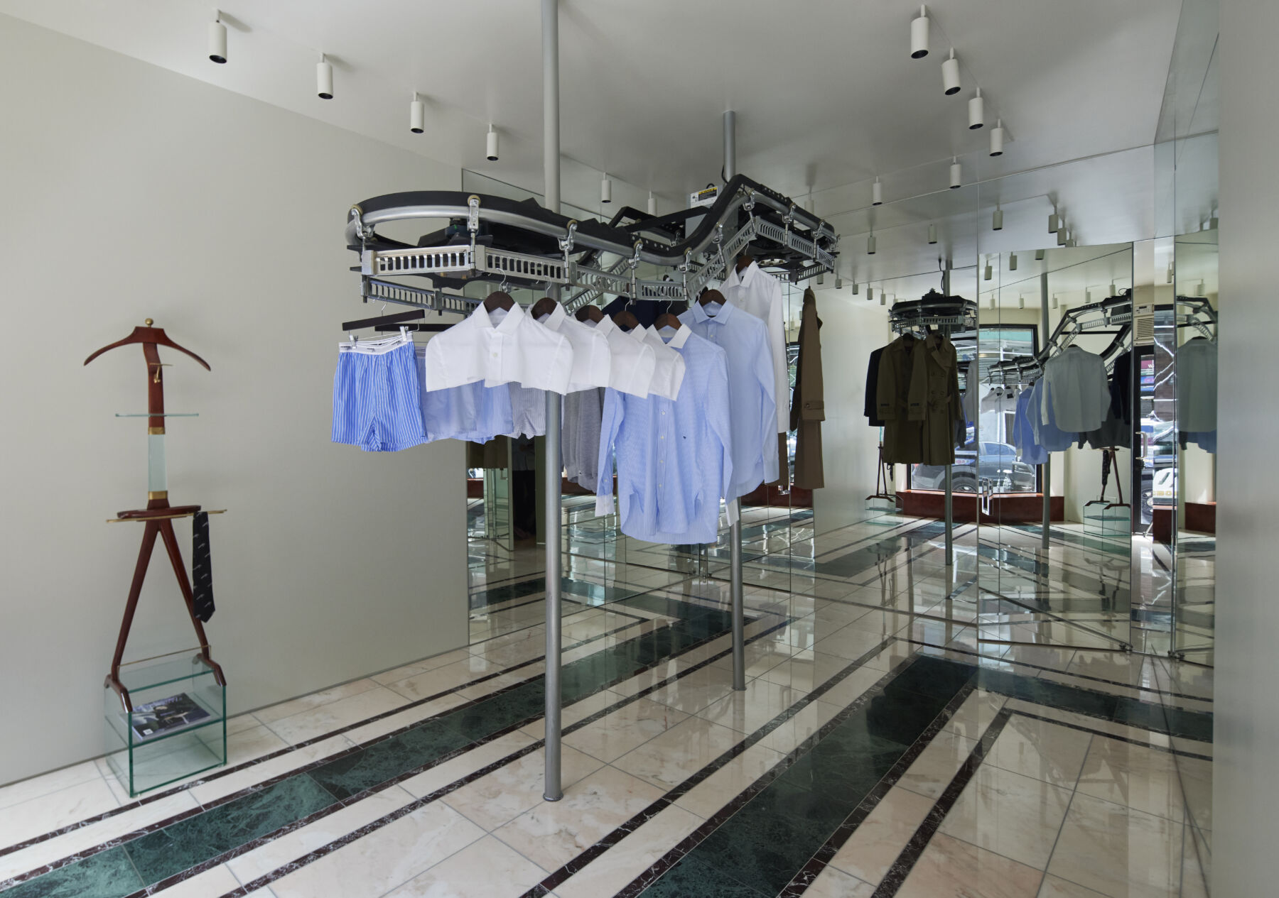 Fans of HommeGirls, the bi-annual style magazine founded by Thakoon Panichgul with its own fashion line, will be happy to note that they can now shop the brand in person. They’ve opened up their first retail location in Chinatown, New York. Designed by Rafael de Cárdenas, Ltd., the interiors feature a Portaluppi-inspired polished marble floor and fully mirrored walls to create an infinity effect. As for the center, a rotating dry cleaning rack serves as a way to display pieces from the collection. Visitors will find ready-to-wear including the brand’s signature striped shirts, boxers, and trench coats alongside copies of the latest issue which stars the likes of Jennie, Natasha Lyonne among others. “I’m excited for this new chapter — for us to be able to showcase all the facets of the brand. From the magazine to the collection, to one-of-a-kind partnerships and out-of-the-box ideas, the space will allow us to express the world of HommeGirls and for our readers to step inside,” says Panichgul.