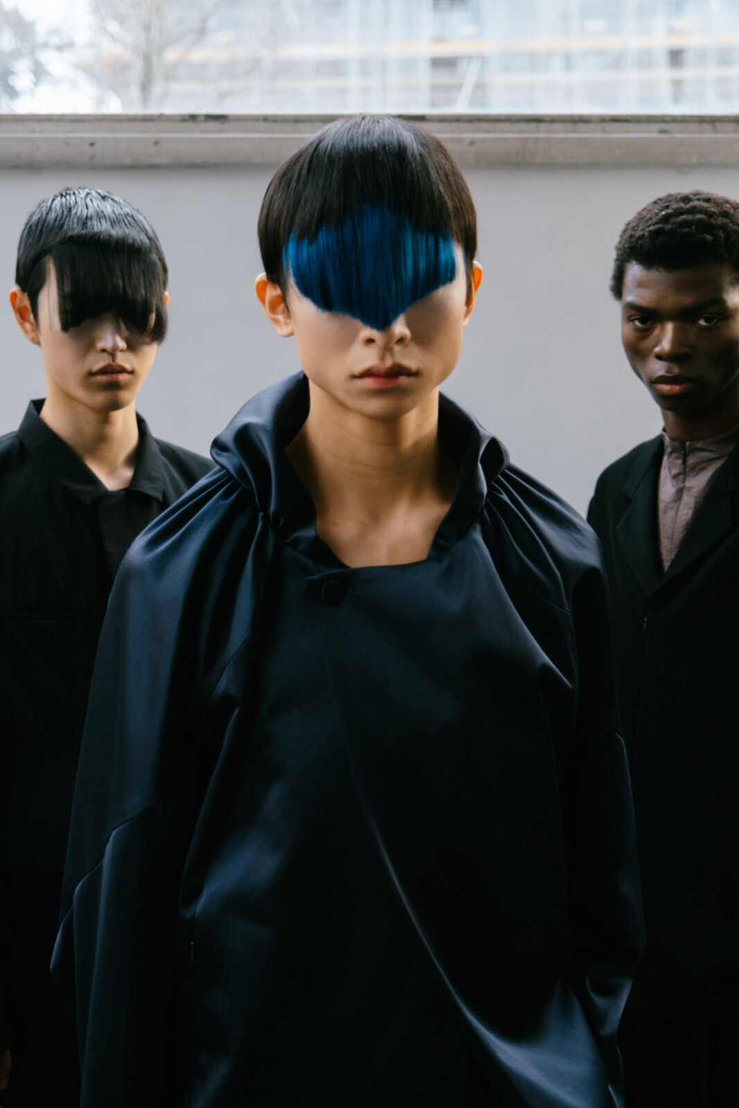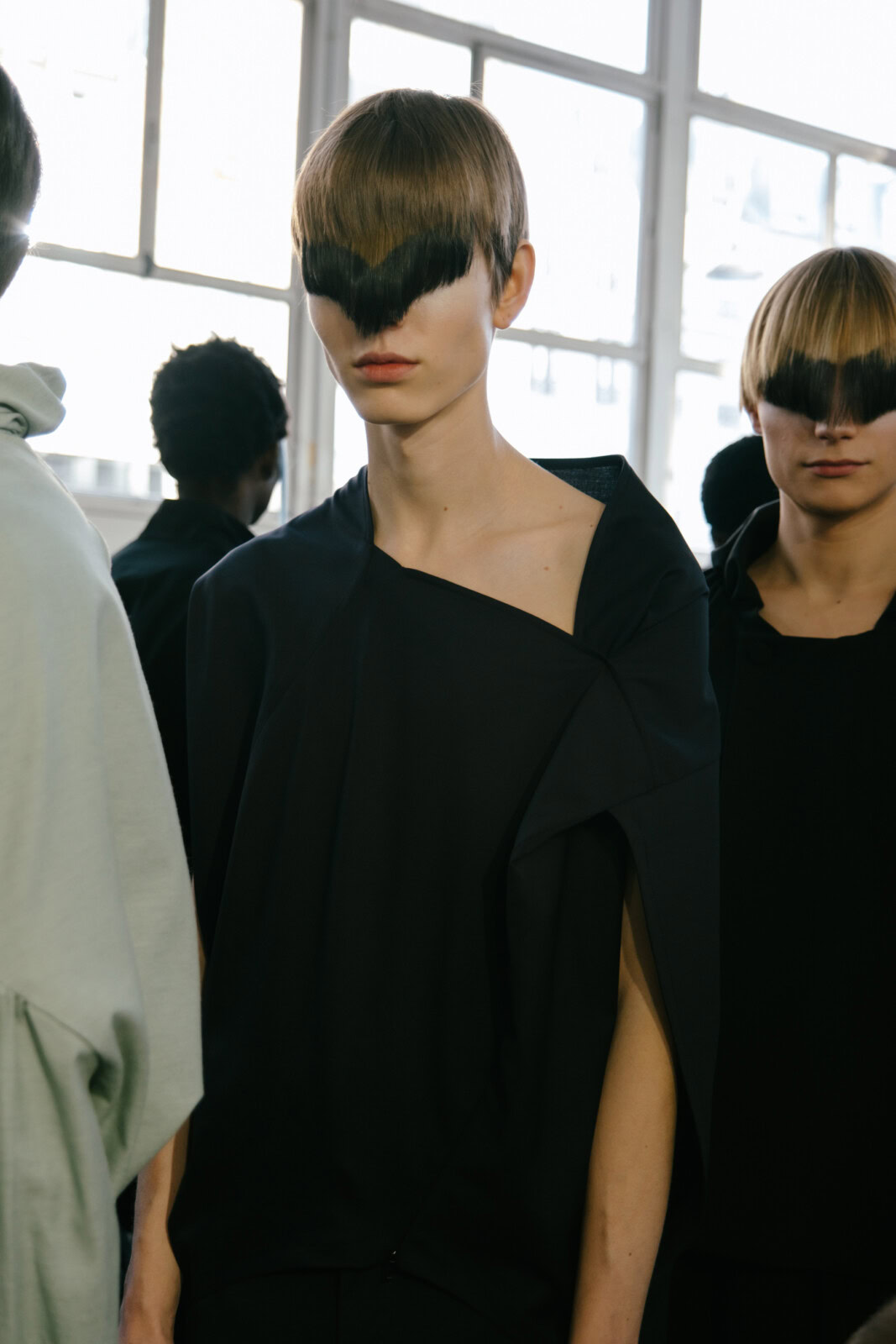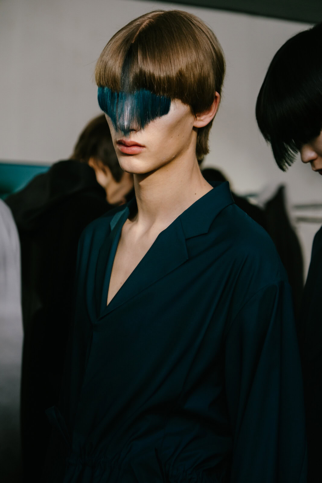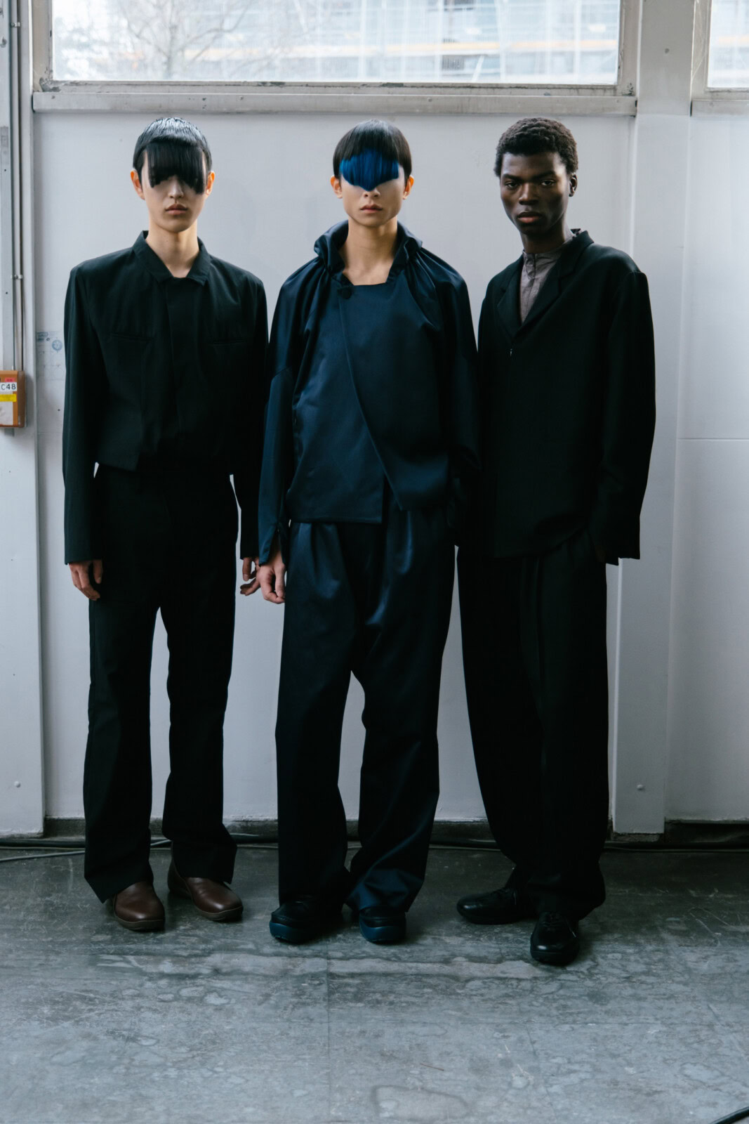 There was plenty to marvel at here. Tunic-style jackets came with origami folds. Silhouettes were fluid, from elongated suit jackets paired with slouchy trousers to swirling cotton dresses. As the collection progressed, blacks and muted blues transitioned into mustard yellows and crimson, where a series of all nylon looks that closed the show looked like jockey uniforms that were chopped and reconfigured. In stripping things back, you could truly appreciate the technical brilliance of Kostadinov’s work. It was another solid outing from one of London’s finest.