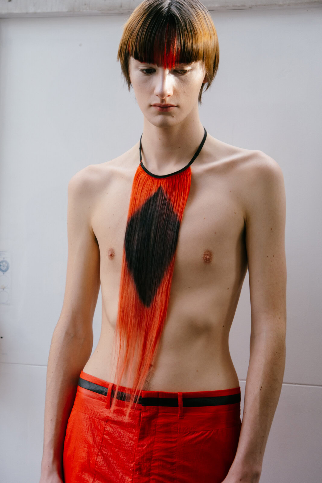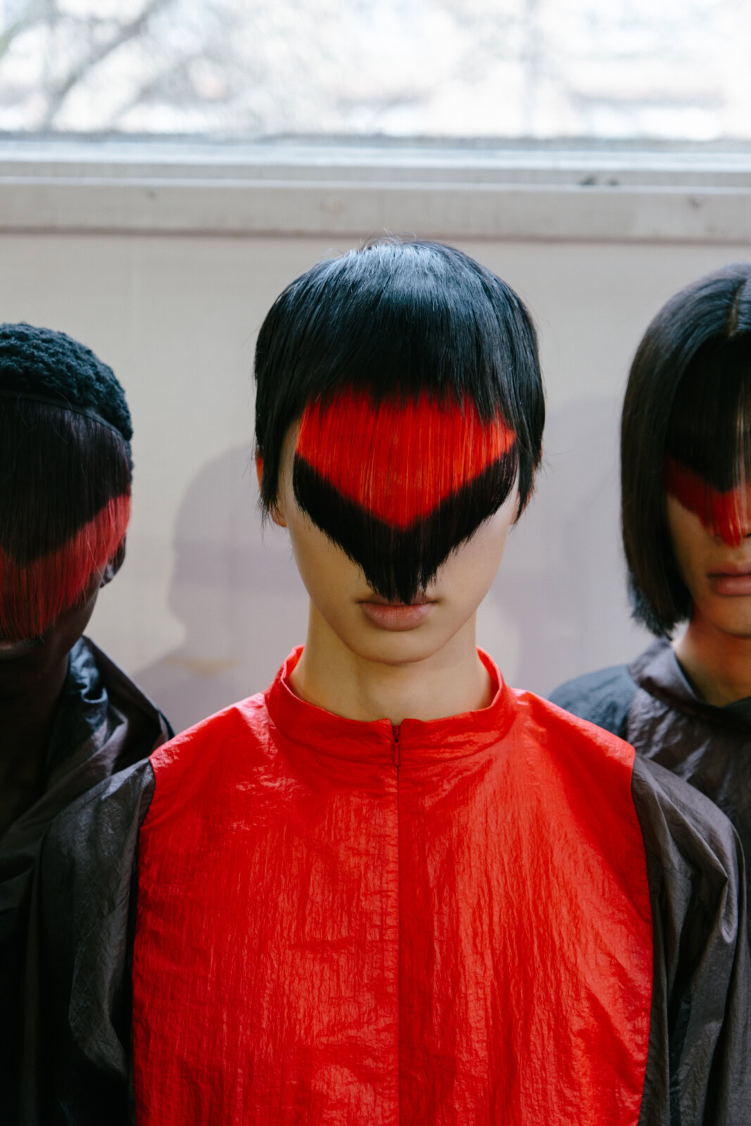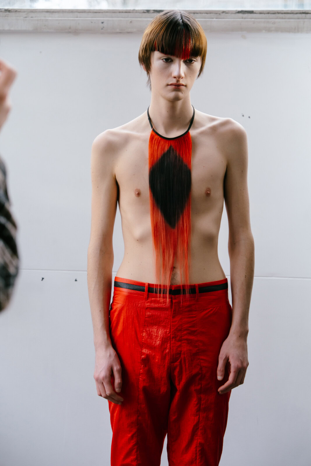 Kiko Kostadinov’s got a new look. That’s not entirely true: the designer’s signature retro futuristic stylings were all there, led by his impressive pattern cutting prowess. Though, for his AW26 outing, it was as if the designer had hit the refresh button. His show notes spoke of returning “to the primary language of construction and material”, stripping the collection of print in favour of one colour looks that let each piece’s fluid, geometric construction take centre stage.