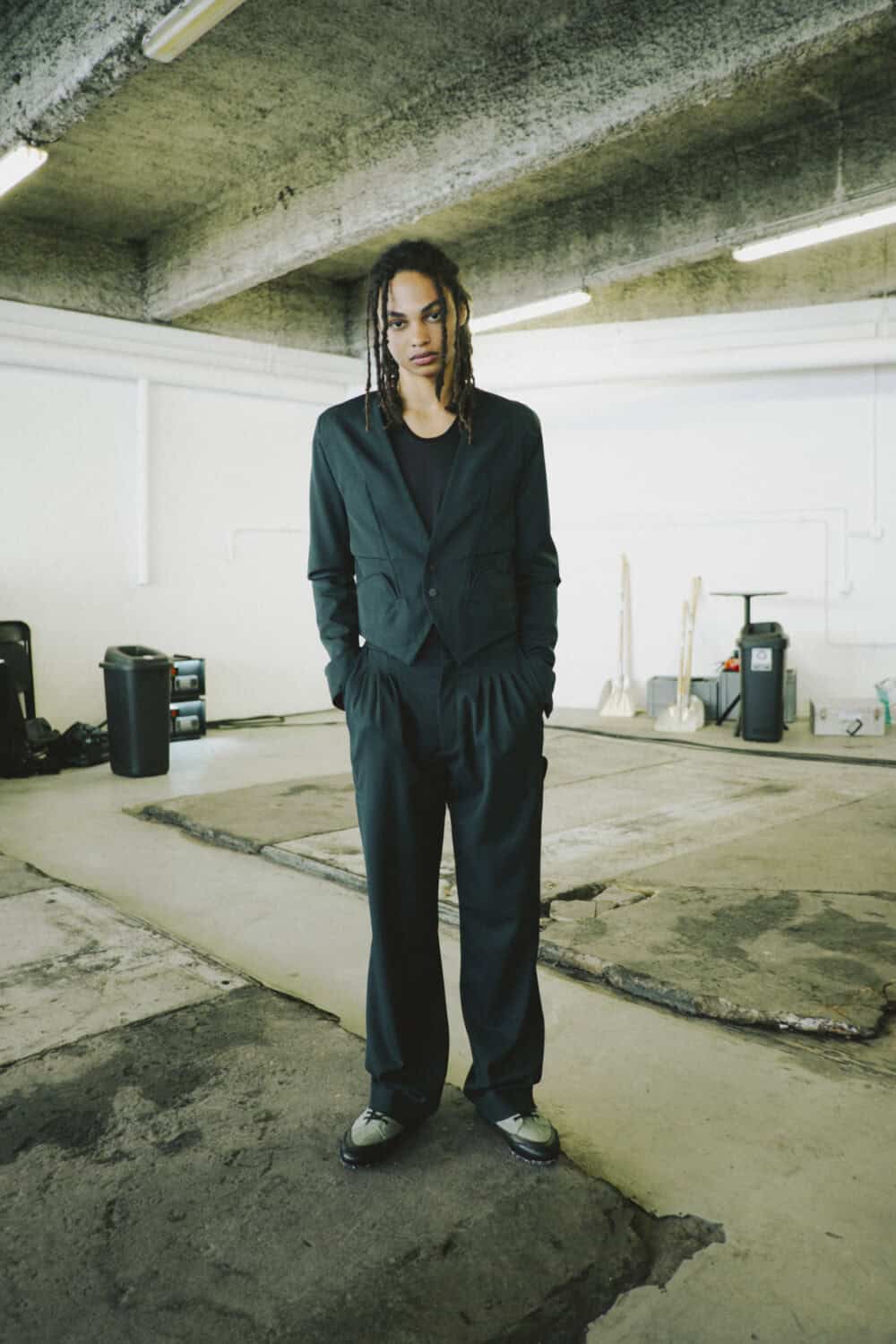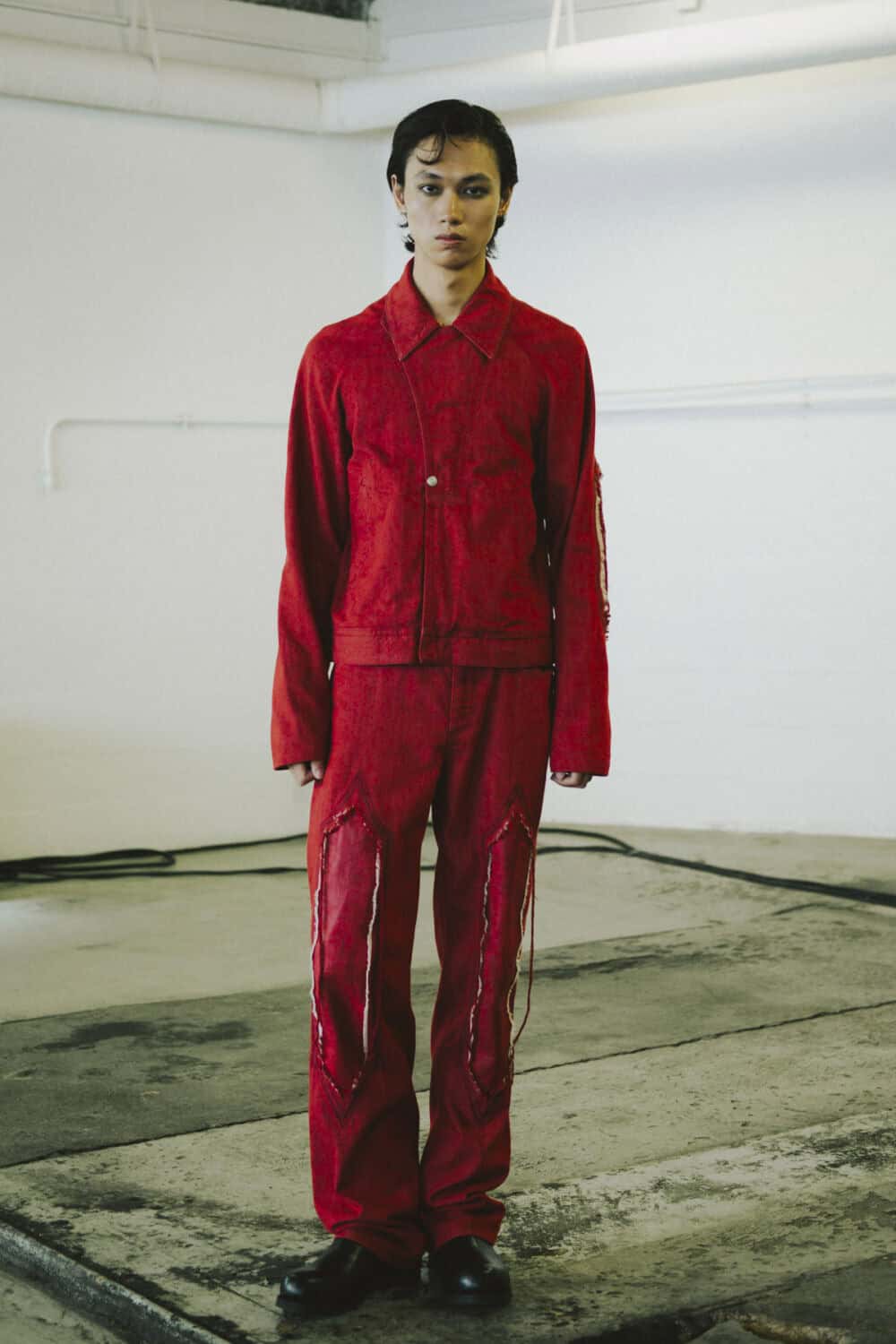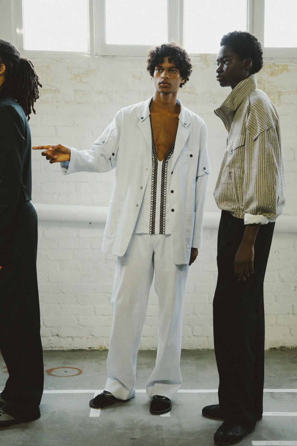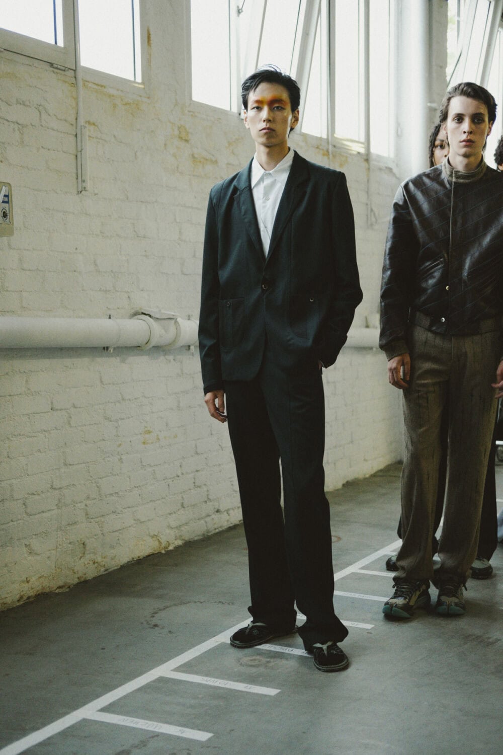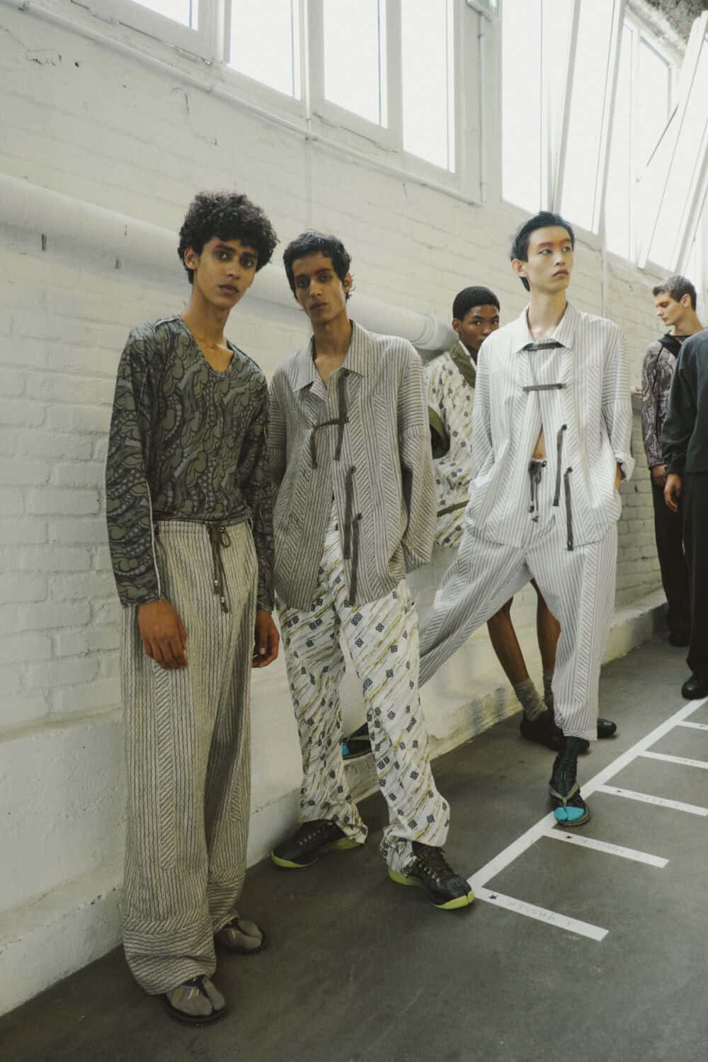 For the show, he built his own beach inside a car park, bathed in a warm orange glow, as models leisurely strolled in paisley twill tops and loose-fitting trousers that were inspired by Bulgarian military pyjamas. Transitioning into the working day, utilitarian co-ords in monochromatic shades of olive green and crimson walked alongside heavy duty denim and washed out Henleys that looked like they’d been baked in the sun. As for evening attire, Kostadinov proposed his most elegant tailoring to date, fitting blazers with asymmetric button fastenings or slashes at the chest. Anchoring the look in flip flops and a new Asics team-up for which the designer built a tabi toe into a running shoe, Kostadinov made wearing these rather extraordinary clothes seem effortless, as all great fashion should be.