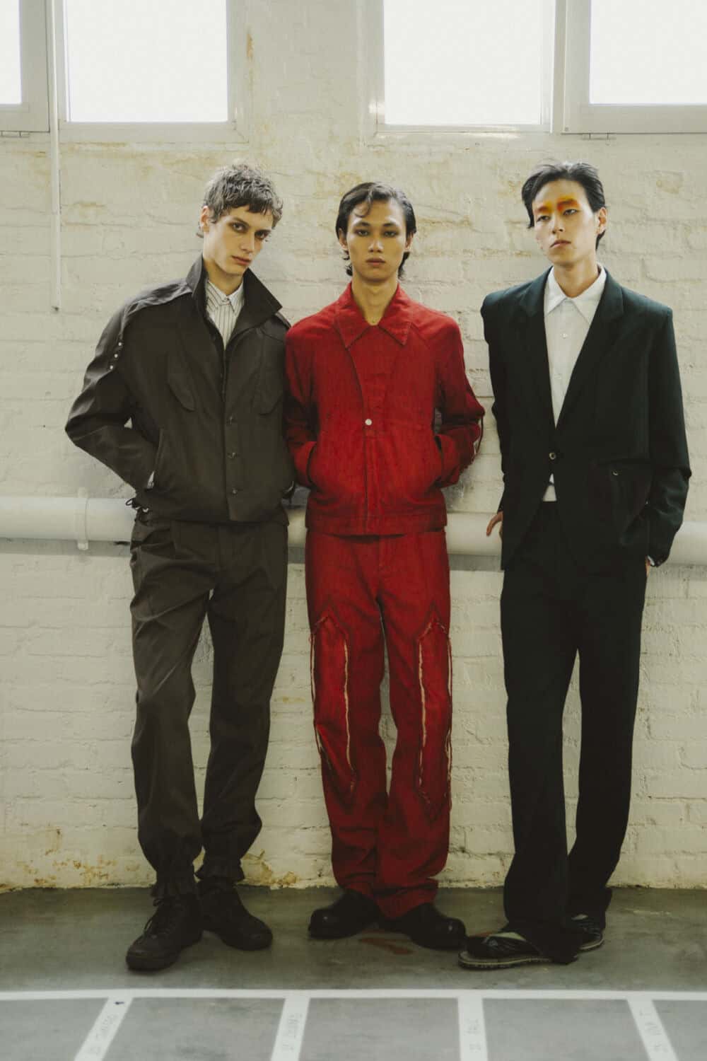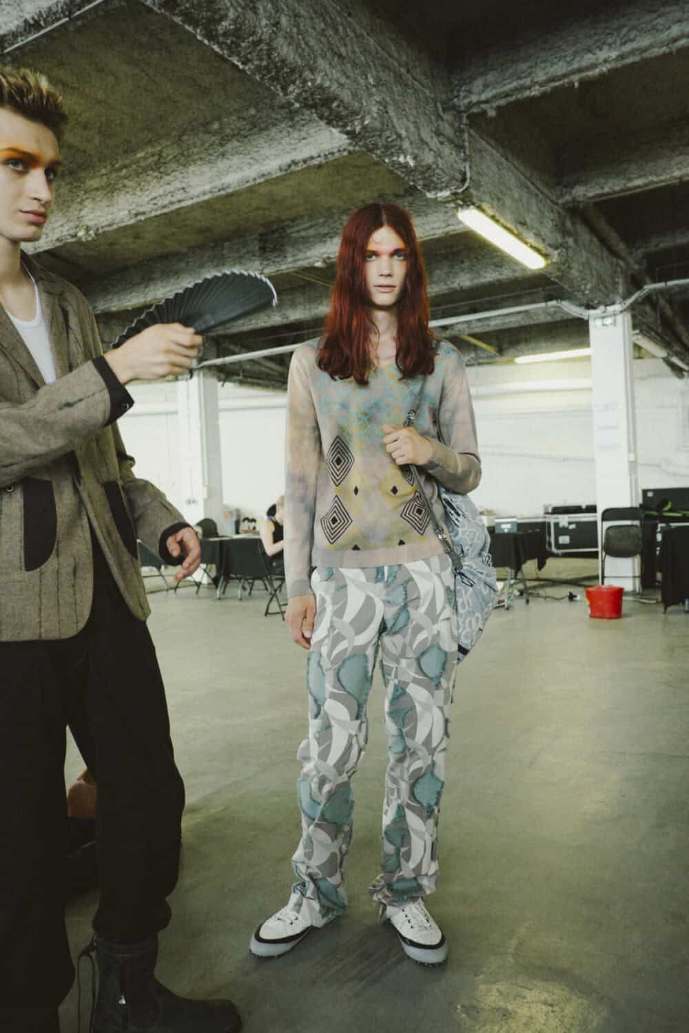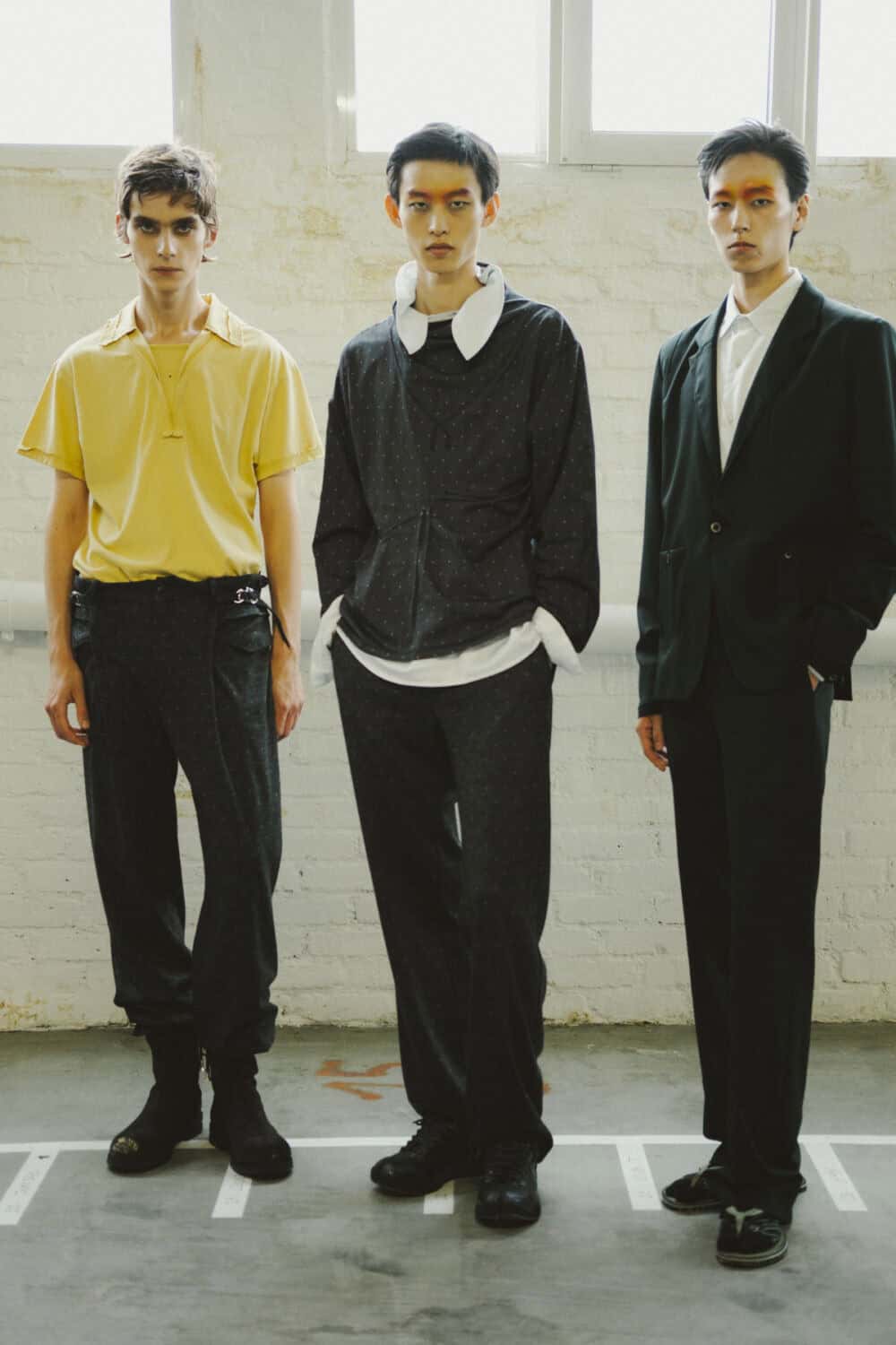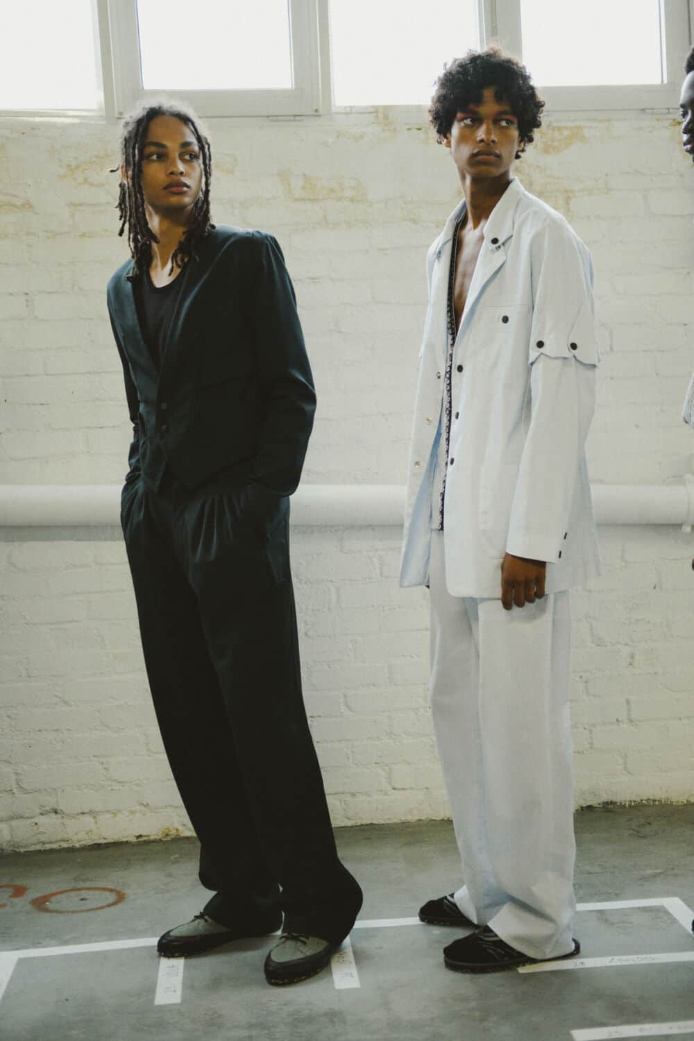 For the show, he built his own beach inside a car park, bathed in a warm orange glow, as models leisurely strolled in paisley twill tops and loose-fitting trousers that were inspired by Bulgarian military pyjamas. Transitioning into the working day, utilitarian co-ords in monochromatic shades of olive green and crimson walked alongside heavy duty denim and washed out Henleys that looked like they’d been baked in the sun. As for evening attire, Kostadinov proposed his most elegant tailoring to date, fitting blazers with asymmetric button fastenings or slashes at the chest. Anchoring the look in flip flops and a new Asics team-up for which the designer built a tabi toe into a running shoe, Kostadinov made wearing these rather extraordinary clothes seem effortless, as all great fashion should be.