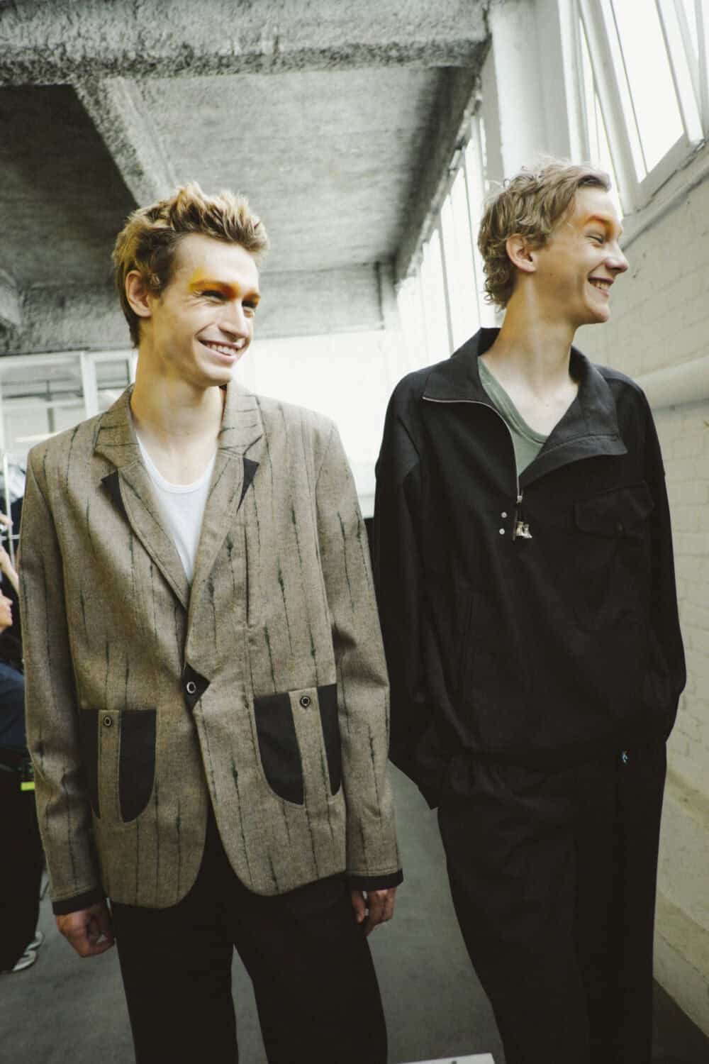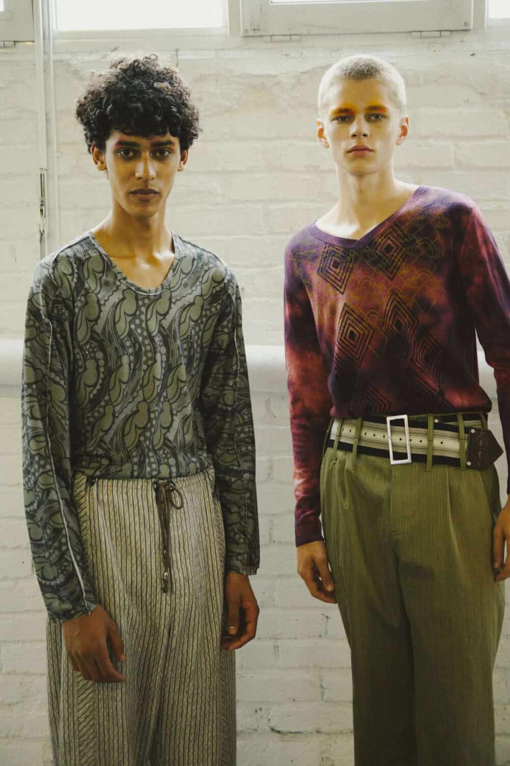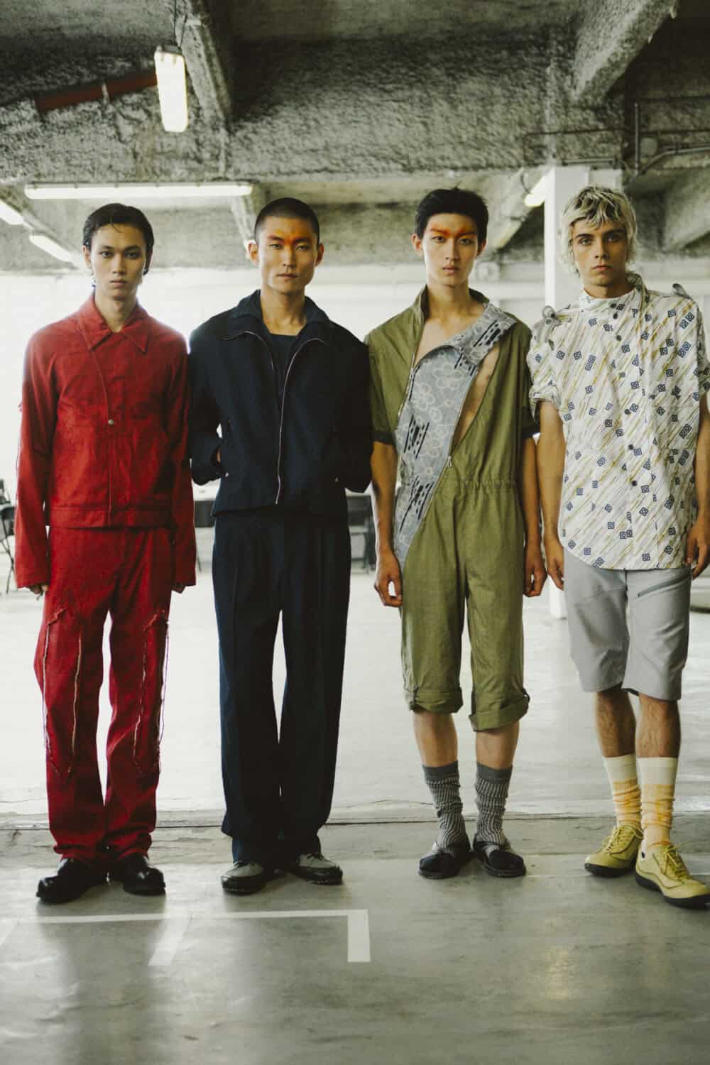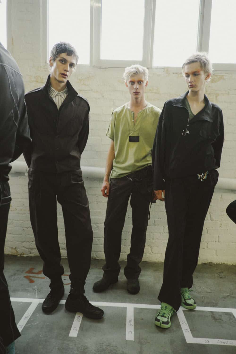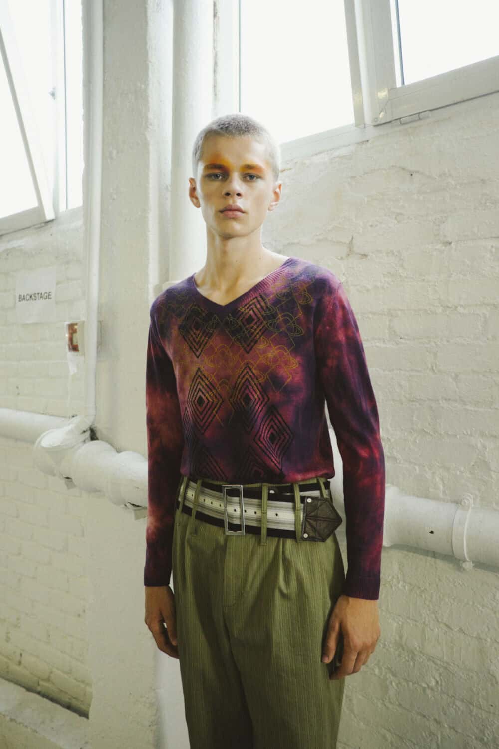 For the show, he built his own beach inside a car park, bathed in a warm orange glow, as models leisurely strolled in paisley twill tops and loose-fitting trousers that were inspired by Bulgarian military pyjamas. Transitioning into the working day, utilitarian co-ords in monochromatic shades of olive green and crimson walked alongside heavy duty denim and washed out Henleys that looked like they’d been baked in the sun. As for evening attire, Kostadinov proposed his most elegant tailoring to date, fitting blazers with asymmetric button fastenings or slashes at the chest. Anchoring the look in flip flops and a new Asics team-up for which the designer built a tabi toe into a running shoe, Kostadinov made wearing these rather extraordinary clothes seem effortless, as all great fashion should be.