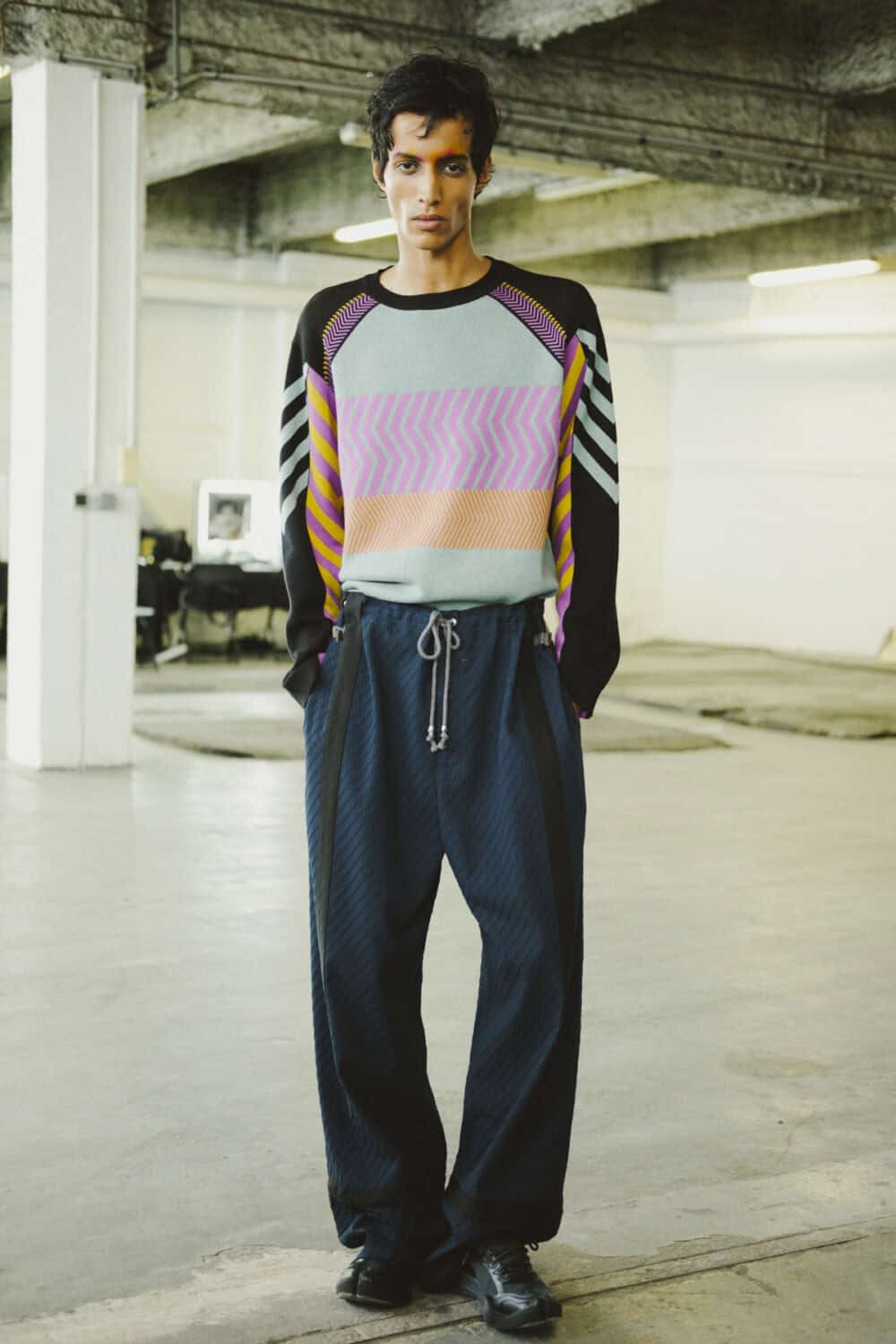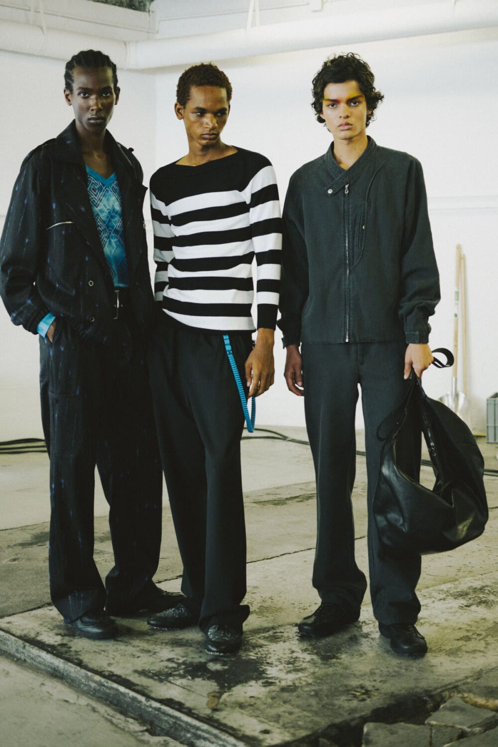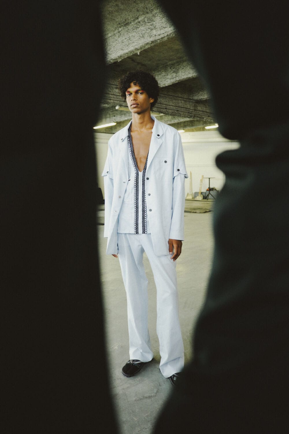 Island living was on Kiko Kostadinov’s mind heading into this season, which he based on the idea of creating a wardrobe of a man living in a remote fishing town. There was nothing banal about these clothes though. Instead, Kostadinov gave his future-facing design tropes a sun-kissed sheen, creating a series of looks that could dress you for all points of your day, from the moment you wake up to when you fall asleep again at night.