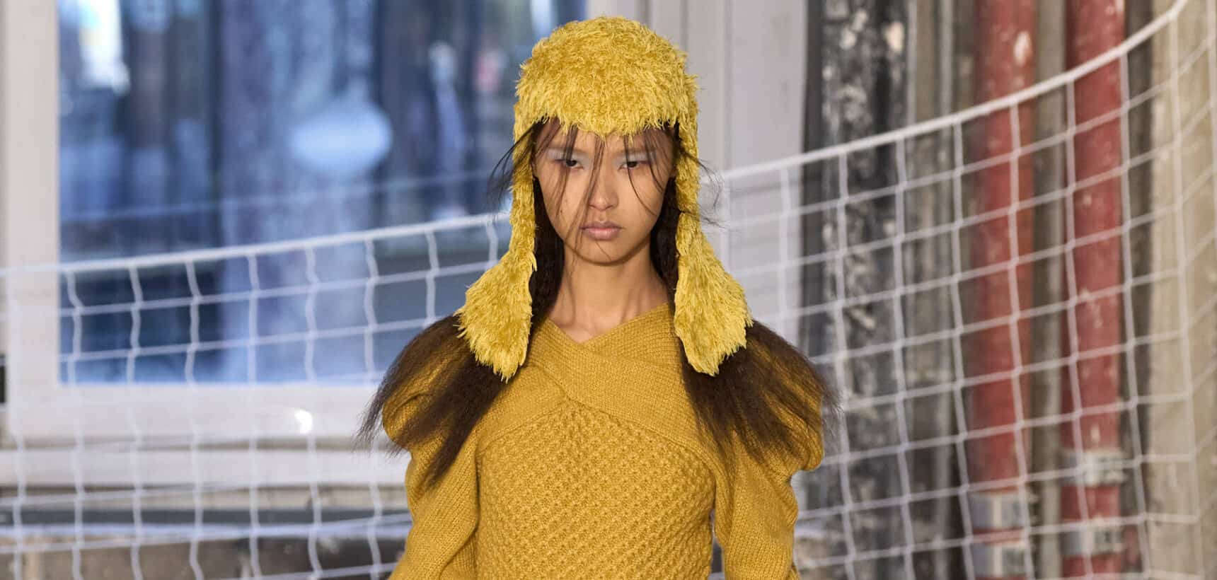 The brand’s classic Mezulari bag debuted as a slouchier messenger-style carryall that was slung over shoulders and hung down hips as if it were melting. Textural earth-tone caps that mimicked the shaping of chainmail headdresses nodded to armoured resistance while modular jewellery was skinny and sharp-edged. Shoes were kept sturdy and seasonal, sporting rubber bottoms and tough, suede bodies. As one of the last shows of the season, it was a strong note to end on.