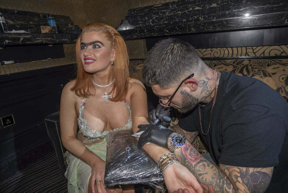 Another highlight of the evening came courtesy of Sophia Hadjipanteli, who proved her allegiance to the KLOSS-dom by getting the KLOSS logo inked on her arm live mid party by tattooer Certified Letter Boy who works at The London Social. Badass behaviour.