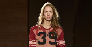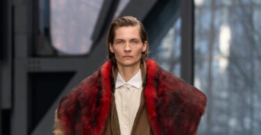The mood was “aloof chic”, and models’ played their part, walking through the Truman Brewery with a “hazy insouciance” to their step. Hanging from their hands, the Razr bag was updated in supple shades of ivory, pastel yellow, jet black and patent merlot, as well as in a crushed snakeskin graphic. That off-kilter snakeskin print permeated a flimsy jersey dress too. We loved it.
