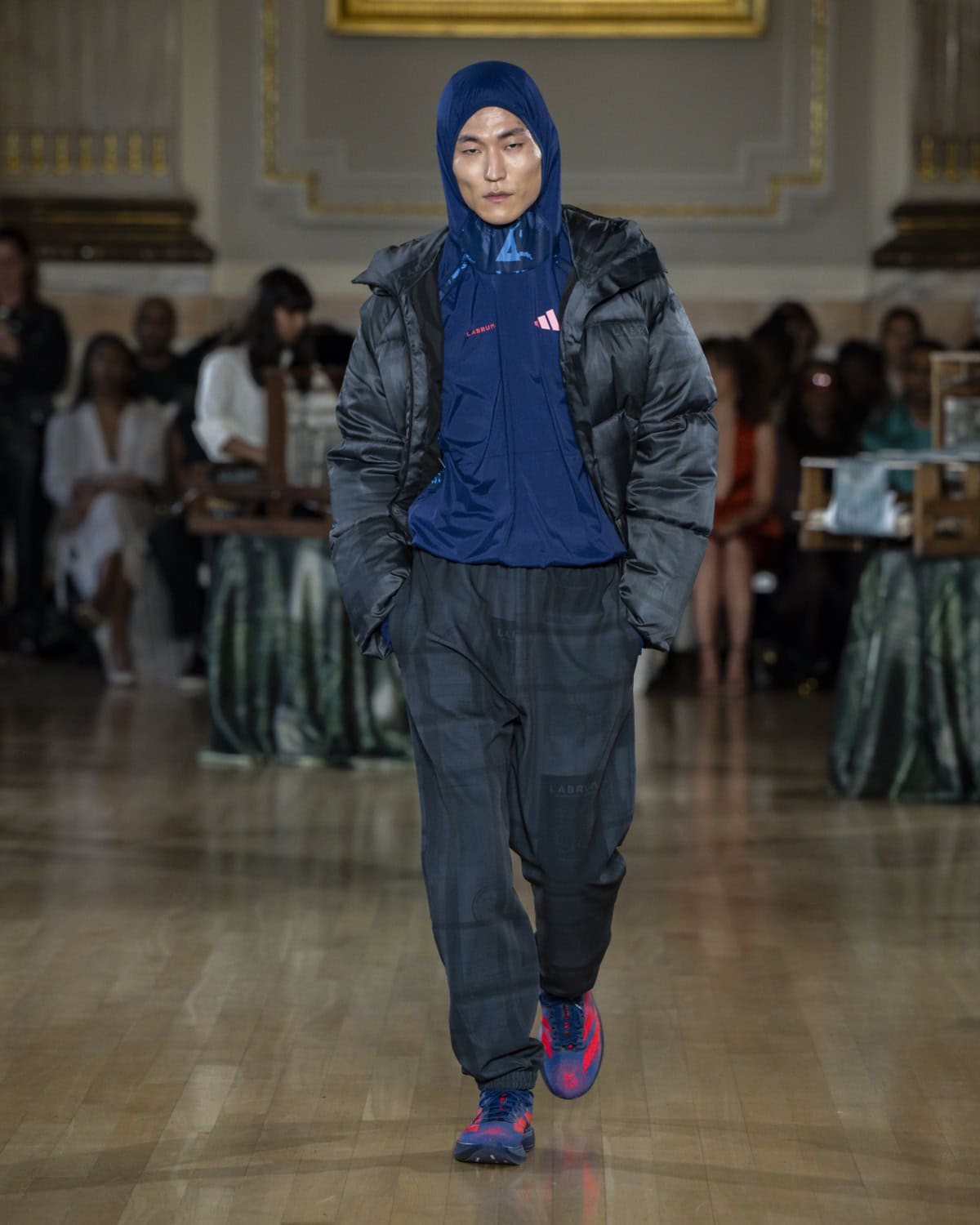 Looking once again at the impact of osmosis on culture – in how it moves and adapts – Foday Dumbuya’s AW26 Labrum collection pushed the idea further. He built especially off of last season’s sound-led exploration wherein music and oral tradition were framed as culture’s first mode of travel. But this time, he turned to textiles as the physical evidence of that movement.