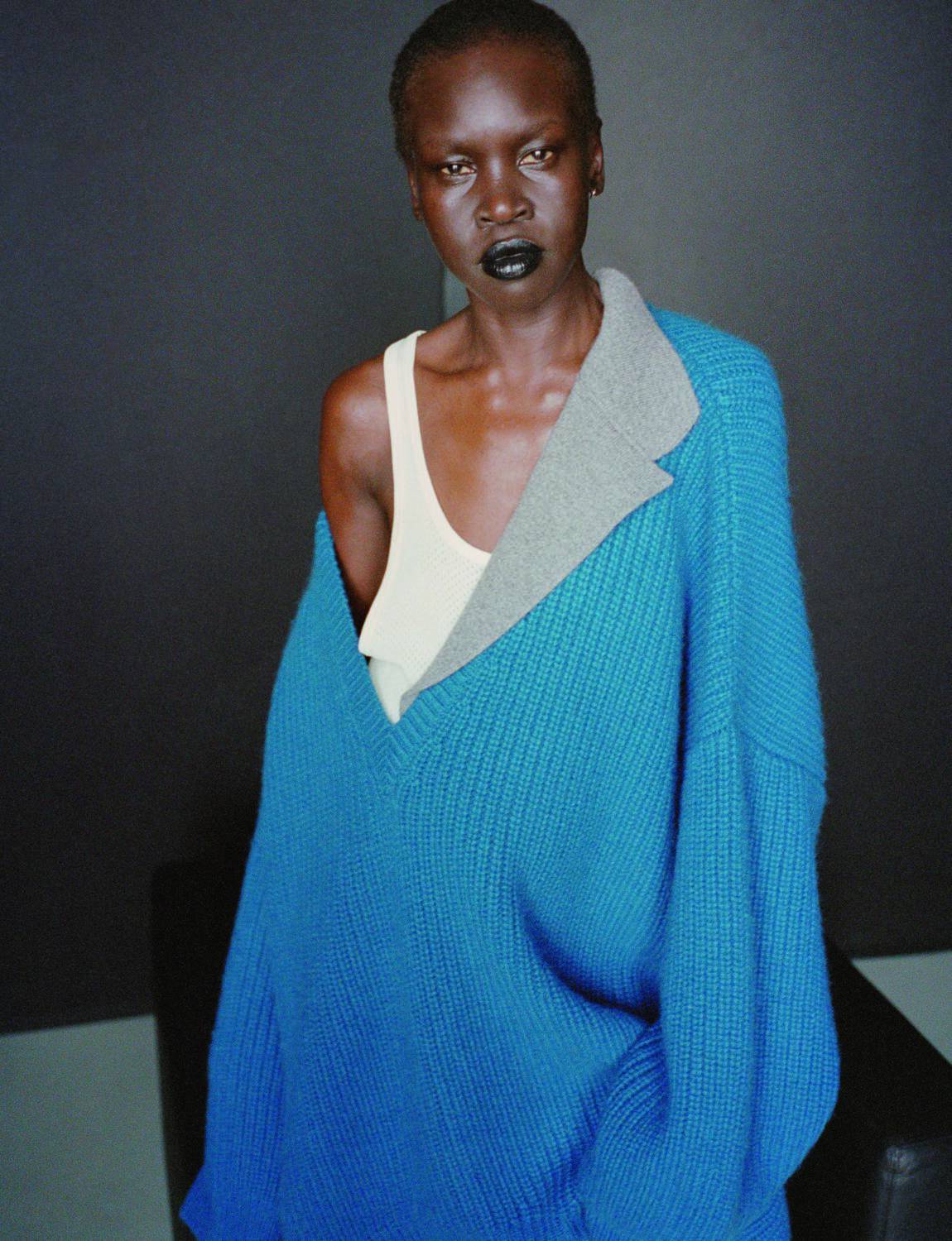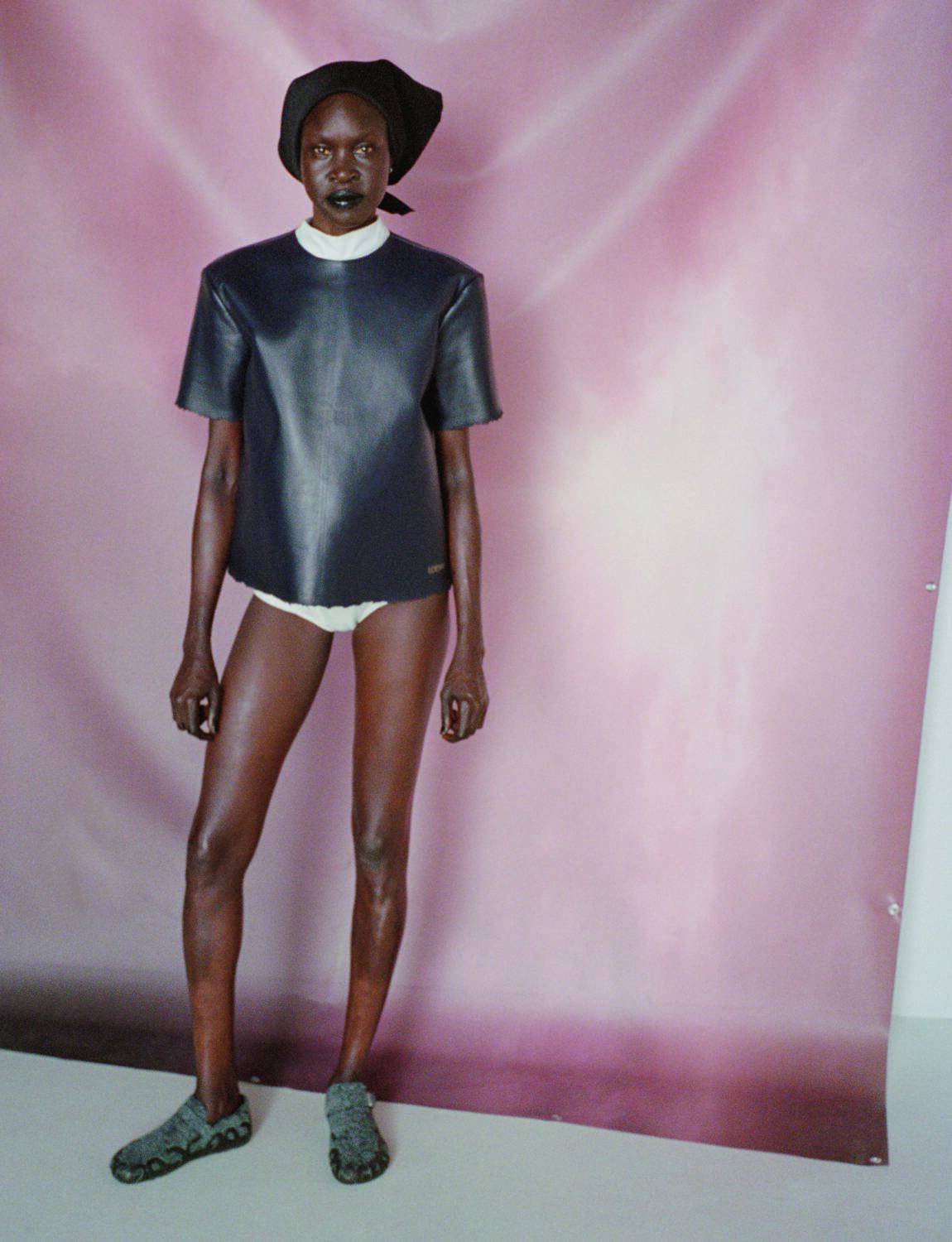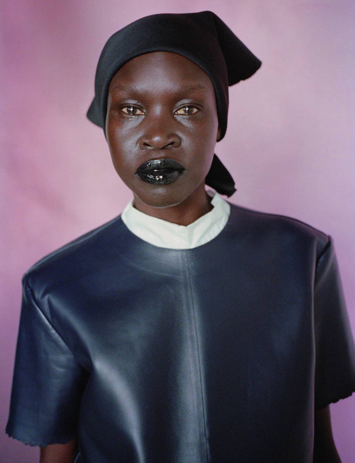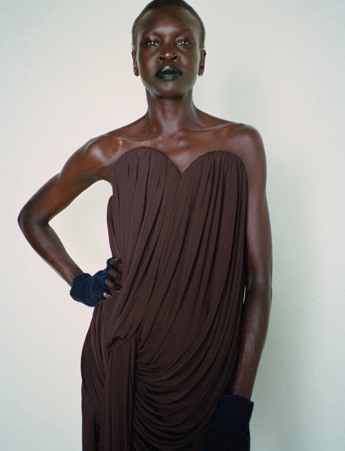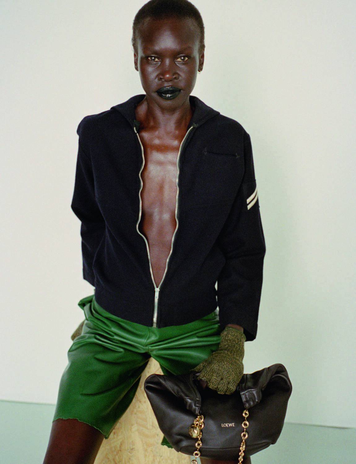 The supermodel Alek Wek shows off designer Jonathan Anderson’s masterful approach to luxe leathers and sleek and cozy separates.