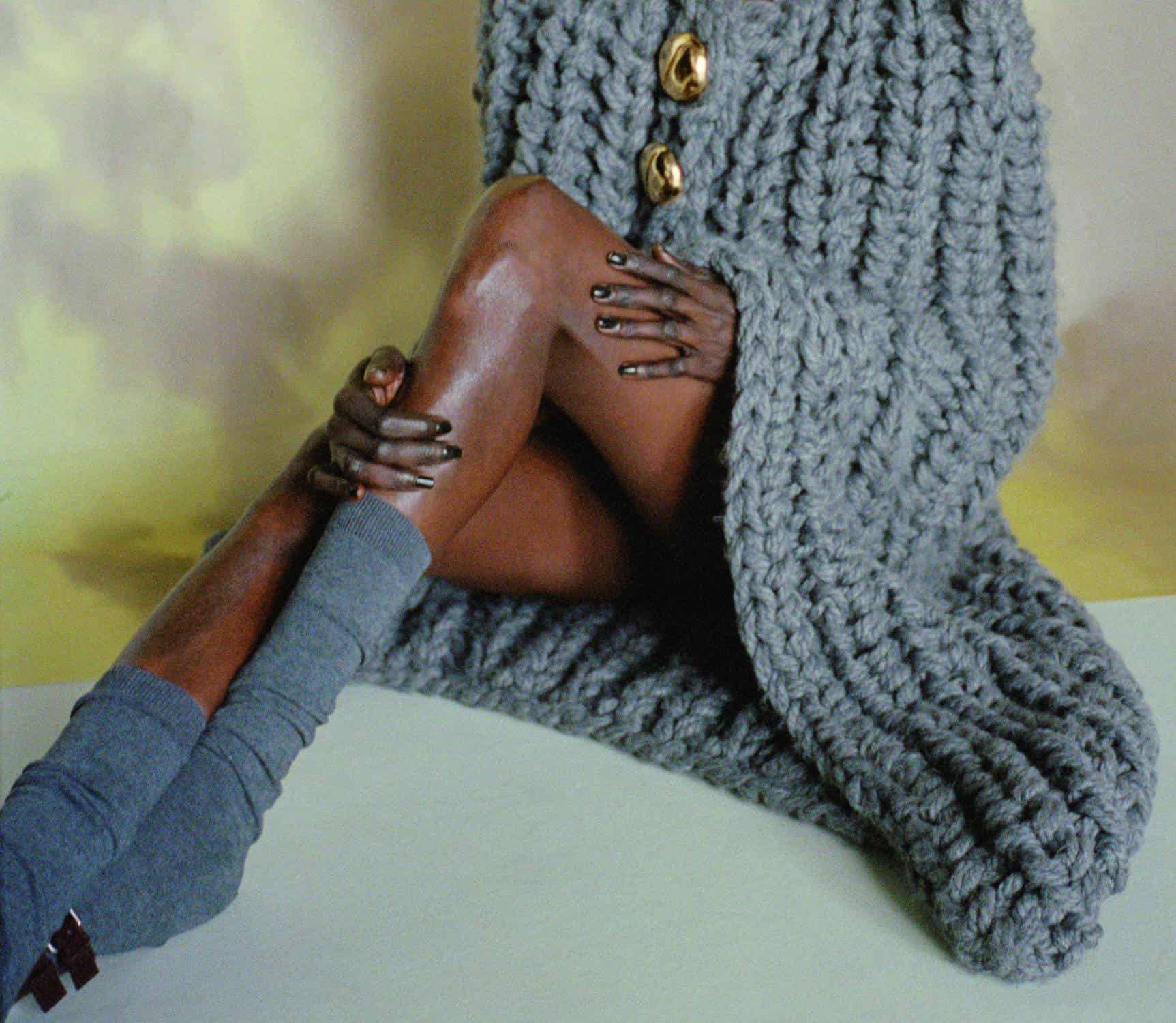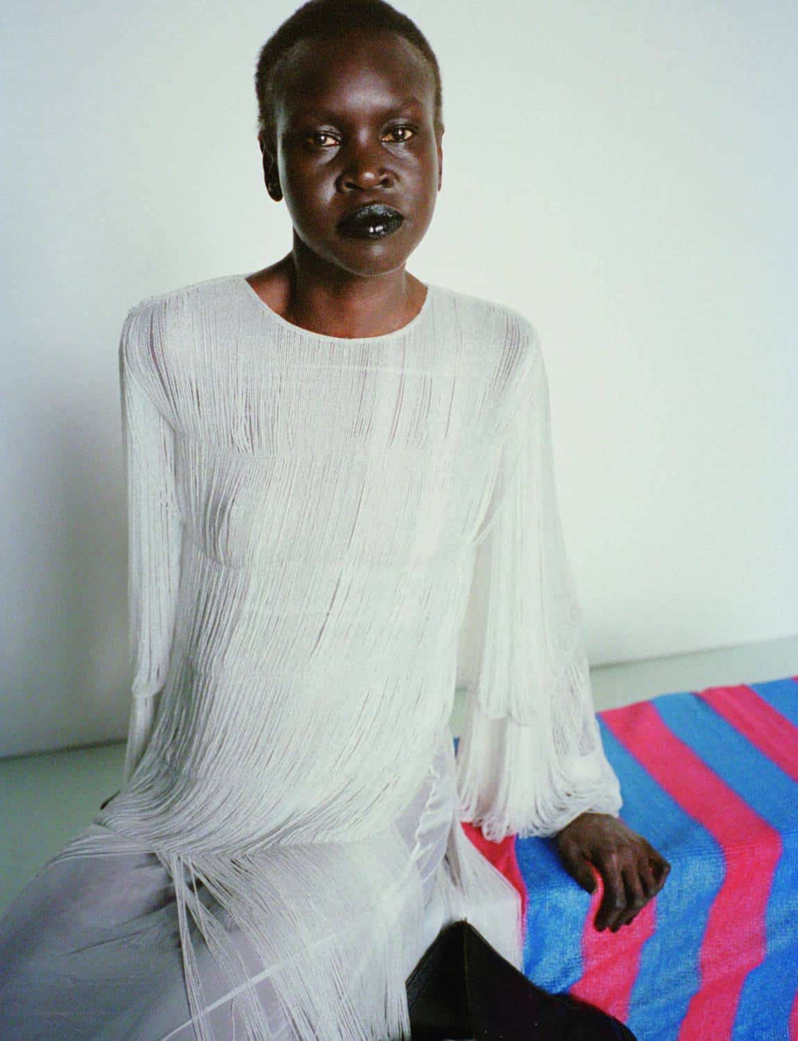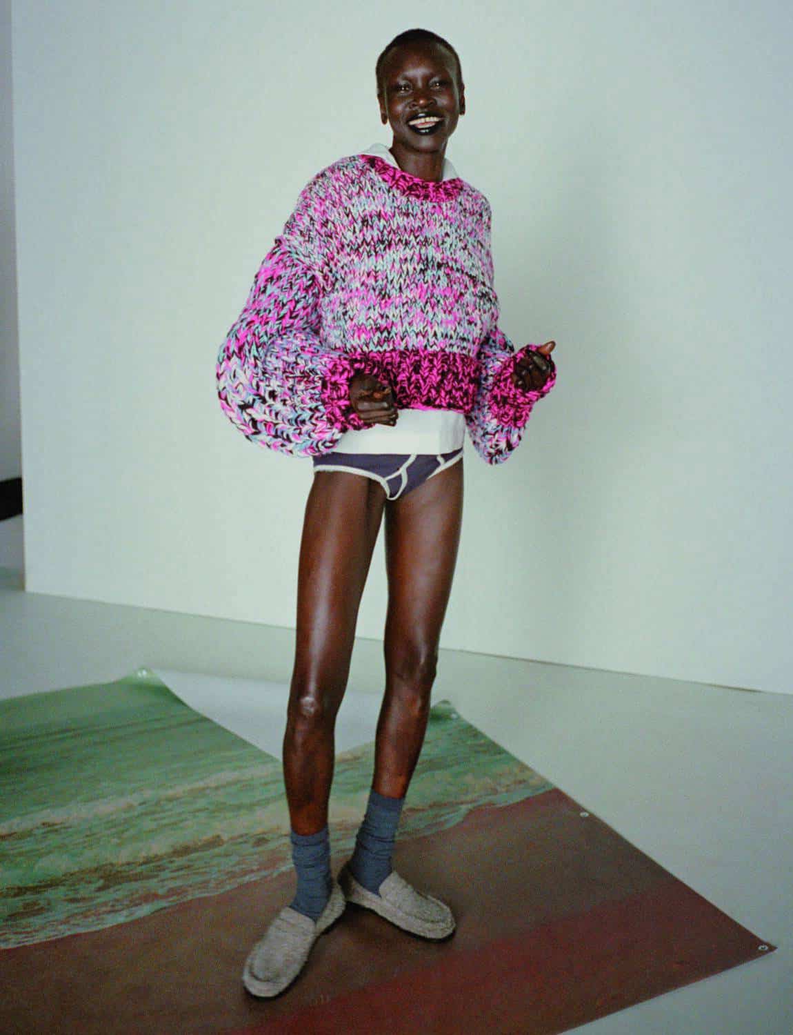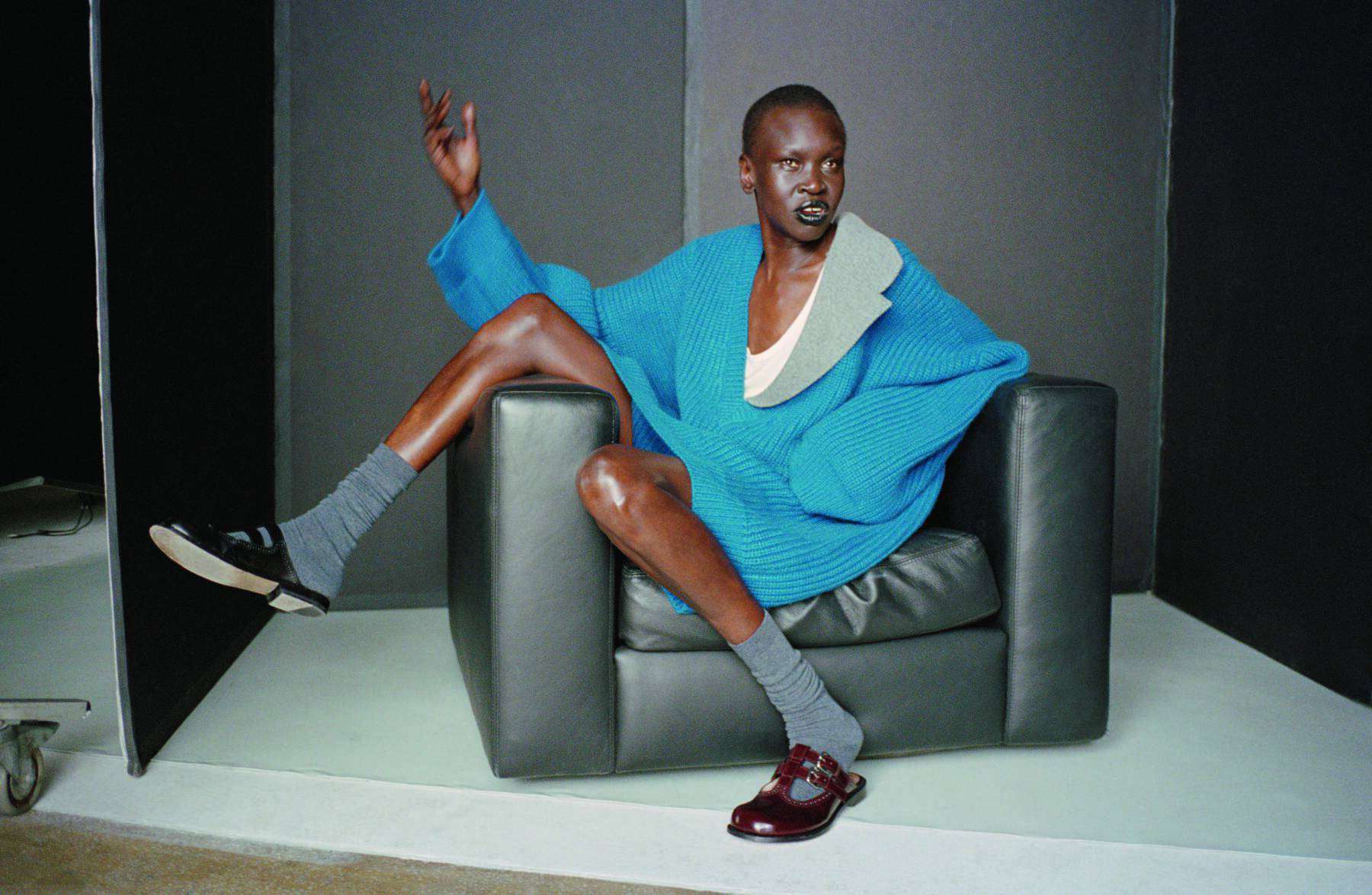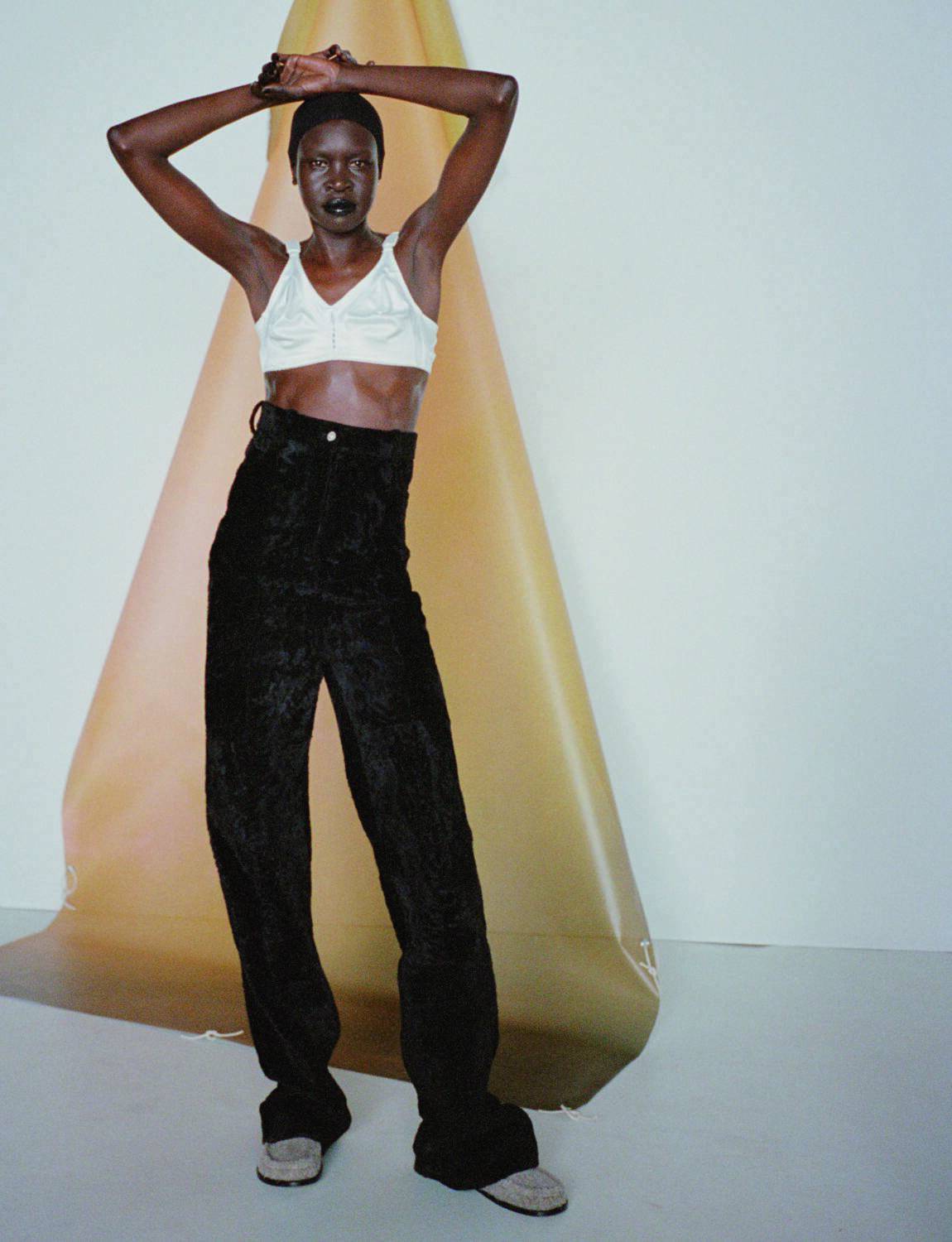The supermodel Alek Wek shows off designer Jonathan Anderson’s masterful approach to luxe leathers and sleek and cozy separates.