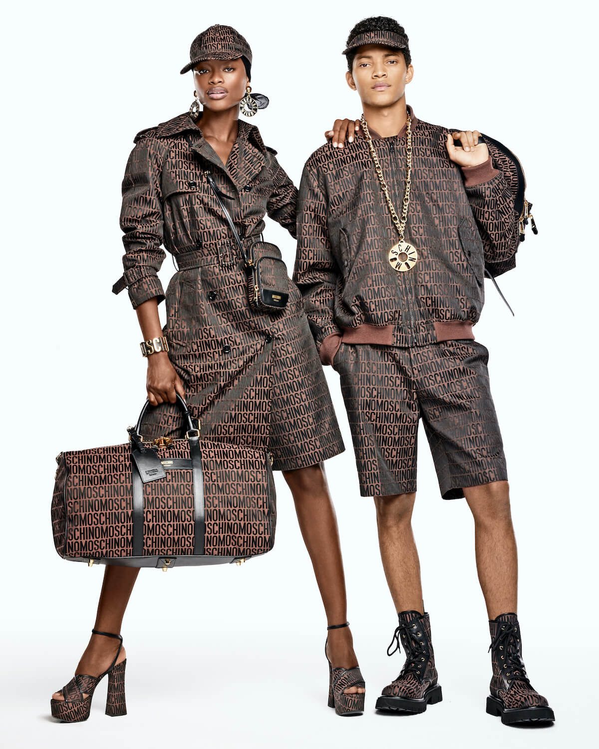 Yup, you read that right. Logomania is the craze that keeps on kicking – and Moschino is the latest luxury label to jump on the train. Today, the stateside maison debuted a capsule collection that features four monochromatic clothing colourways covered completely in embossed Moschino logo lettering. Entitled, Logo Moschino, the paradise pink, faded denim blue, chocolate brown and jet-black ready-to-wear articles and accessories are bold and bodacious – you’ll be turning heads with every strut. Made up of both mens and womenswear, there are puffer jackets, satin loungewear, matching tracksuits, and button down and knit sets, as well as a range of luxury travel accessories on offer. Take it from Moschino, logomania is alive.
