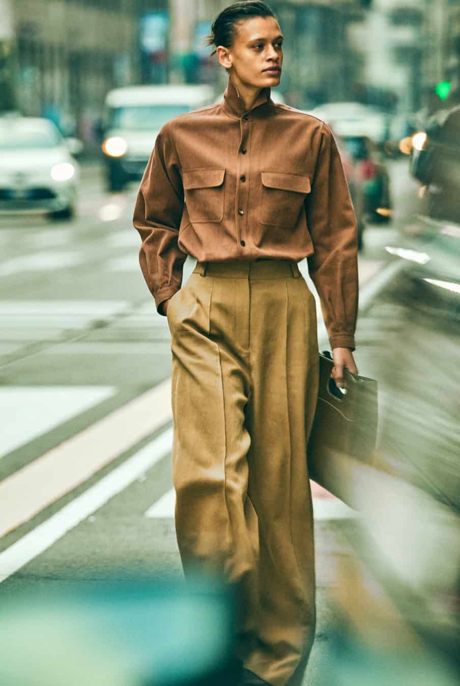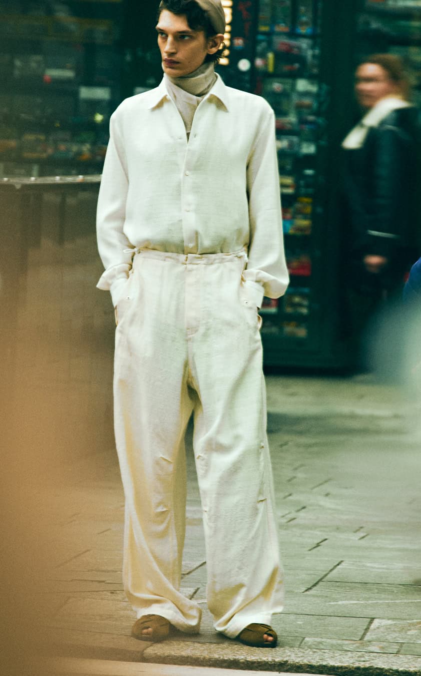If the Loro Piana take on femininity centres on noble fabrics (cashmere, silk, merino wool) crafted into fluid lines and gracious volumes, then for men, the brand offers an expression of soft power, based on slouchy silhouettes worn with an easy nonchalance. Alongside the classic Spagna, Traveller and Maremma jackets are workwear-inspired trousers in cotton, linen and silk, layered with Sergio knits, (named after the style beloved by the founder’s grandson). Add an enveloping trench coat and an oversize Bale bag and you have a wardrobe built for movement, in-tune with the body wearing it. What a feeling.