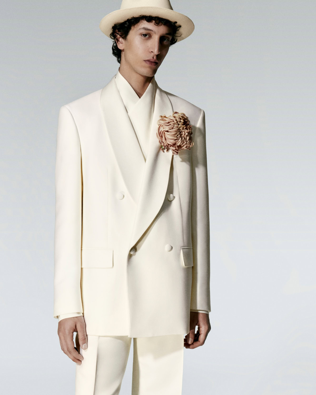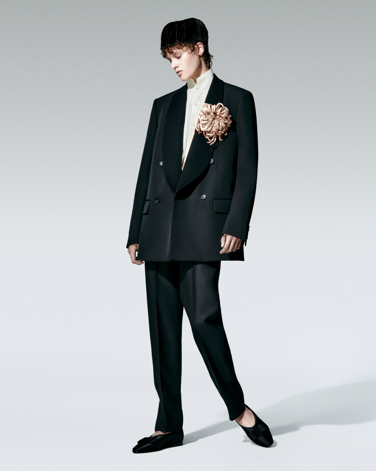 Evening is stripped back to monochrome – tuxedos finished with cashmere shawl collars, rollnecks instead of shirts – which somehow makes them feel more modern.