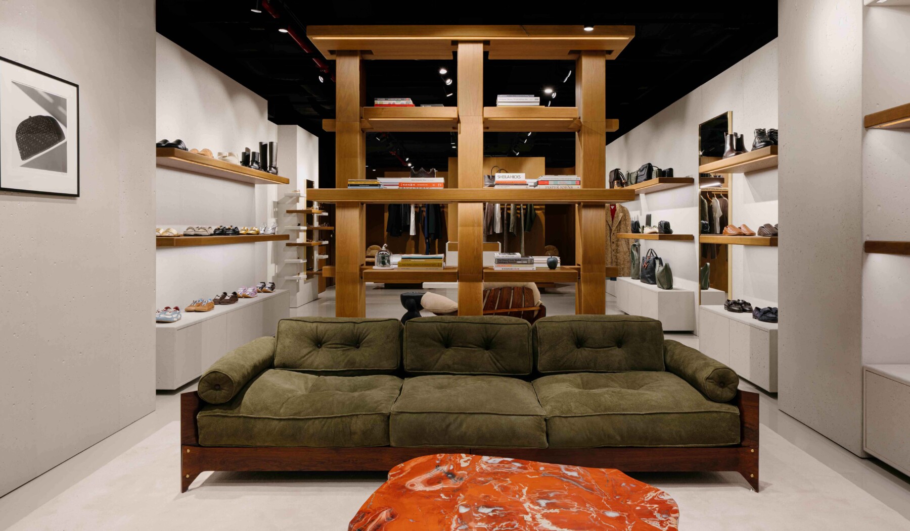 NYC’s Meatpacking District has a new resident as Bottega Veneta has opened on 58 Gansevoort Street. The new 312 square meter space will carry men’s and women’s clothing, jewelry, shoes, leather goods, jewelry, fragrance and even travel collections. With an interior that features concrete floors and walls alongside oak shelves, you’ll also note panel details rendered in green Verde Saint Denis marble. Given that the brand has become known for their focused decor curation, the new shop doesn’t disappoint with pieces by the likes of Jorge Zalszuspin and Lea Colombo as well as a glass vase by Orsoni, a Venetian brand founded in 1888. Another detail to note is a special display cabinet highlighting Bottega’s signature color palette as well as the intricate craft behind their Intrecacciato weave. Finally, as a nod to their new neighborhood and the NYC creative community at large, you’ll see curated artworks and an in-store library that includes Robert Rauschenberg’s illustrations for Dante’s Inferno, Etel Adnan’s Between East & West, and Ed Roberson’s Road Poems.