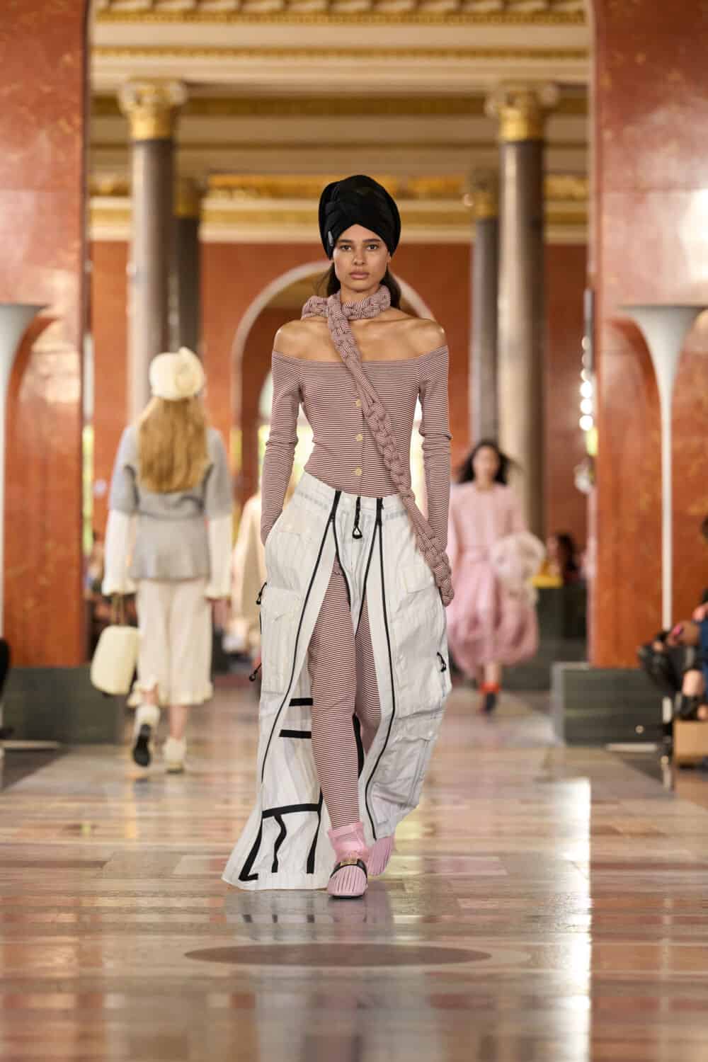 That sense of being in a private, personal space, (however much gold leaf there is on the ceiling), struck a chord with Nicolas Ghesquière, who spoke of wanting to evoke, “The serenity that you can feel when you are in the comfort of your home.” He mused too, on the liberating effect of privacy on personal style. “When you dress and you stay home, it’s not only jogging pants. You can dress with fun and sophistication at home. But you dress for yourself first.”