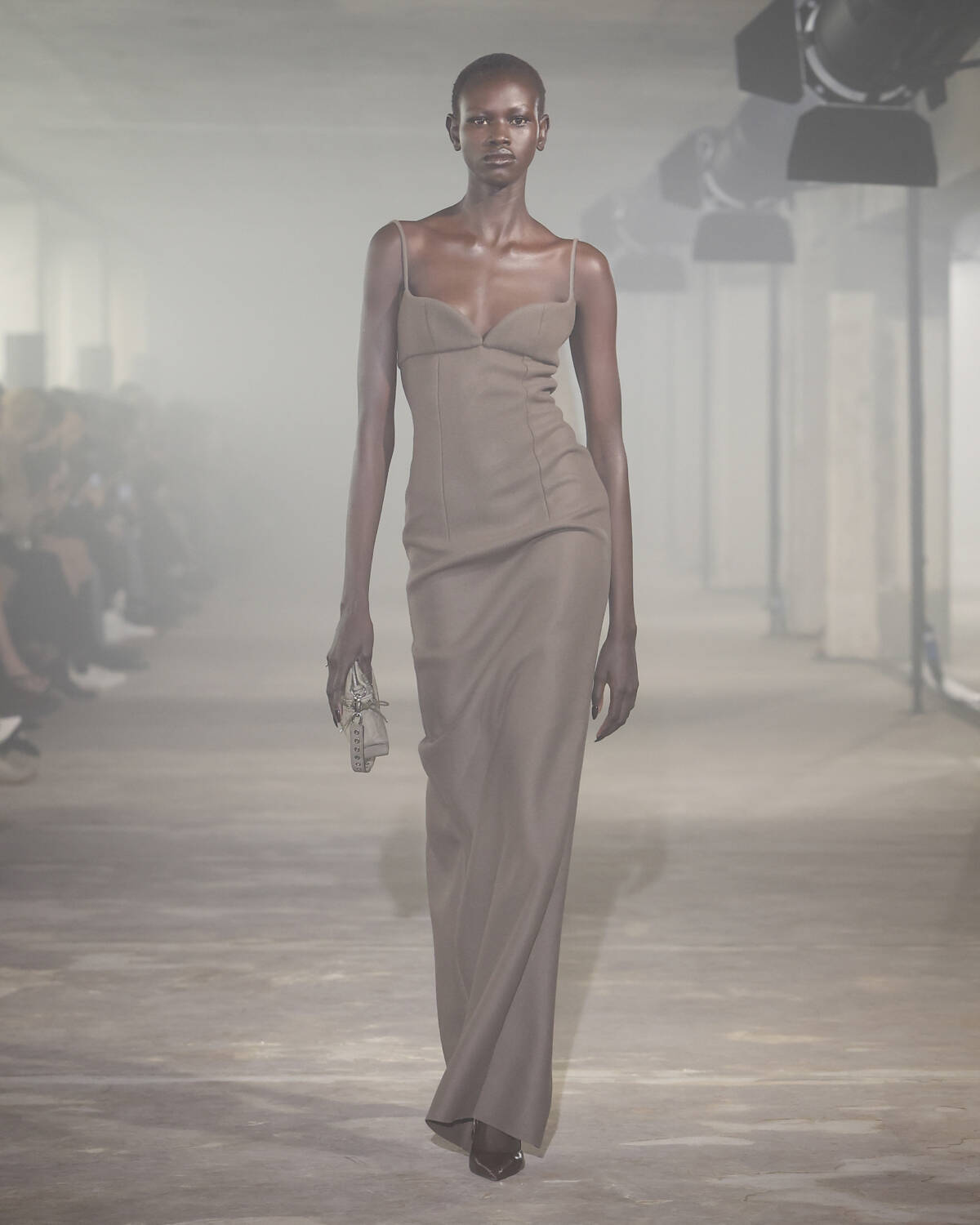 Saint Sernin’s leather offerings were next-level, developed in collaboration with LVMH Métiers d’Art. His Cleavage bralette and spaghetti-strap dress, reimagined in python skin, were both sophisticated and seductive. The seamless lace evening gowns, with their metal mesh busts, spoke to a meticulous artistry that didn’t shy away from boldness.