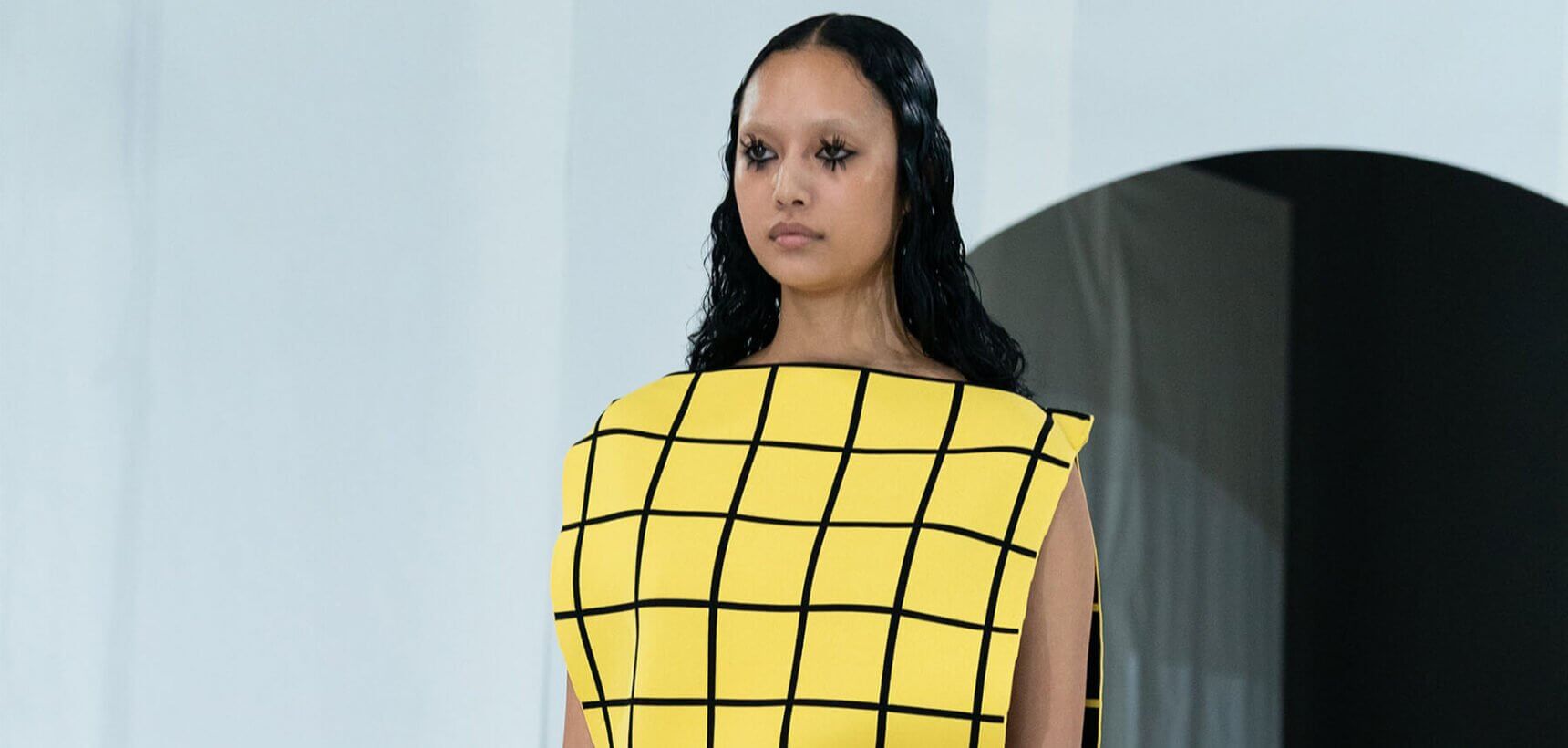 Risso drew on the virtues of Japanese culture and craft – permanence, patience, proficiency – in a collection he described as a more rigorous take on Marni. “I feel an urge to find a way of making something born not to be a futile object – not to be a waste – but which can last in time. In a way, it’s a sense of rigour but not the harsh kind; a rigour that makes us reflect.” He expressed it in a boxy, almost cartoon gangster-like tailoring silhouette painted in graphic polka dots and checks, which eventually exploded into super-tactile padded jackets and coats. The same motifs bombarded dresses that played with evening lines, from peplumed cocktail numbers to skimpy ‘60s shapes.