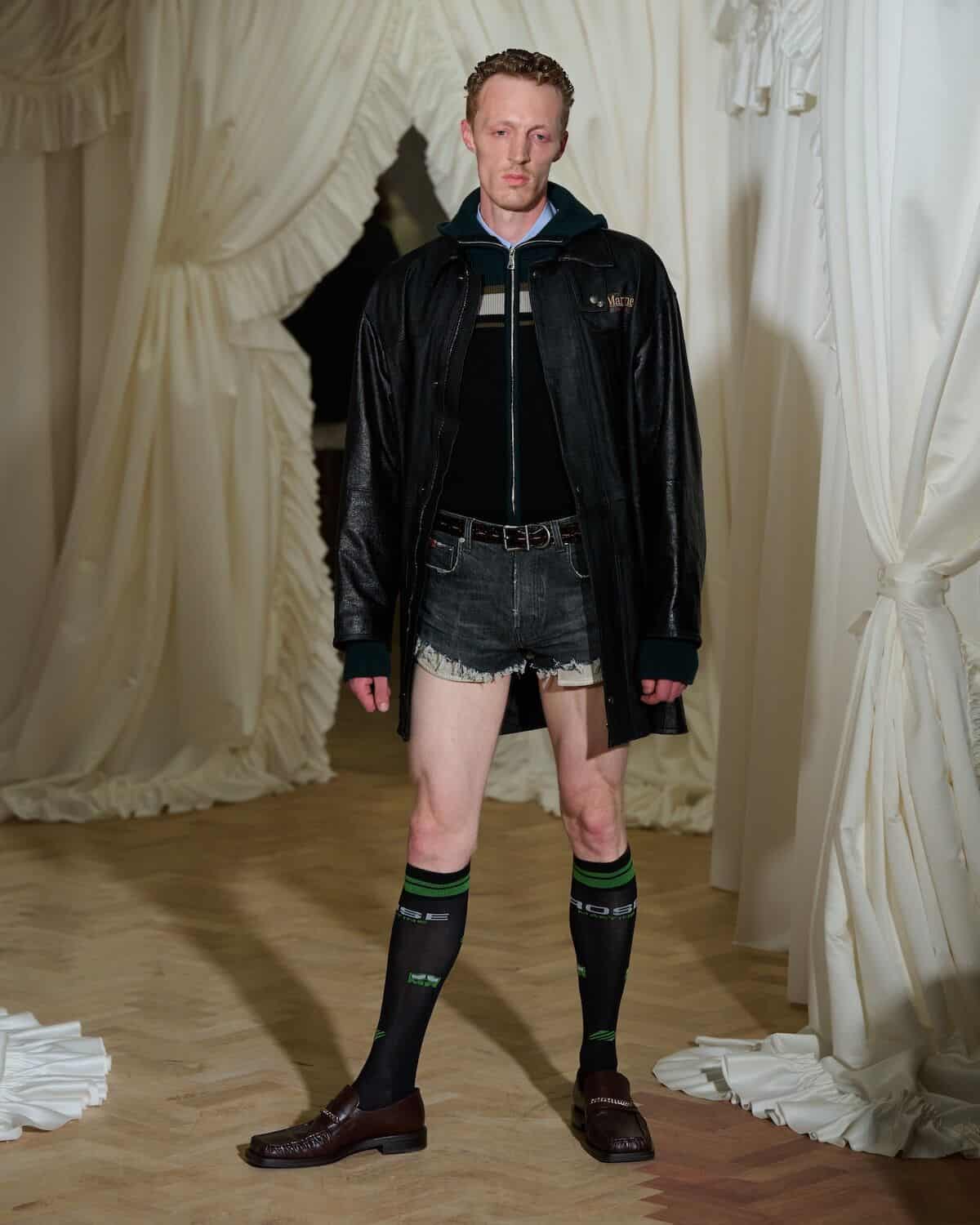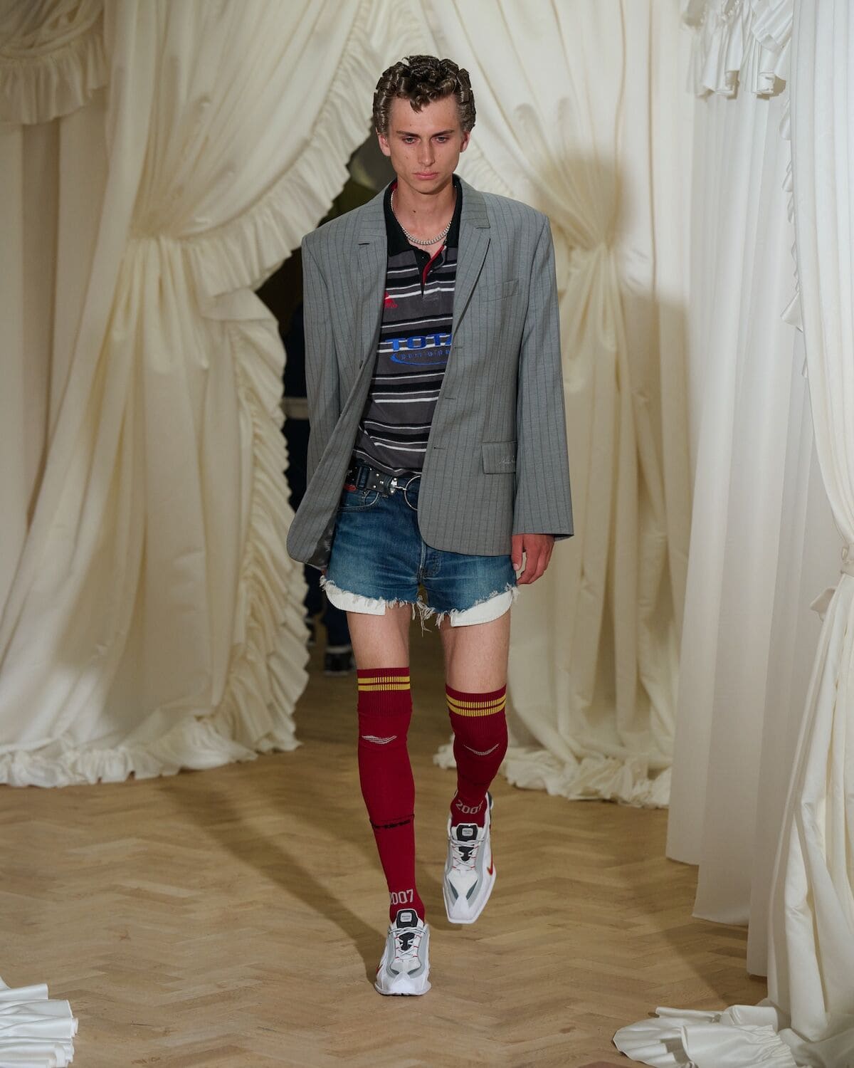 As with all things Martine, there was something kinky about the whole thing. Slacks came fused with footie socks, frayed daisy dukes were belted with cock ring-like buckles and Nike trainers were elongated into sleazy winkle pickers.