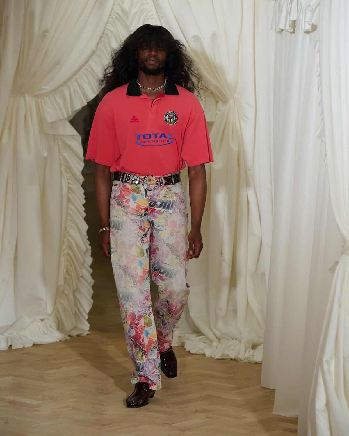 One thing guaranteed from a Martine Rose show is a load of community spirit. It’s never been a one-woman show for Rose, who has routinely used her catwalk shows (many now the stuff of legend) to spotlight the work of her ongoing collaborators, uplift her local heroes and celebrate those who live life on the fringes in blazing glory.