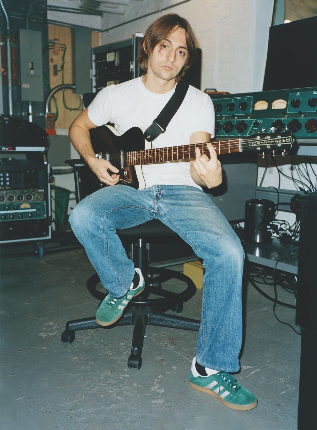 During high school, when New York City kids are usual- ly playing soccer, interning, or faking their way into bars, Arsun Sorrenti had a different hobby: “I’ve been col- lecting audio equipment since I was 16.” While the pro- ducing world looks to “crate divers” like Mark Ronson to find hidden sounds on forgotten frets, Sorrenti, now 26, is a live version—seeing potential in the oldest ped- als. He doesn’t sit on them either; his treasured pieces of old tech make their way into his songs, their delight- fully outmoded pitches and jangles striding the sonic blast in his 2024 debut album, Babe I Hear Thunder in Your Heart, and in the new music he has been releas- ing since then. “Fifties and Sixties music is the back- bone of what I know,” he says. He listens to classic rock, yes, but also classical music, hip-hop, jazz, folk, and sources so varied they can be surprising: Appalachian music and sea shanties have a considerable impact on his output. The tracks were different and profound enough to catch the attention of Cat Power while Sor- renti, who performs as Arsun, was still in high school. She asked him to open for her: in Europe, Australia, the US, everywhere. “I went from playing in practice rooms to immediately playing in front of 1,000 people. And I continued to tour with her for years,” he says. Cur- rently, he’s perfecting his next song—“It’s kind of got a little bit of a jazzy nature to it, like a Julie London record”—and this spring is part of the line-ups at Luck Reunion, a music festival held at Willie Nelson’s ranch in Texas, and SXSW. And he’s obsessing over his lat- est toy. “I have an EMT 140 Plate Reverberator, a huge metal plate enclosed in a wooden box. It vibrates and comes back as this echo chamber sound,” he explains. “It’s like half the width of a car. I just love this reverb.”