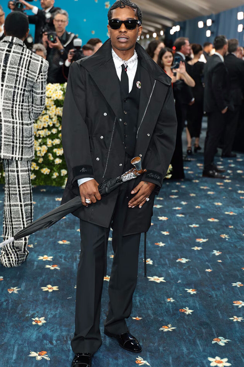 As co-chair, A$AP Rocky was on the carpet bright and early clad in a custom design from his label AWGE, made in conjunction with stylist Matthew Henson. After hours of speculation, Rihanna did indeed join him, showcasing her pregnancy in a tailored Marc Jacobs look that perfectly complemented her partner’s suit.