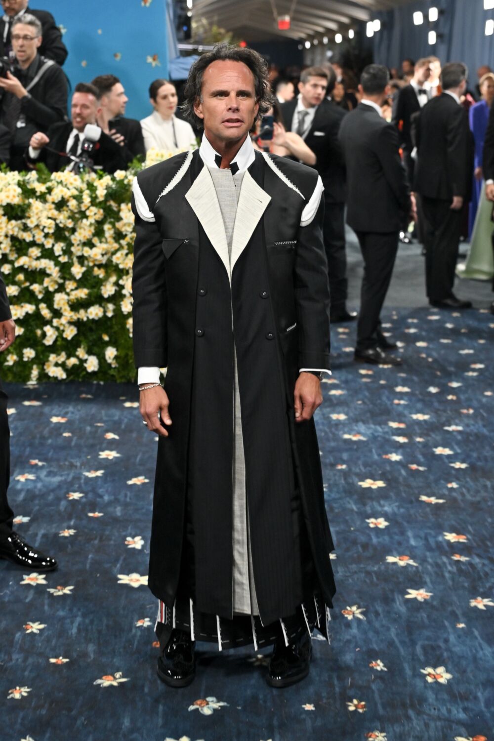 Given that it’s a year on tailoring, of course Thom Browne was going to have a big showing as well. For Monae, her look was created in conjunction with Oscar-winning costume designer Paul Tazewell. The deconstructed suit referenced the movie Metropolis, while the derby hat was inspired by blues singer Gladys Bentley. As for Goggins, his skirt and blazer ensemble was pure joy as seen in the way he twirled on the carpet.