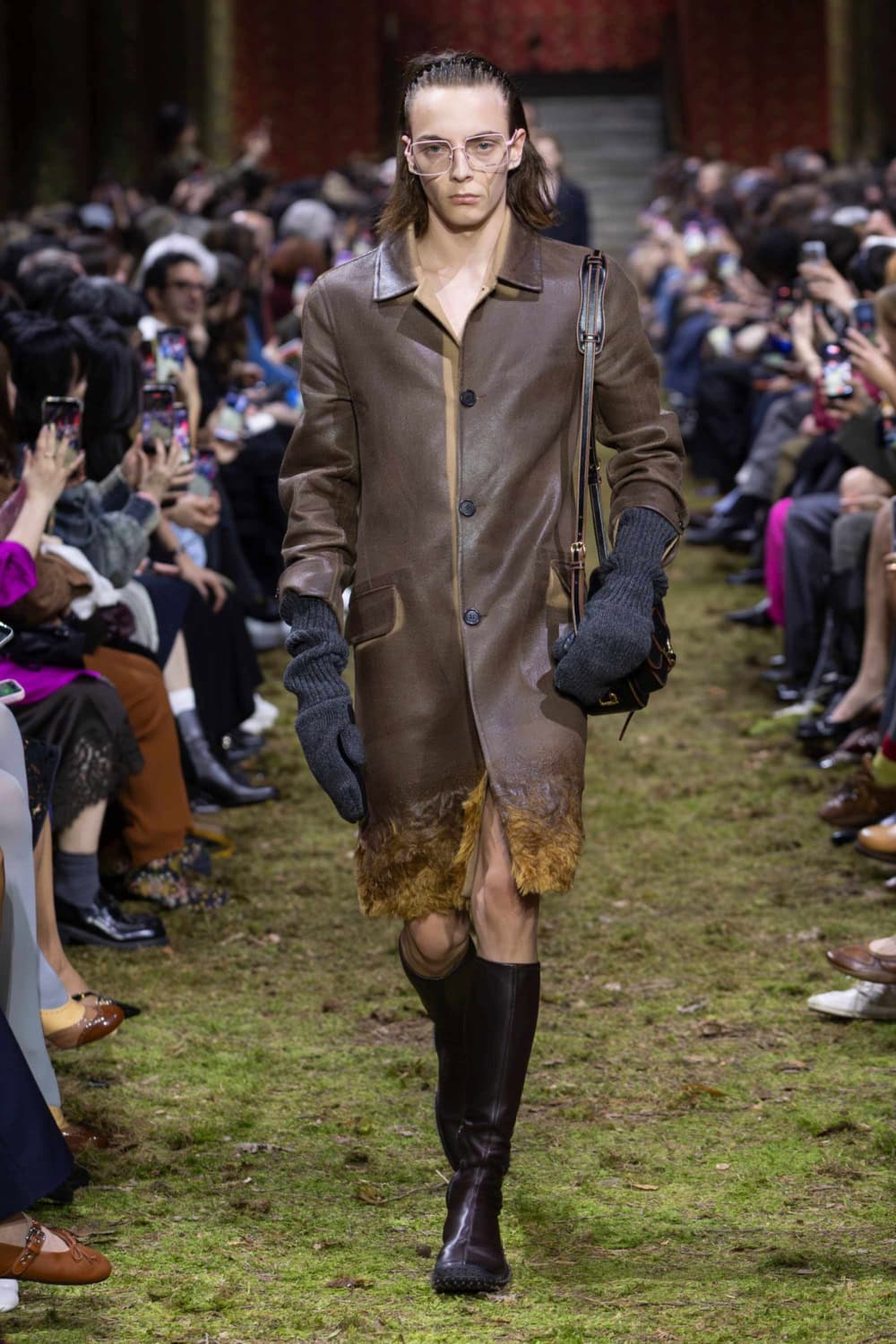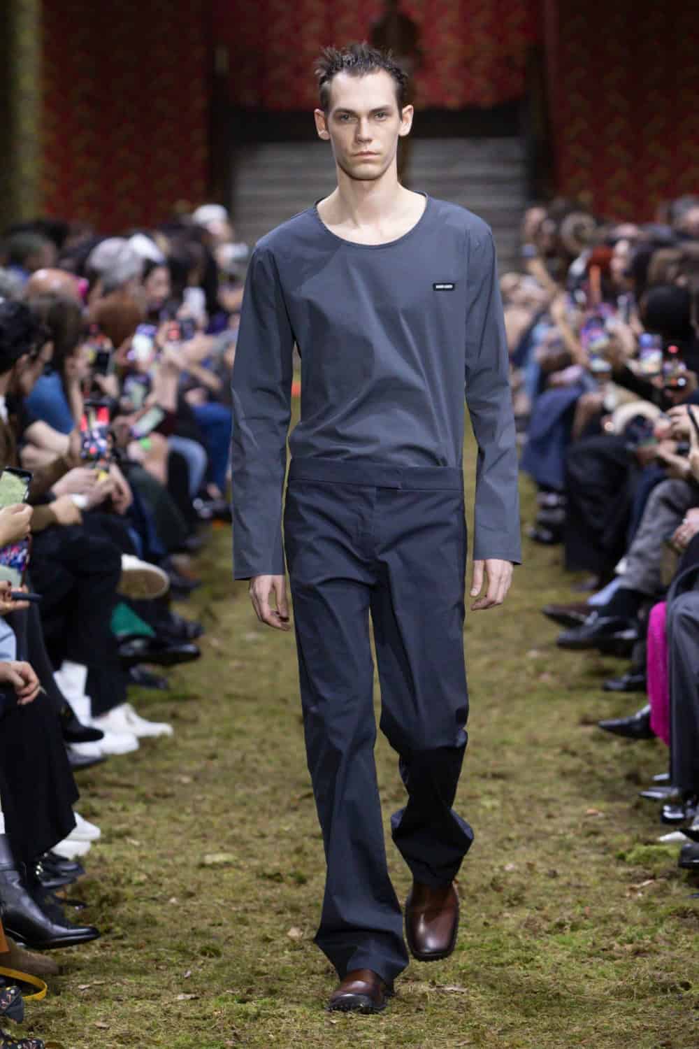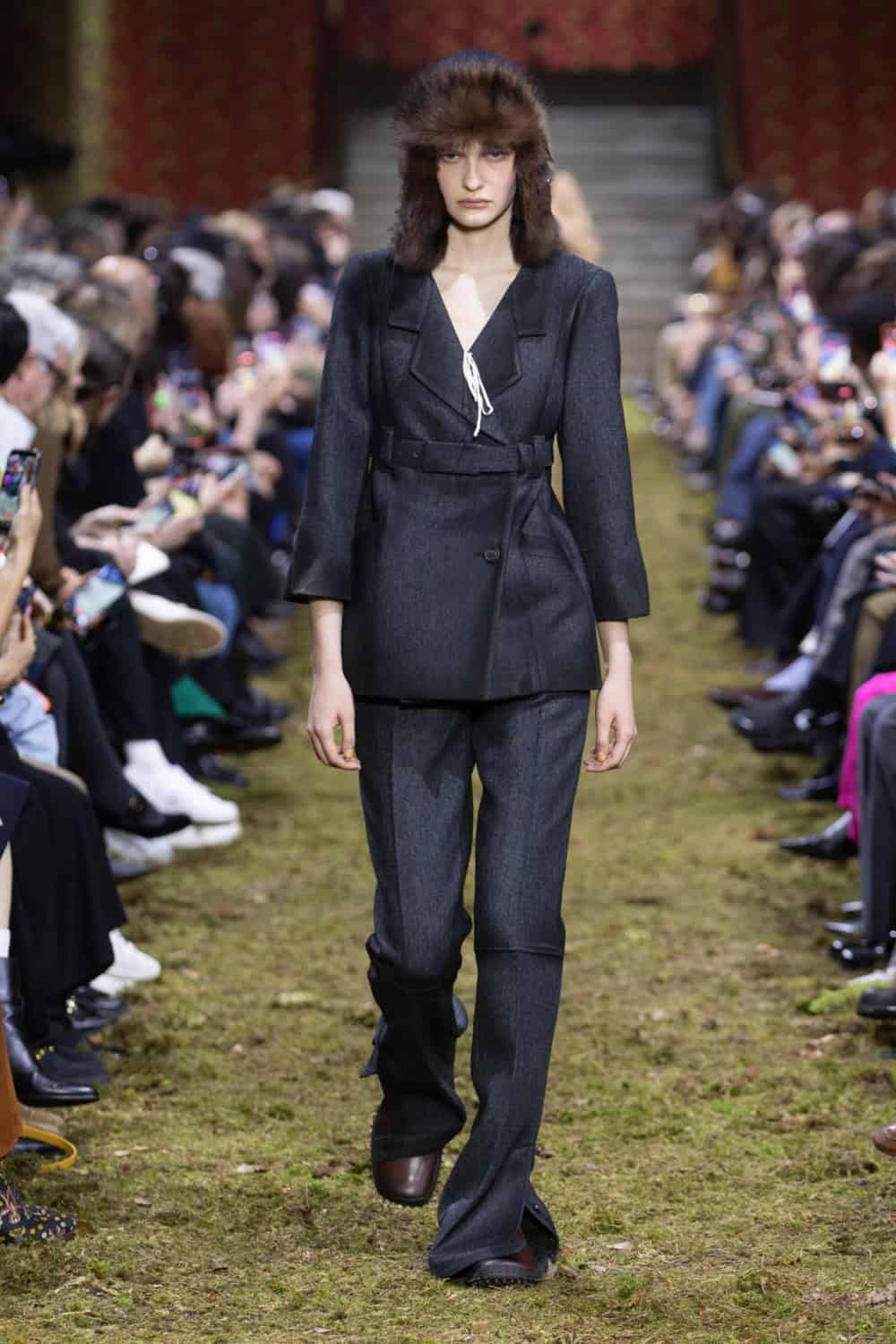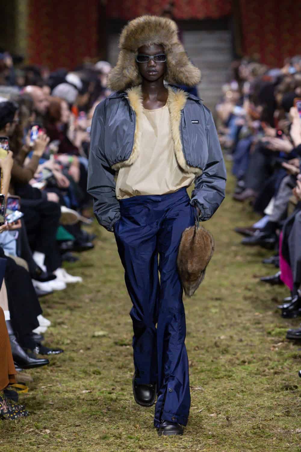 On the last day of Paris Fashion Week, Miuccia Prada brought us back down to earth. The Palais d’Iéna was filled with dirt and grass, creating what felt like a wild forest within the grand space. It was a deliberate contrast between smallness and vastness that would inform the entire Miu Miu Fall/Winter 2026 collection.