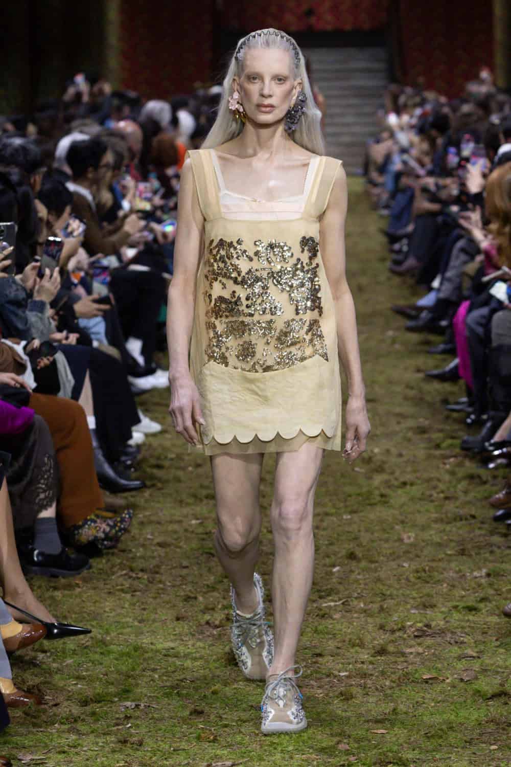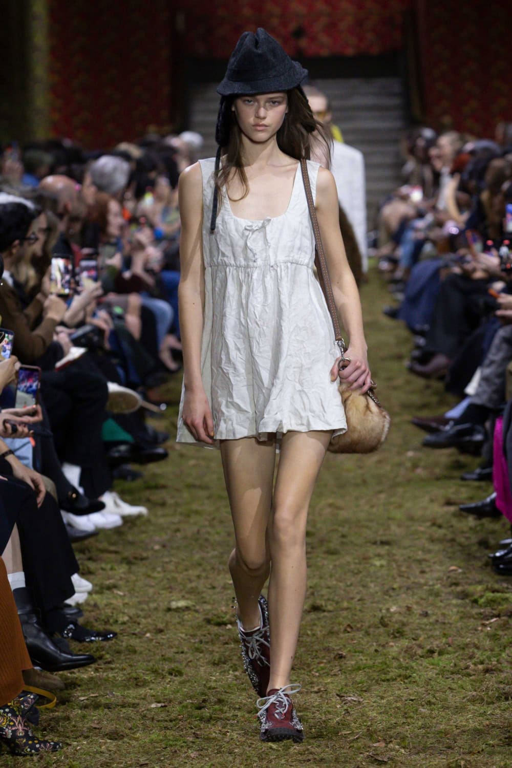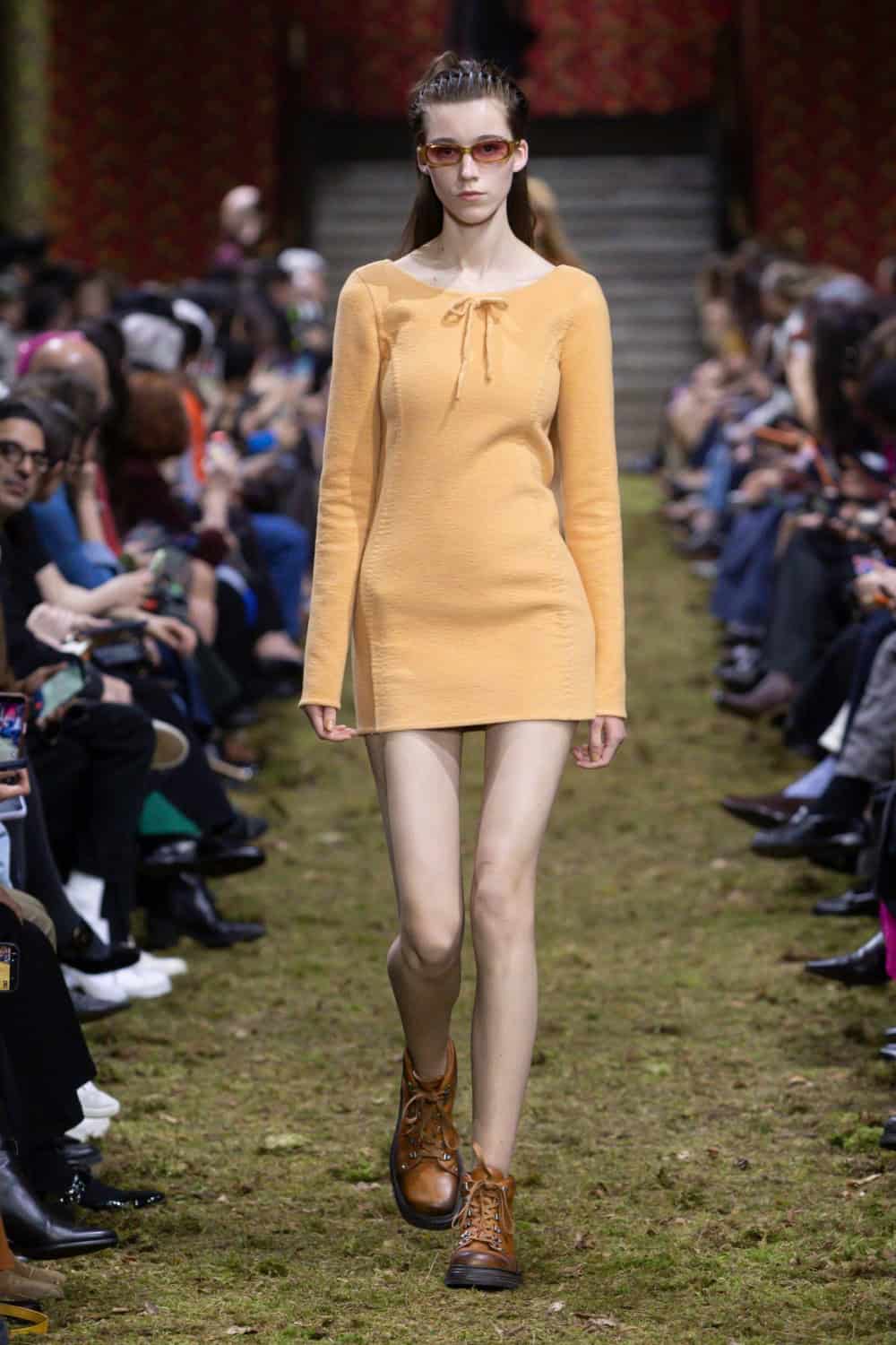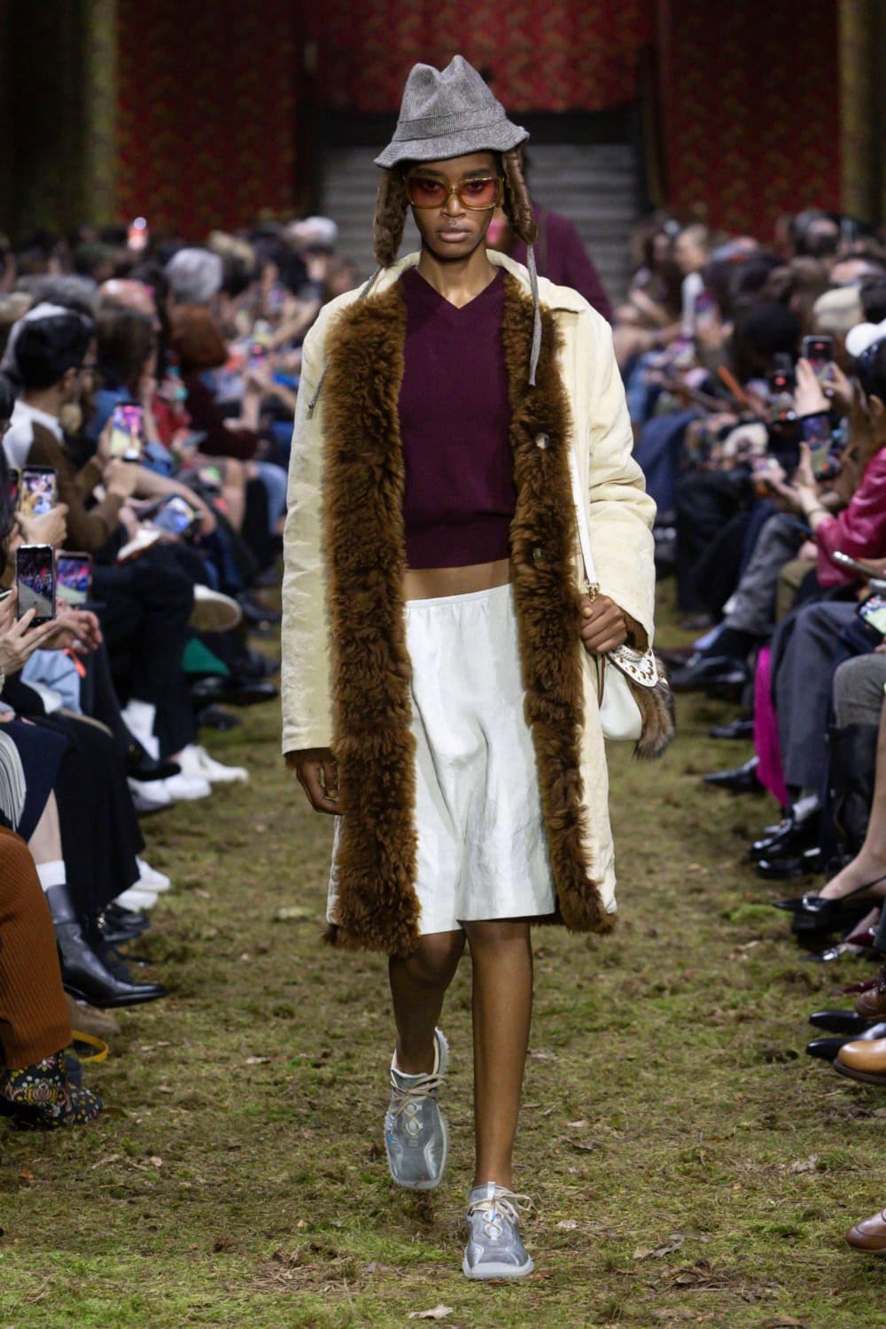 On the last day of Paris Fashion Week, Miuccia Prada brought us back down to earth. The Palais d’Iéna was filled with dirt and grass, creating what felt like a wild forest within the grand space. It was a deliberate contrast between smallness and vastness that would inform the entire Miu Miu Fall/Winter 2026 collection.