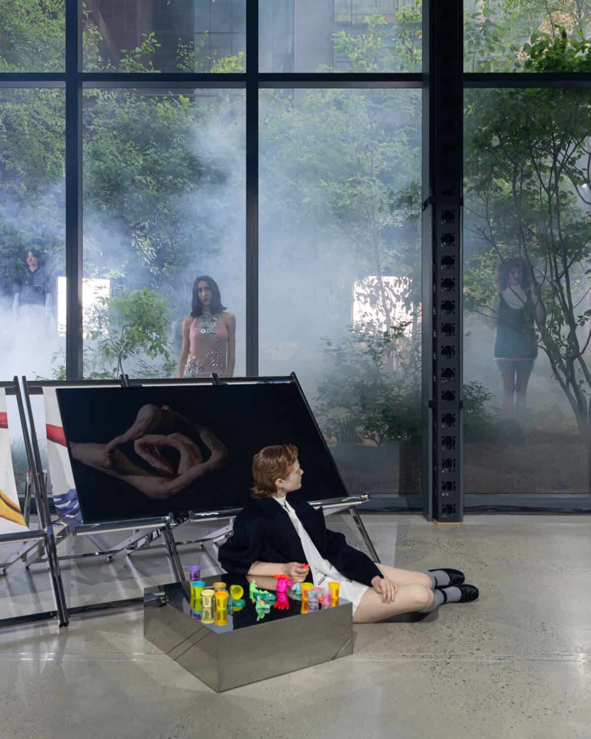 After debuting in Paris back in October 2024, Miu Miu is bringing their latest iteration of Tales & Tellers to New York City this weekend. Located at Terminal Warehouse and open to the public, the immersive experience showcases what the brand calls “artistic interventions” from their runway presentations between spring/summer 2022 and spring/summer 2025. Conceived by interdisciplinary artist Goshka Macuga and convened by Elvira Dyangani Ose, director of MACBA, Museu d’Art Contemporani de Barcelona, you’ll find a mix of video, performance, and physical installations which will include show looks. Designed to be an eerie nocturnal atmosphere, the space reimagines the city as a surreal place ripe for discussion of the messy, beautiful, and complicated ways women live their lives. The event will run through Sunday so make your reservations here.