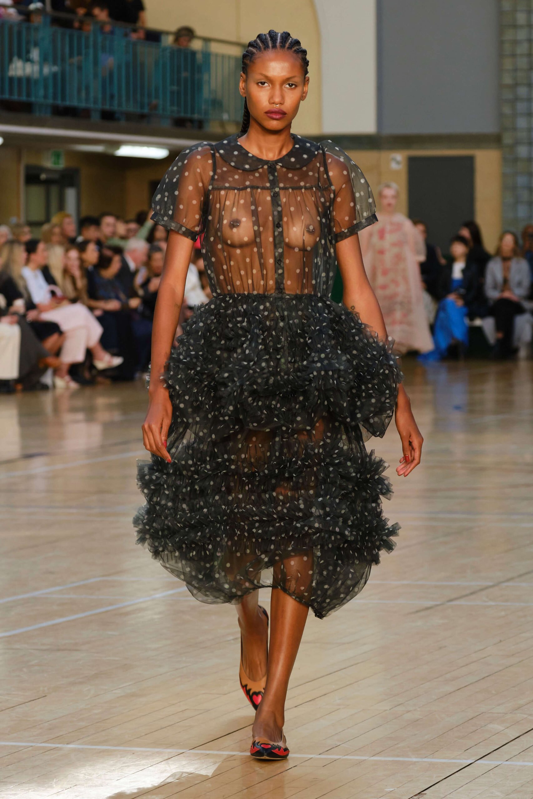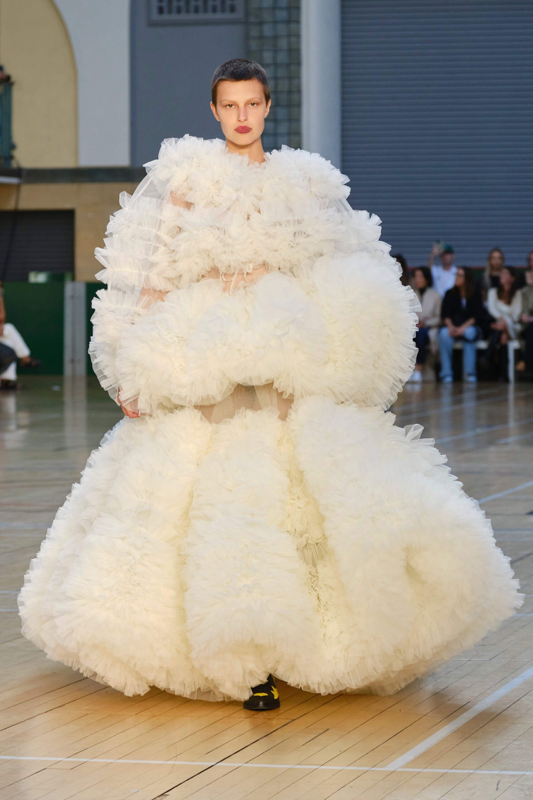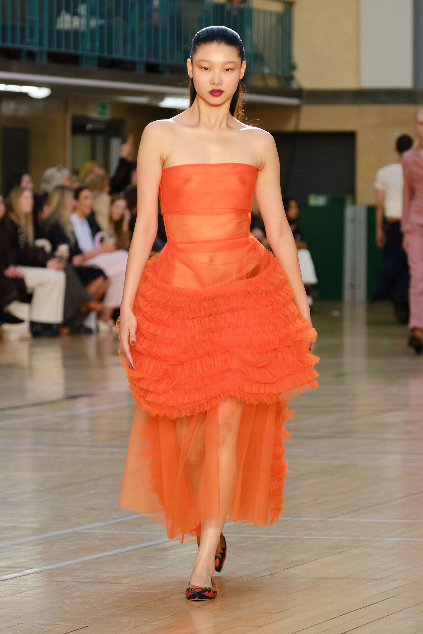 There are few joys in fashion which match the final procession of a Molly Goddard show. Her signature frocks which froth with tulle and taffeta are like the sweetest confectionaries you’d find displayed in your favourite bakery. This season’s delightful shades of raspberry, sorbet yellow, neon green and icing white only added to their desirability.
