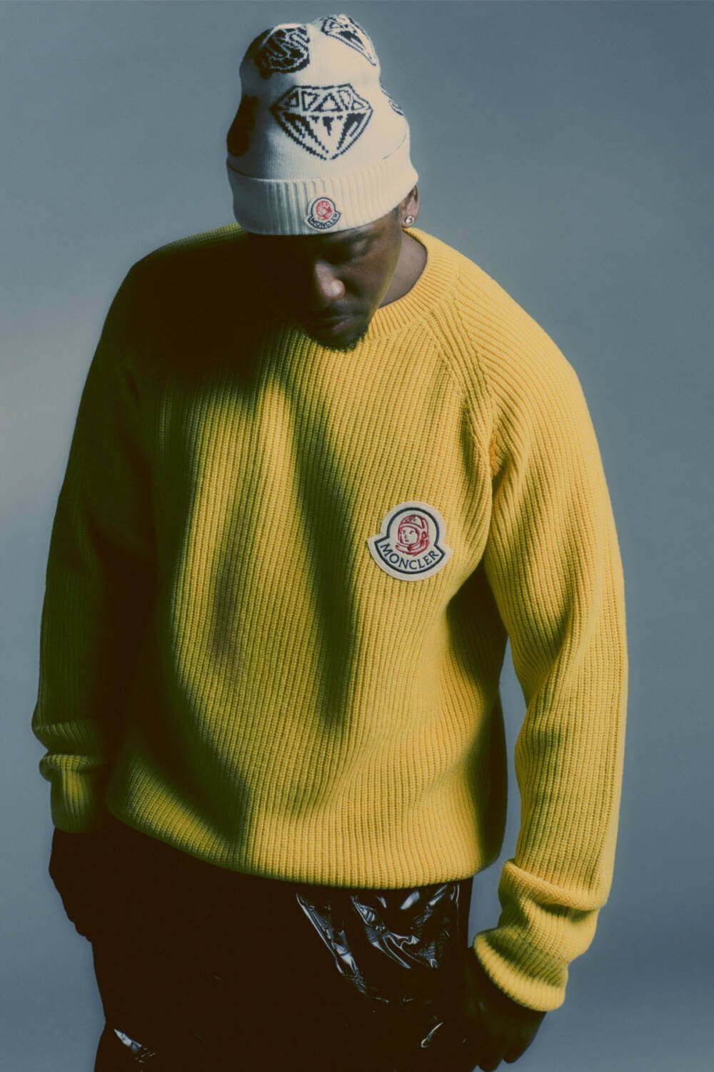 Key pieces include a down puffer embossed with BBC’s iconic diamond and dollars print as well as a wool varsity jacket with a detachable down hood. Other standouts include a crisp yellow knit sweater and classic hoodie, both featuring the revamped logo that combines BBC’s recognizable astronaut with Moncler’s lettering. For those looking for accessories, there’s a wool and cashmere printed beanie as well as BBC’s version of Moncler’s Trailgrip Après boots, made with Vibram tread and a GORE-TEX waterproof membrane, and covered in a colorful camouflage print. With prices starting at $290 and going up to $3,380, the collaboration skews more luxury, but that’s likely not going to stop fans from buying everything up.