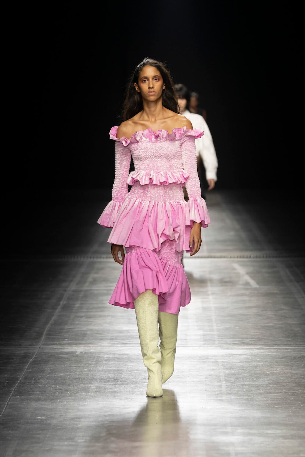 Massimo Giorgetti explored the tradition of marriage for MSGM’s SS23 edit. But he did so with an iconoclastic spirit, as if a bunch of ballerinas had crashed a polyamorous wedding and turned it into some kind of femme fatale strip club before Giorgetti arrived and stole it all away for his show. As the happily-ever-after procession began, it told the tale of this imaginary wedding.