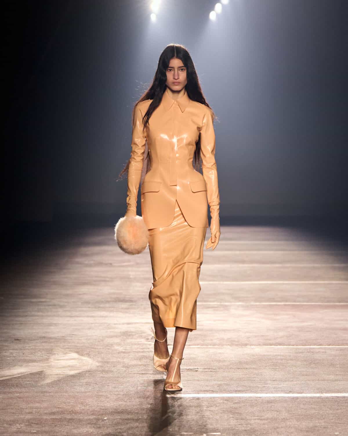 A new era for the Mugler woman is unleashed. Miguel Castro Freitas brought the fashion pack down to an underground carpark for his debut show for the house. This is his first time in the creative director seat after previously leading teams at Dior, Dries Van Noten and, most recently, Sportmax. There is so much so much you can mine from the world of Manfred Thierry himself, whose sex-driven couture was bombastic and untouchably fierce. Fusing fetish with fantasy, his signature-brand of power dressing often saw his models stalk the catwalk as aliens, robots and motorcycles.