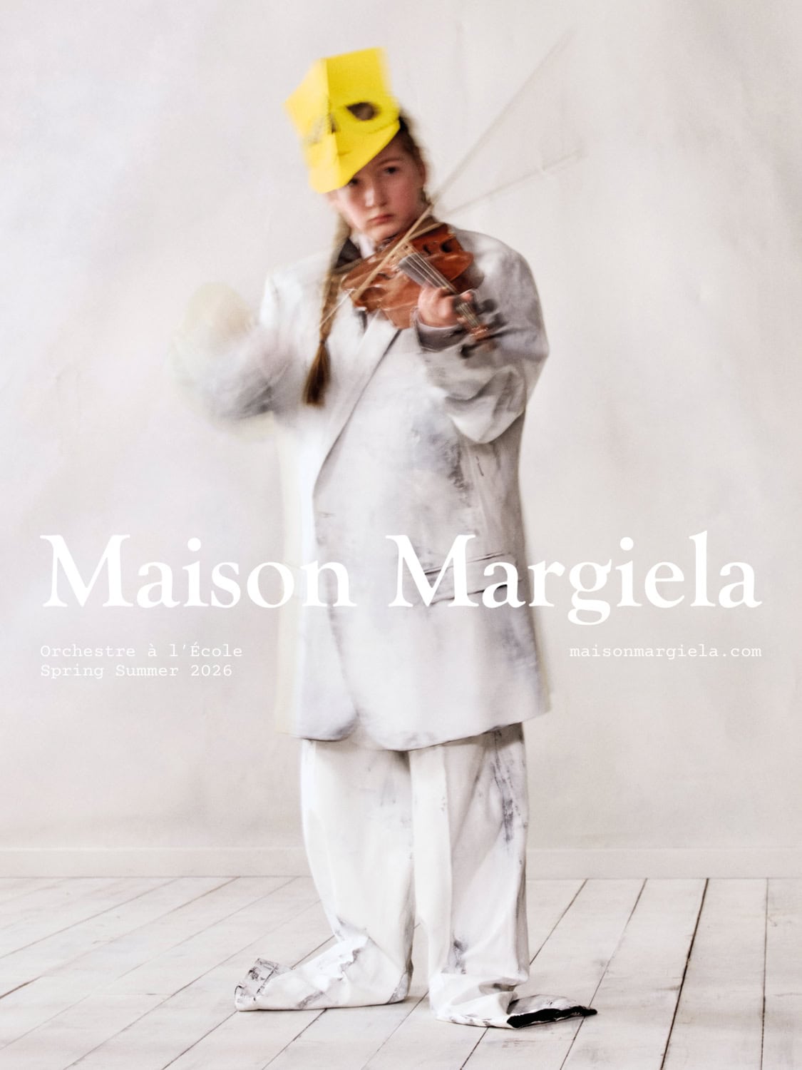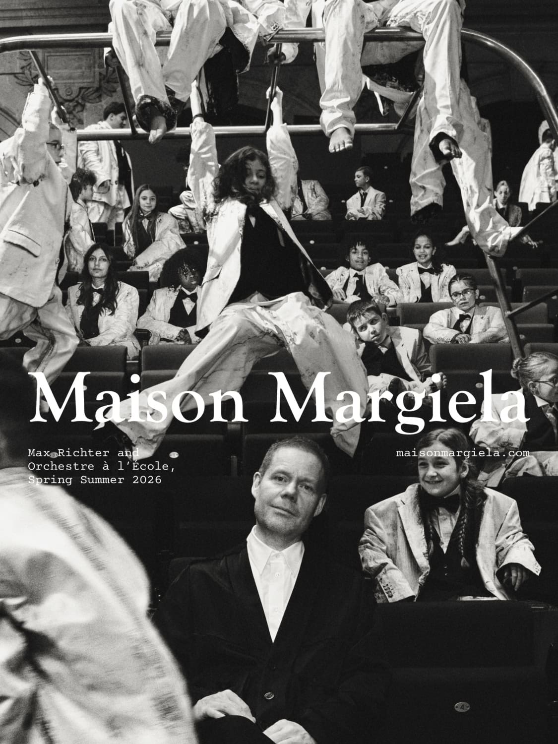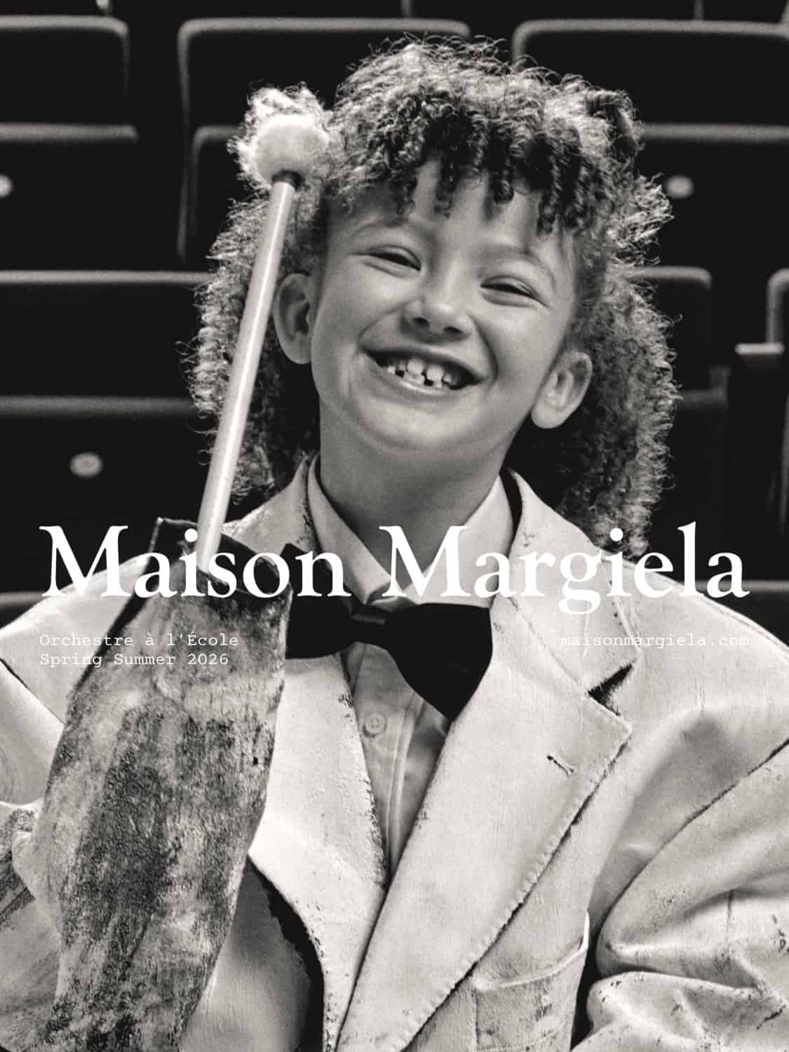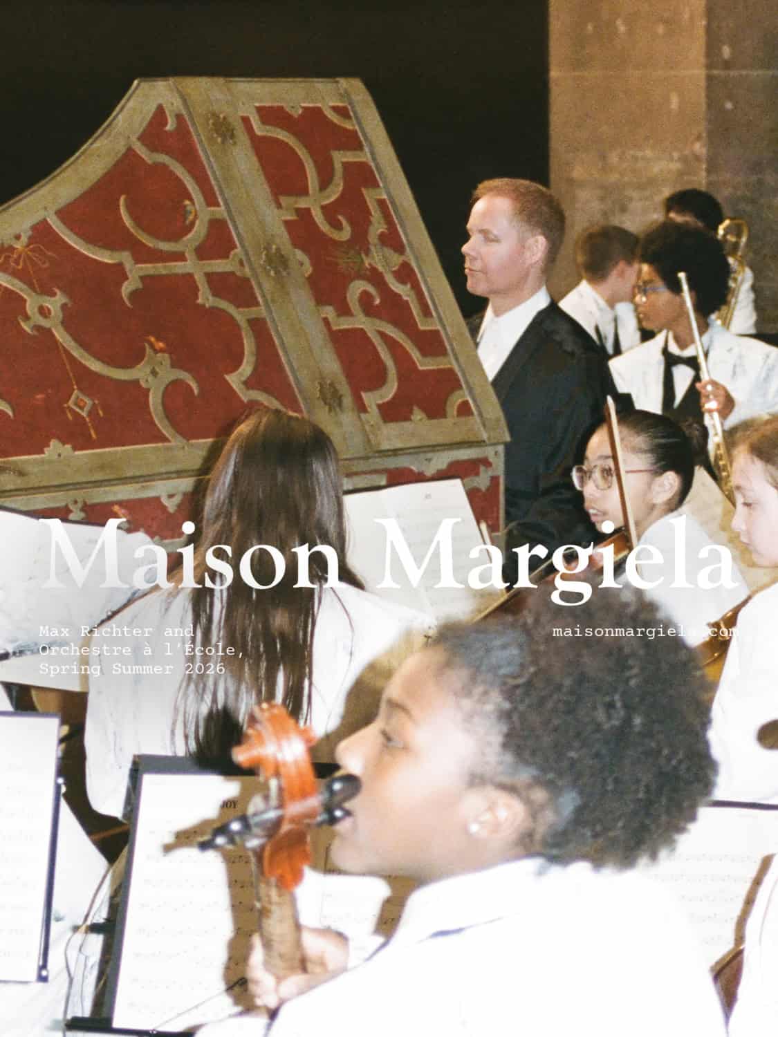 Last September Maison Margiela treated guests to their spring 2026 with a charming youth orchestra and that same feeling is back with the launch of the accompanying campaign film. “Joy” stars composer and pianist Max Richter alongside an orchestra of 43 young musicians from Association Orchestre à l’École. Premiering on March 11th to coincide with the collection’s arrival in stores and online, the film features Richter performing an original score on the harpsichord, surrounded by the young ensemble. Shot at the Théâtre de la Villette in Paris, the campaign transforms a concert hall, reflecting the collection’s “night at the opera” theme. The film also spotlights standout accessories from the runway, including the reintroduced heel-less shoe and the debut of the structured Box Bag.