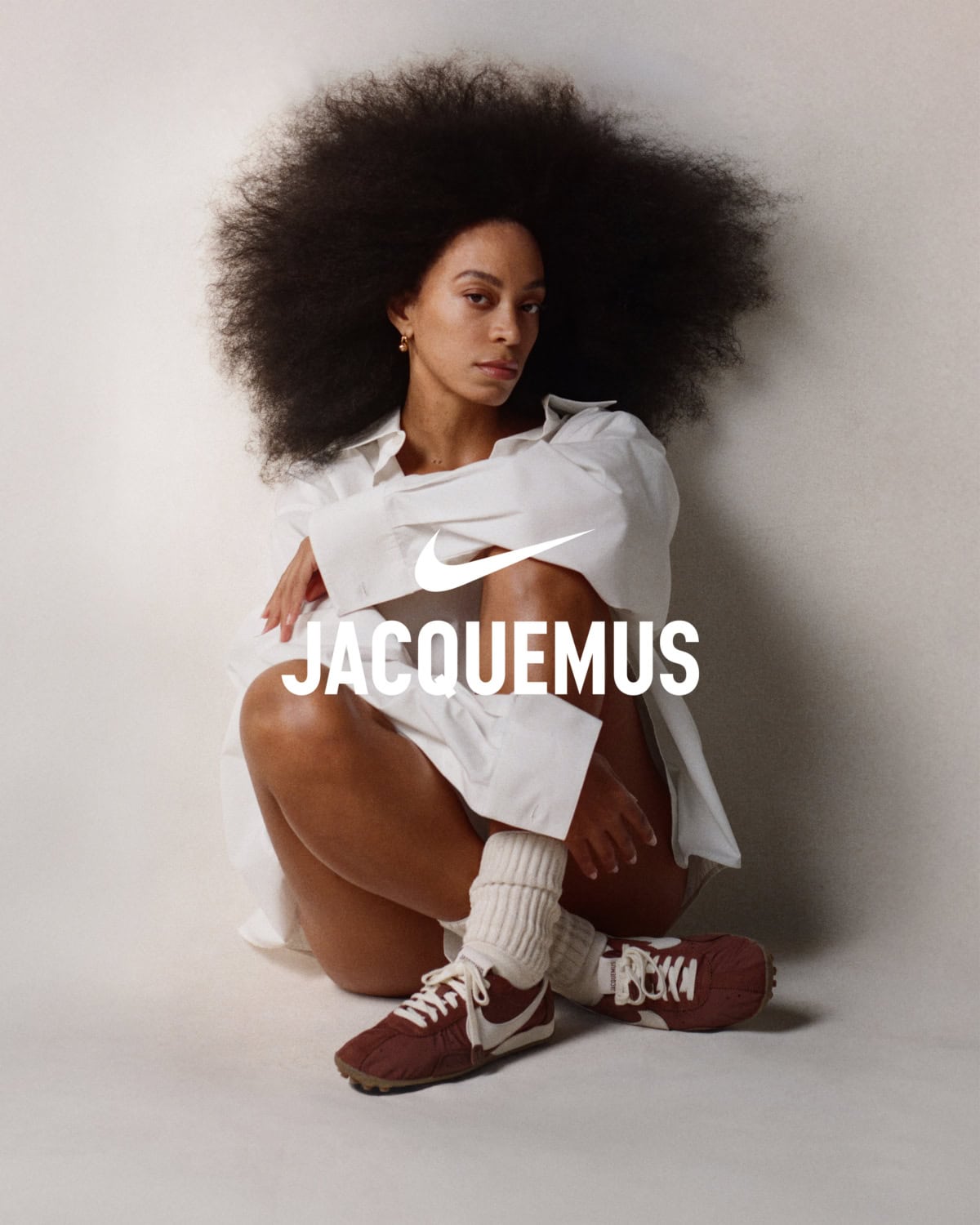 Nike and Jacquemus are continuing their partnership with the next rendition of the iconic Moon Shoe, in three new colorways. The updated silhouette features a ruched nylon upper, Nike Grind outsole, and a ballet-inspired finish in brown, sail and pale pink. Discovered by designer Simon Porte Jacquemus during a visit to the Nike archives, the style has been reimagined as a contemporary classic, with pale pink chosen for its softness. To accompany comes a campaign starring Solange Knowles, with the new styles available from March 9th on jacquemus.com and later in select Nike stores.