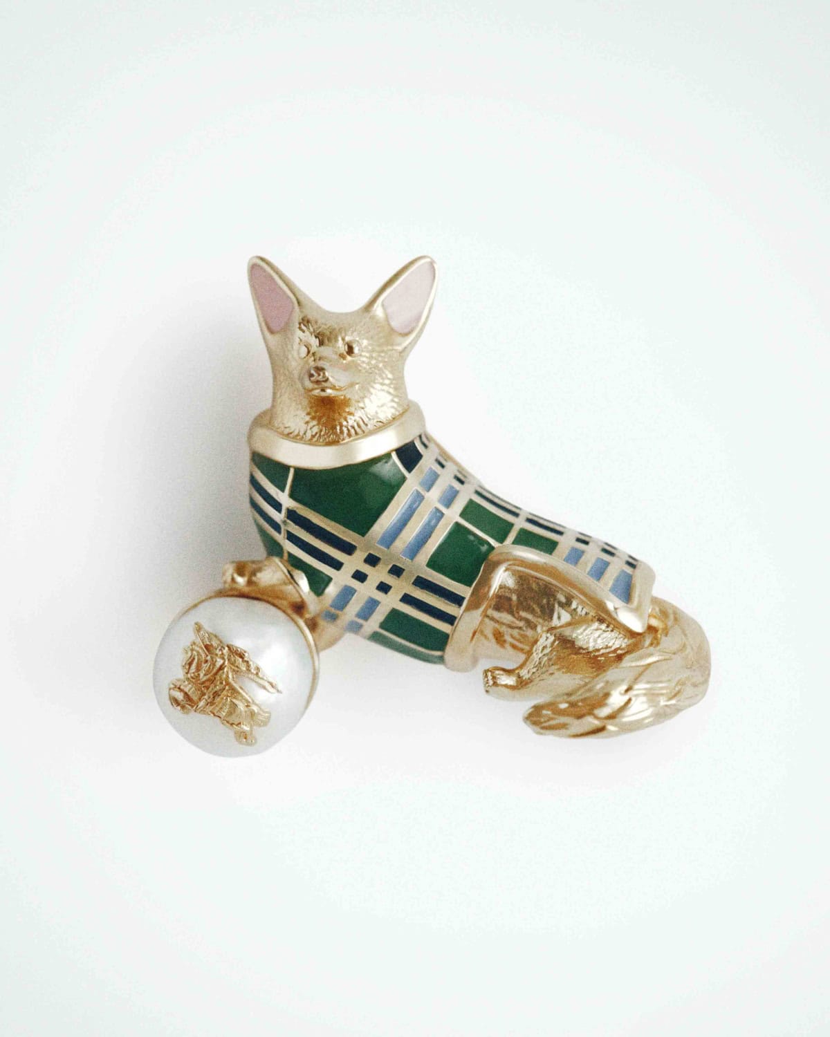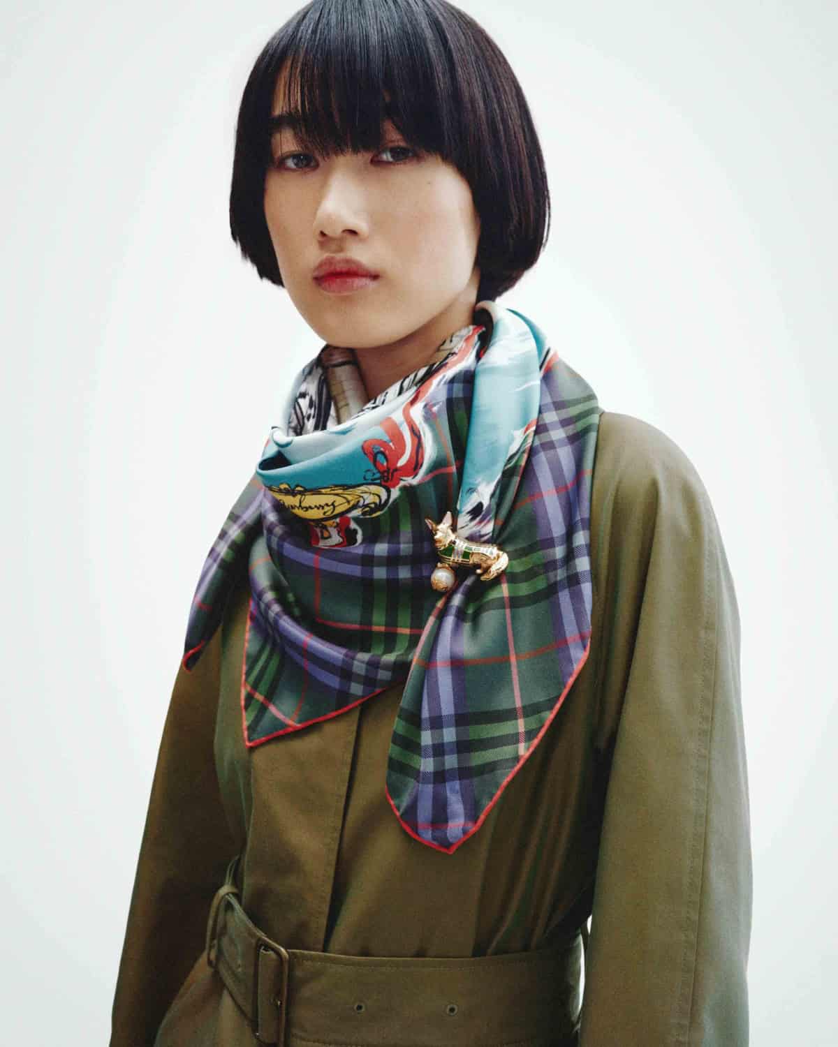 Burberry along with the Royal Collection Trust is back with another capsule collection, this time to celebrate the centenary of Queen Elizabeth II’s birth. Drawing inspiration from the late Queen’s wardrobe, you’ll find thoughtfully designed pieces like a belted car coat, crafted from lightweight cotton gabardine in holly green and lined with a new Burberry House Check colorway, as inspired by a tartan she wore. The check motif also appears on a Scottish-woven cashmere scarf and a silk scarf with a hand-painted depiction of Balmoral Castle. And of course, her beloved dogs also make an appearance, in the form of a gold-plated corgi brooch, enamelled in Burberry’s check and finished with their Knight motif on a freshwater pearl.