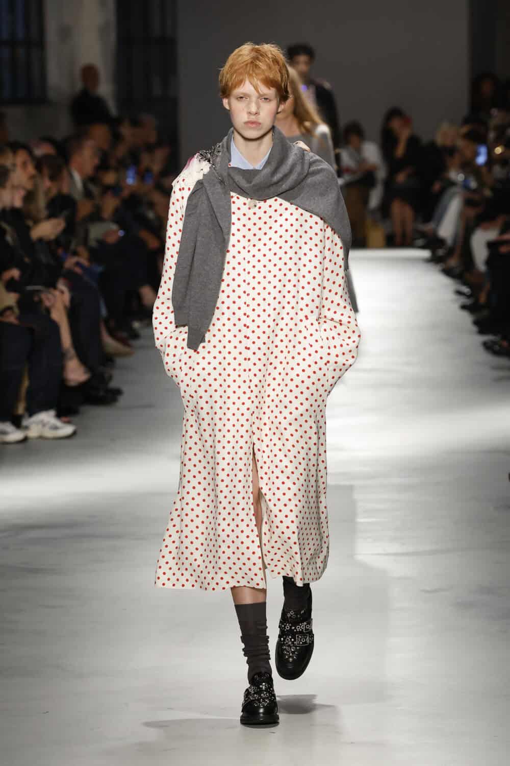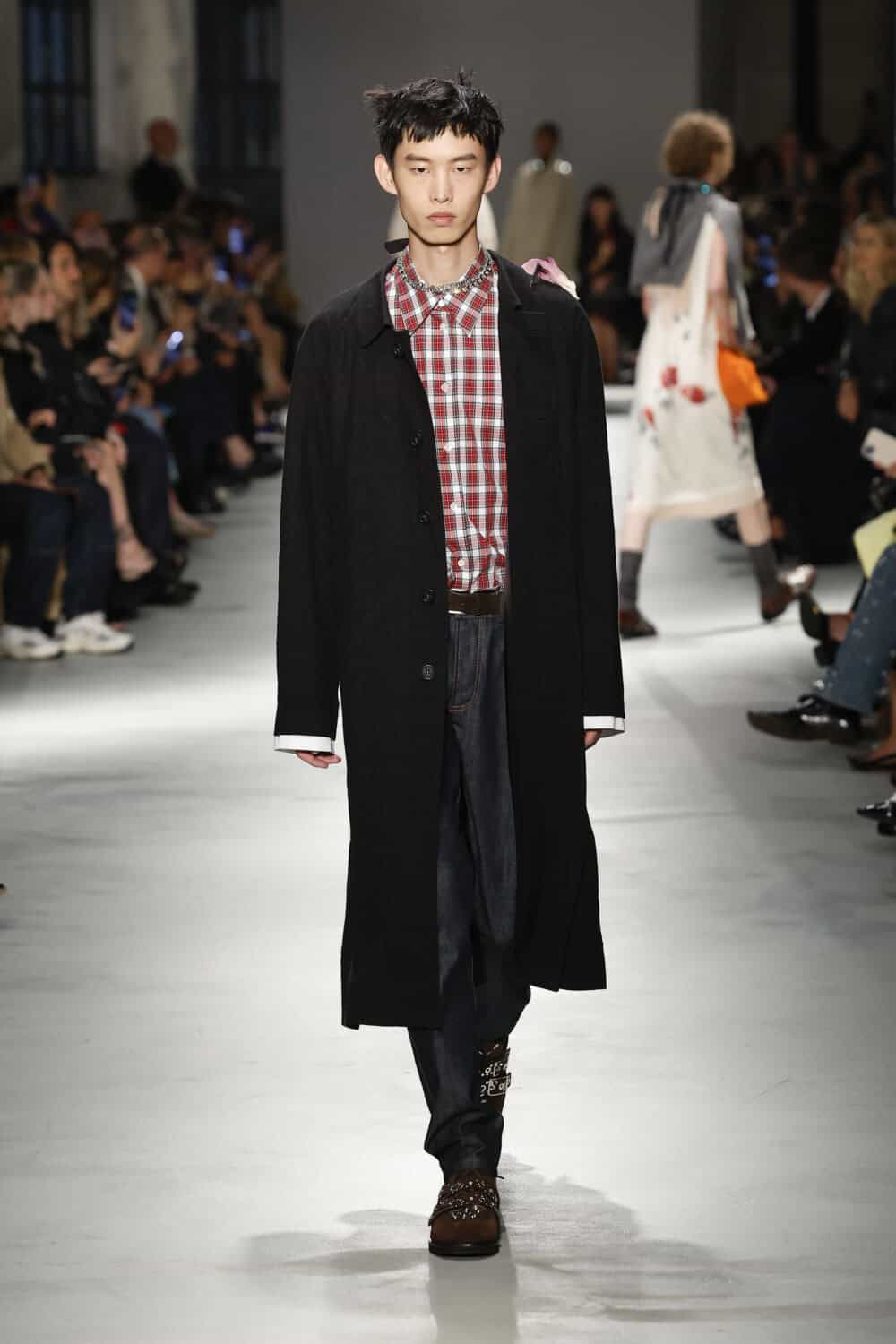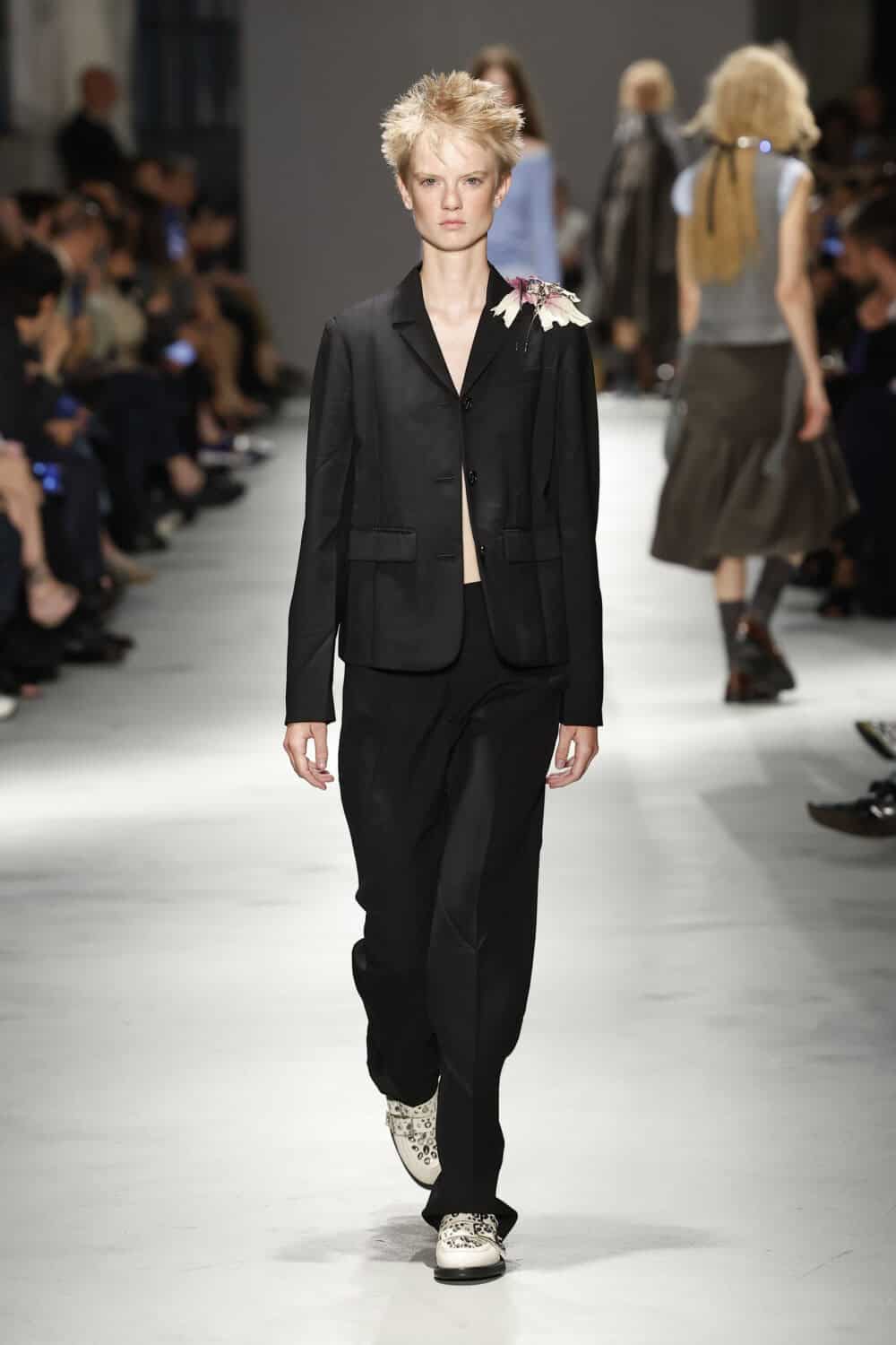 Since founding the brand in 2010, Dell’Acqua has frequently designed collections that combine conflicting shapes and silhouettes, creating an elegant and contemporary blend of feminine and masculine energies. This season, Dell’Acqua peppered parts of his menswear collection throughout, merging his collections in a vibrant display of patterns and textures.
