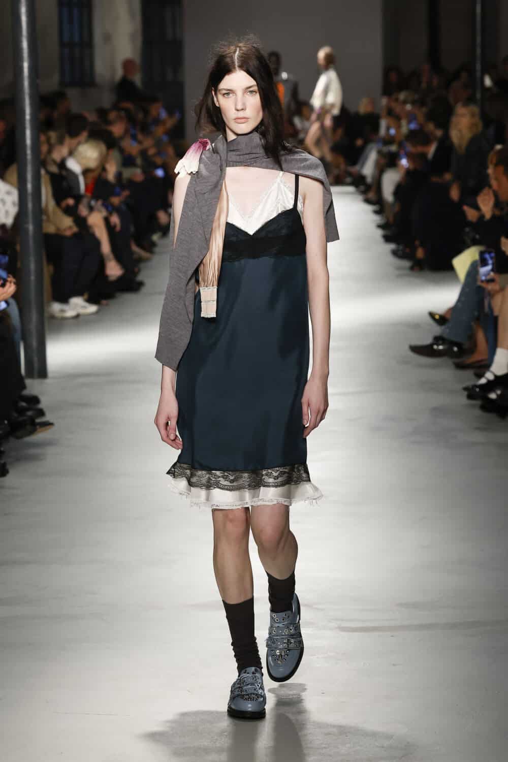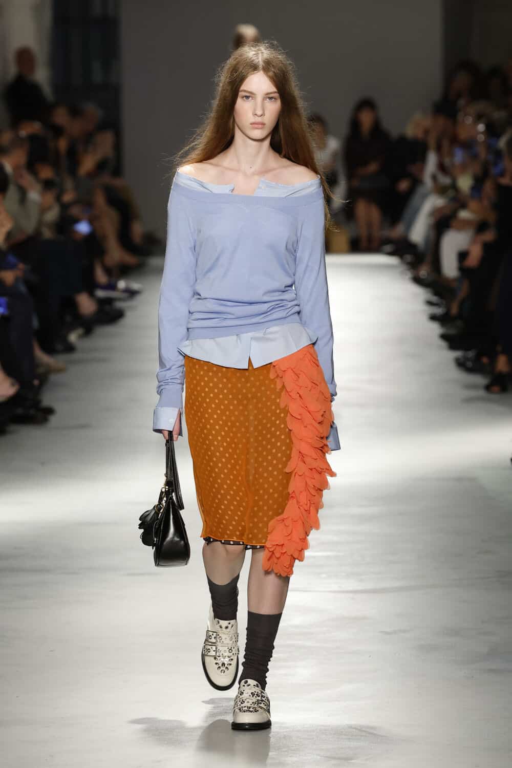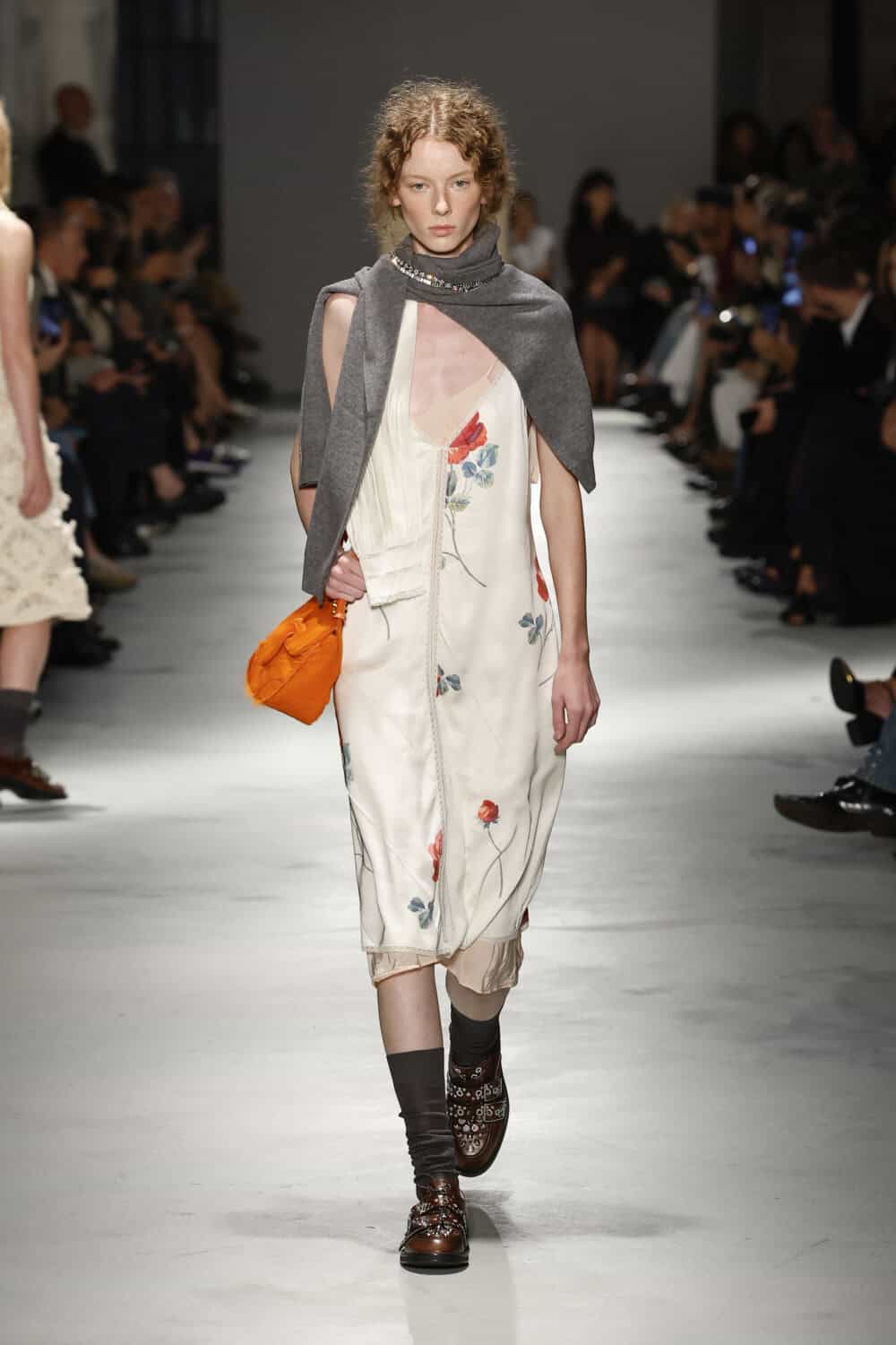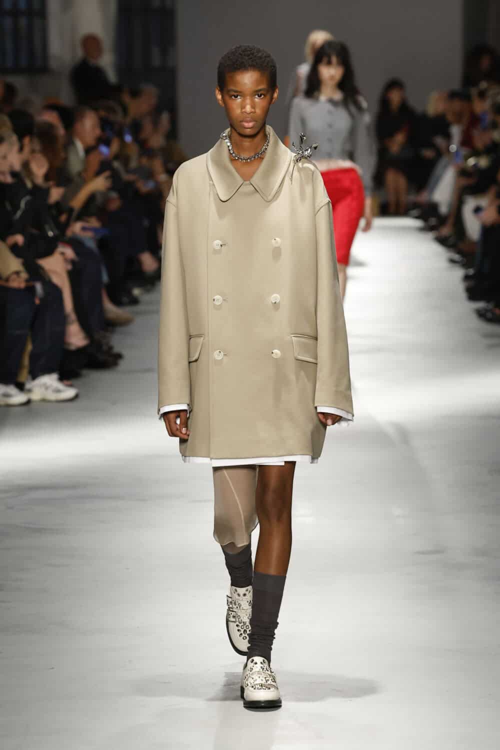 Since founding the brand in 2010, Dell’Acqua has frequently designed collections that combine conflicting shapes and silhouettes, creating an elegant and contemporary blend of feminine and masculine energies. This season, Dell’Acqua peppered parts of his menswear collection throughout, merging his collections in a vibrant display of patterns and textures.