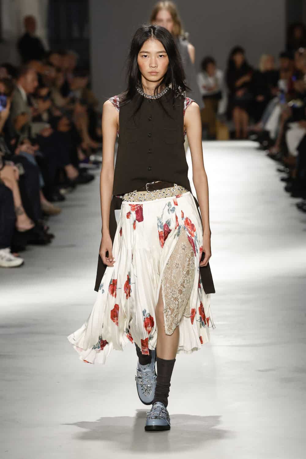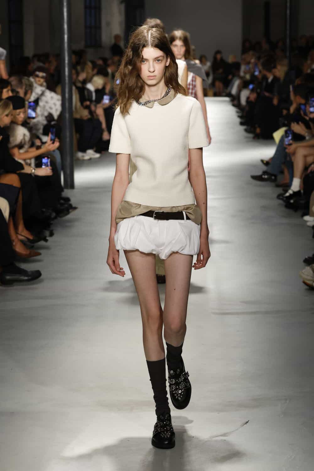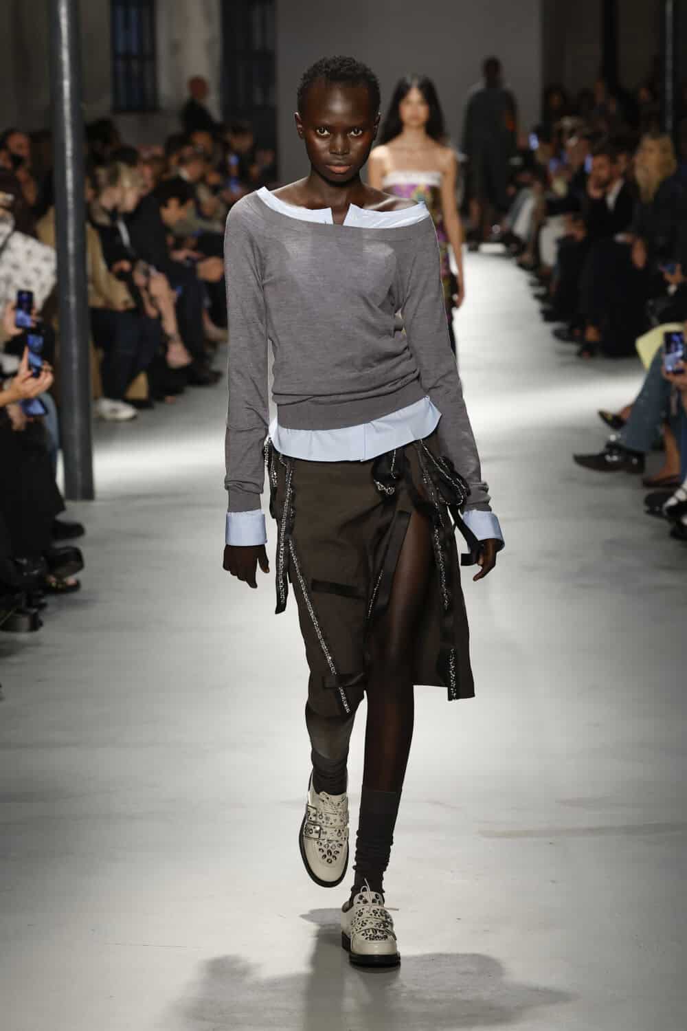 In a warehouse-like building in Milan, No. 21’s SS26 collection, titled Layering All About Lightness, burst onto the scene soundtracked by a remix of Charli xcx’s Everything is Romantic. Models zigzagged through the guests, the low-lighting capturing the varying textures and colours. A melange of genres and references, creative director Alessandro Dell’Acqua brought the collection together through one common theme: effortless and unconventional layering.