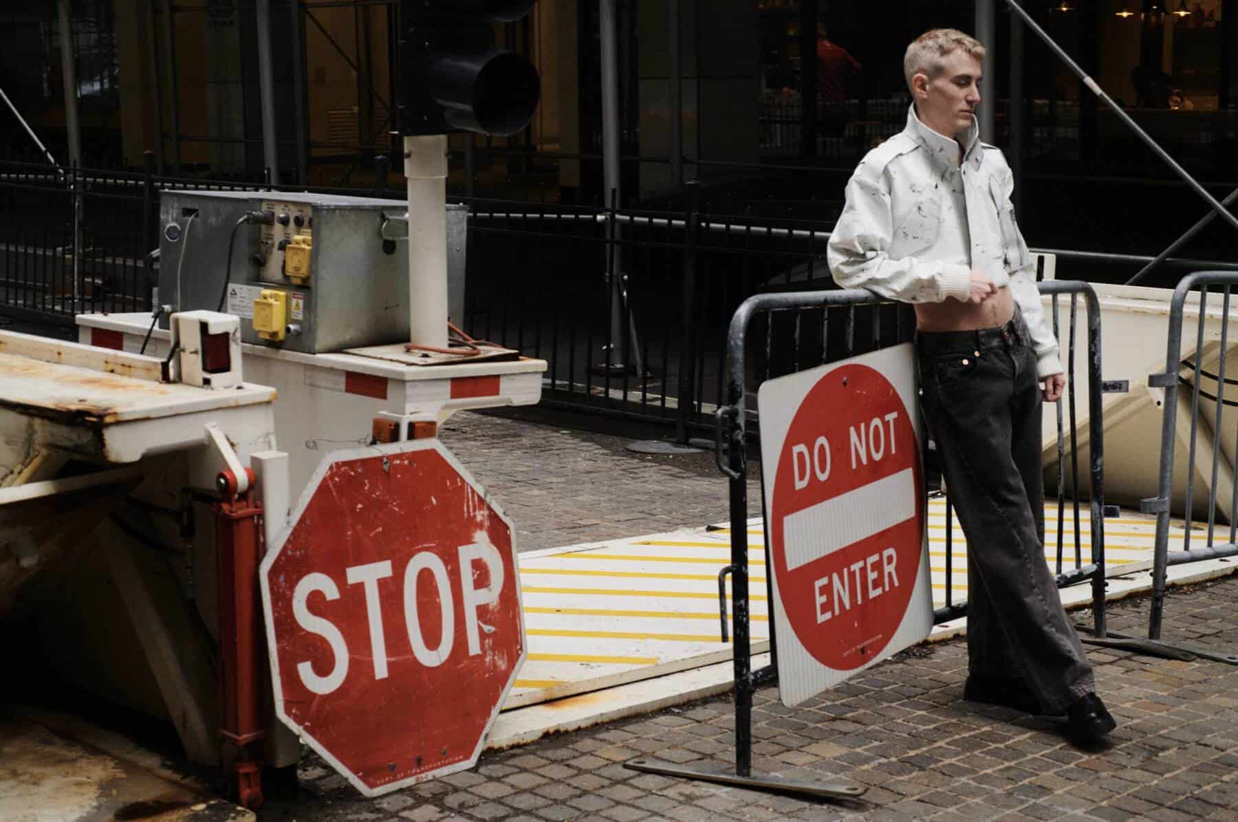 Patric wears jacket and pants by VAQUERA, shoes by CELINE BY HEDI SLIMANE