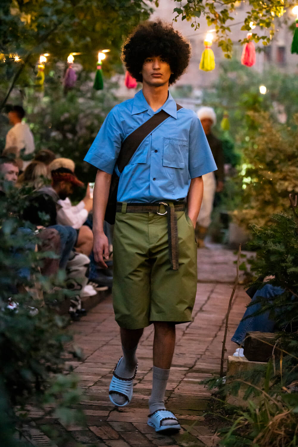 Farzaneh signatures were on top form – exquisitely cut cargo trousers, diamond-shaped nylon shirting, sleeveless gilets – many worn beneath netted overlays. Bubble skirts and form-fitting frocks, also in techy fabrics, saw the designer expand on her womenswear, which has grown to become a central part to her business through the pandemic.