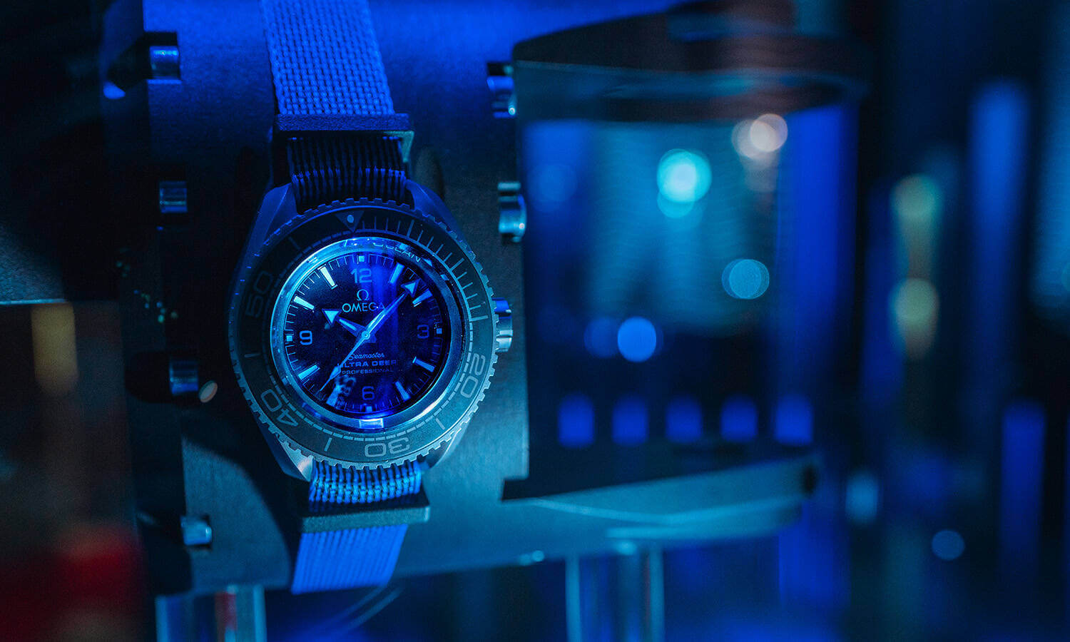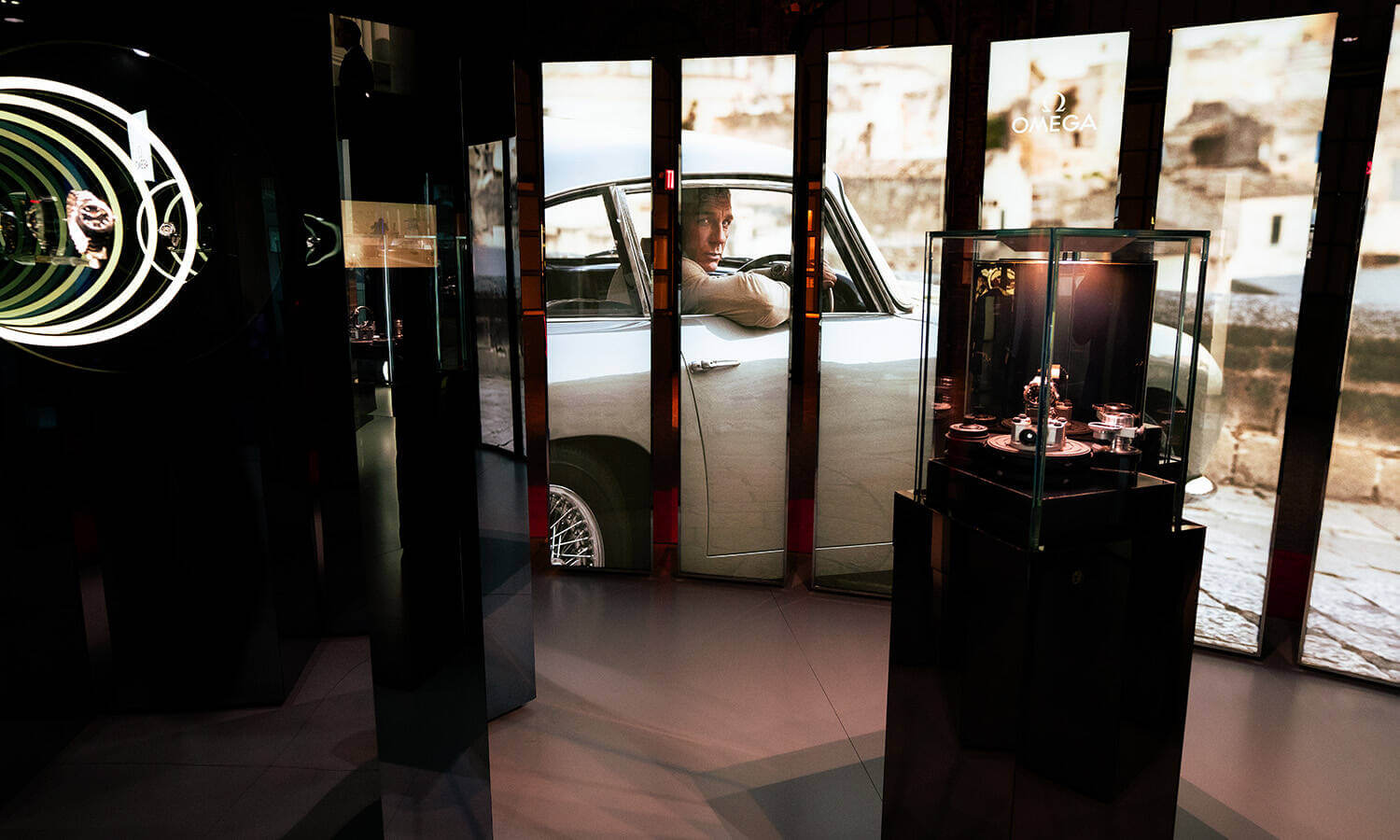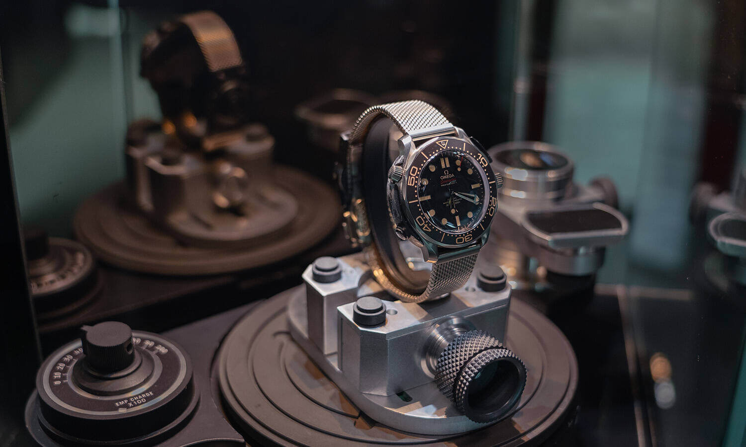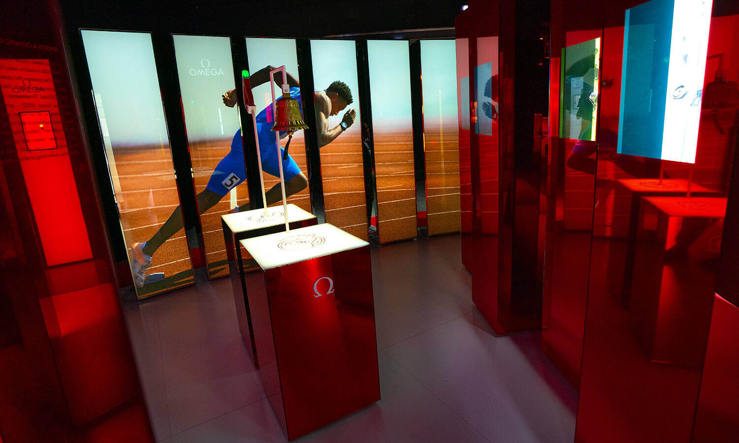 From there you can explore six sections devoted to the different areas in which Omega has a presence. Olympic fans will be happy to note that you can ring a bell from the Tokyo games as well as press the trigger to a speed gun, used to time races. On view as well is a split-second chronograph, used during the 1932 Olympics. The Ocean section highlights dive watches, including the recent Seamaster Ultra Deep, a design that is water-resistant up to 20,000 feet. A third is devoted to James Bond, as the spy has worn an Omega in every film since 1995, with the standout being the Seamaster Diver 300M 007. The timepiece is an actual film prop from Daniel Craig’s final appearance in No Time to Die.