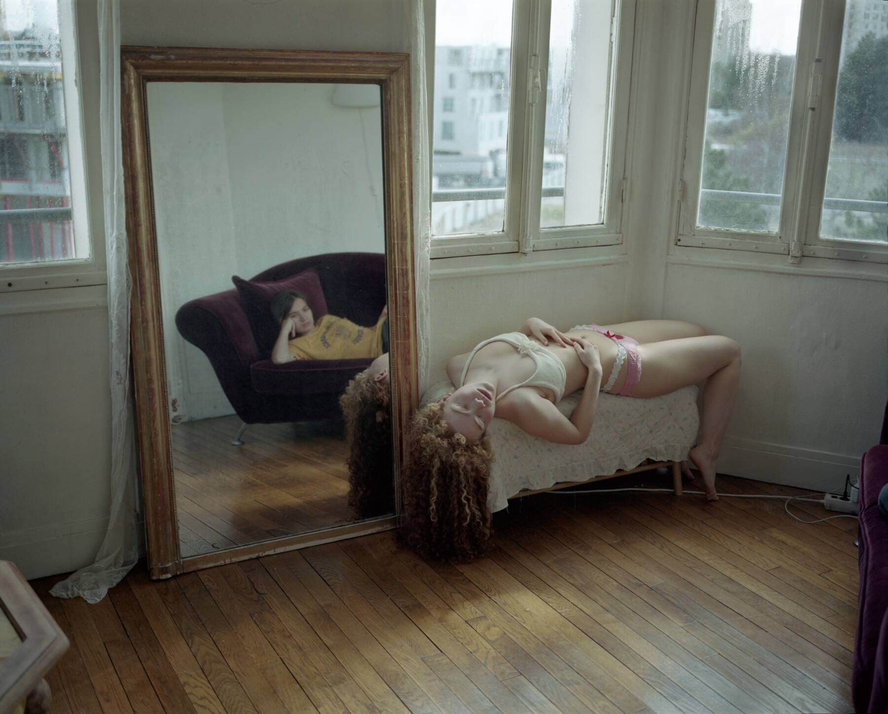 How that translates is quiet, engaging photos that came about after she moved to Paris. Bredahl creates images of her “self-chosen family” by capturing them in their most vulnerable, yet relaxed moments. Whether doing personal yet mundane things like opening their medicine cabinets to texting on their beds, through her lens we’re able to see a glimpse into these characters’ personal lives.