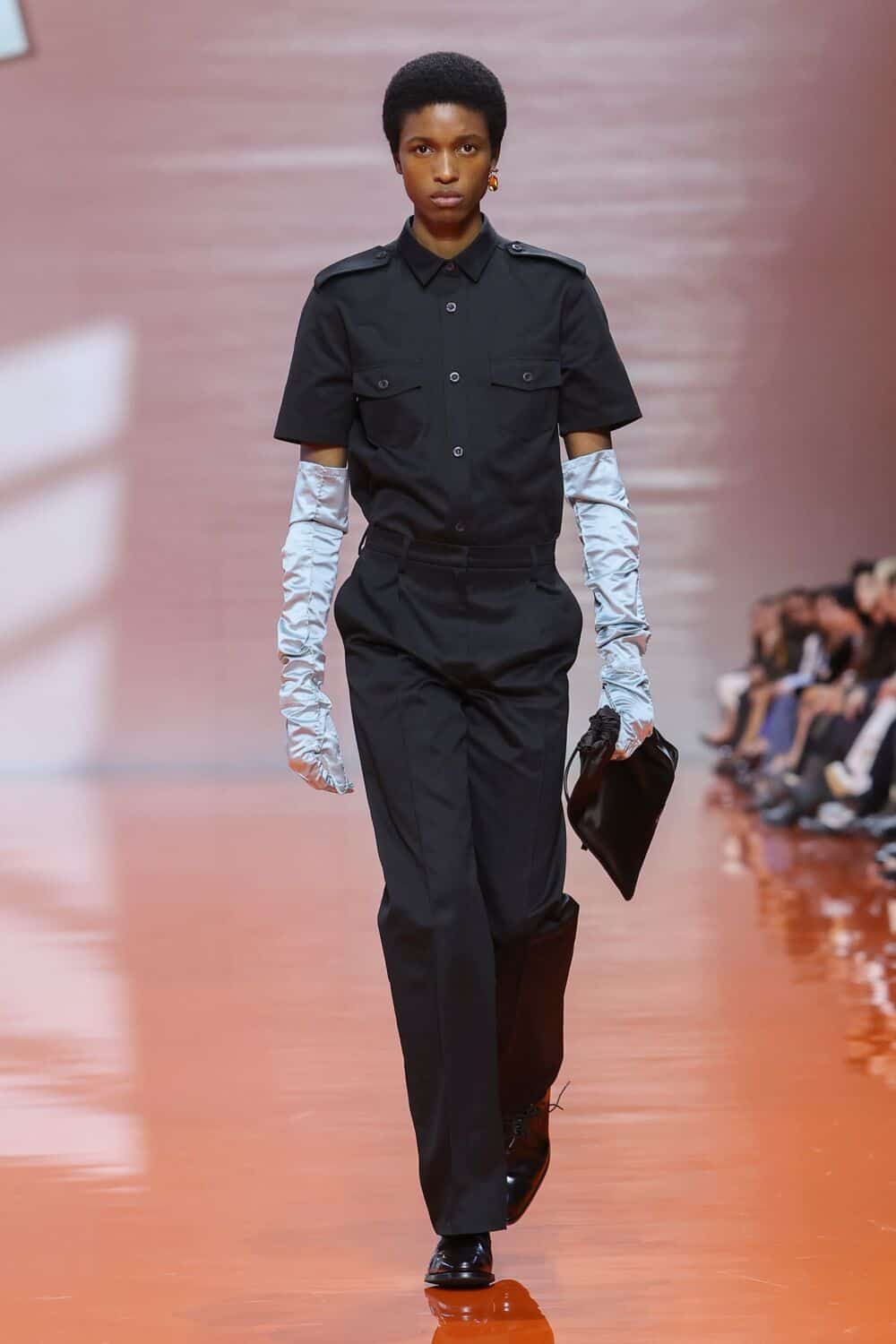 What does dressing for a world of infinite choice look like? In their hands, it begins and ends simply with a uniform. Both the opening and closing looks were utilitarian shirts and matching trousers that at first glance seemed to be jumpsuits. It’s the type of clothing one would throw on without a thought, knowing full well that it was perfect for whatever the day brings, especially when accessorized with dangly earrings or fantastic opera length satin gloves. But of course, with Prada it’s never simply about a practical uniform. As the looks unfolded, the collection grew more eccentric and colorful. If we’re paralyzed by decision fatigue, then thank god we have Mrs. Prada and Simons to help make the choice for us.